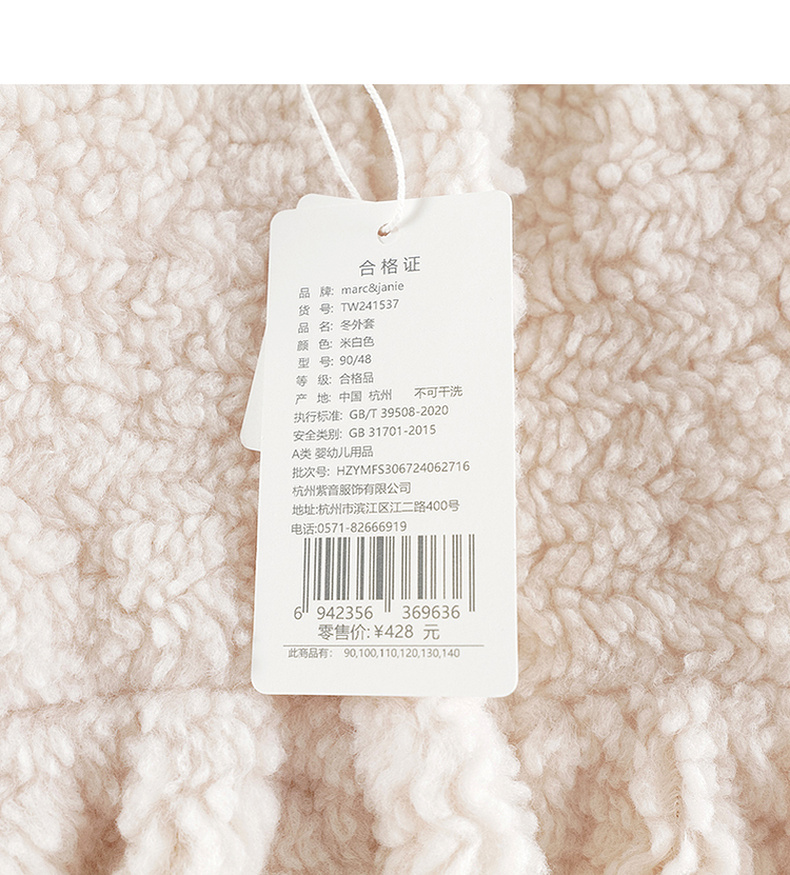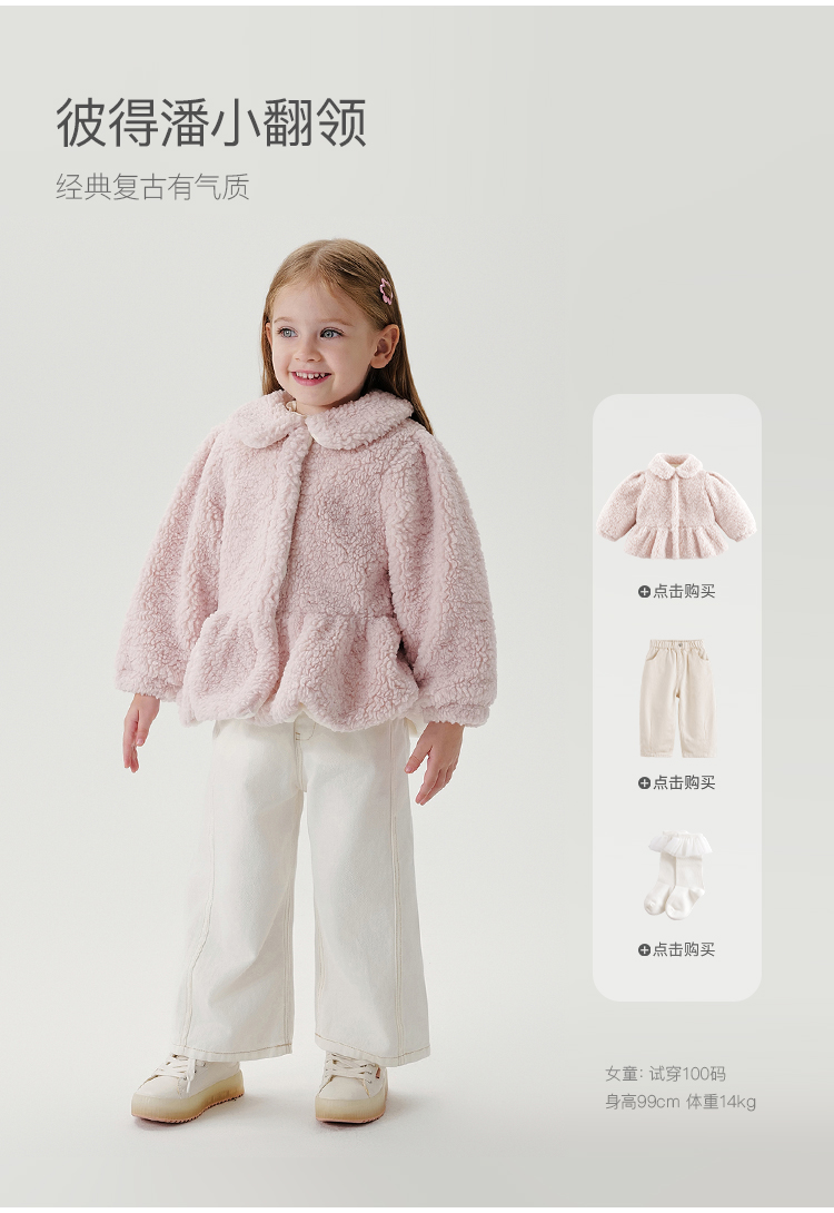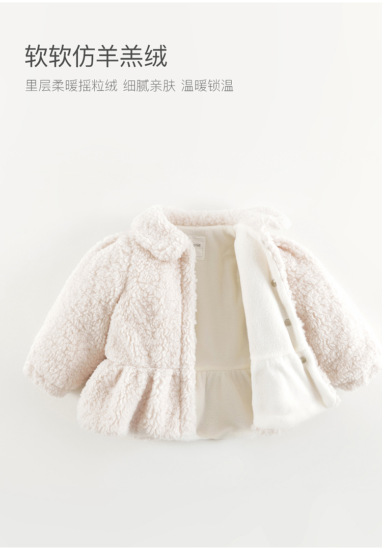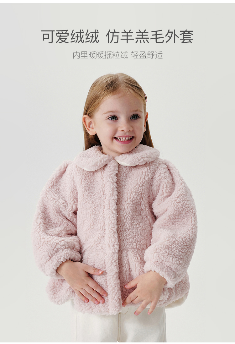 马克珍妮女童仿羊羔毛厚外套儿童保暖棉衣2024年冬装新款241537