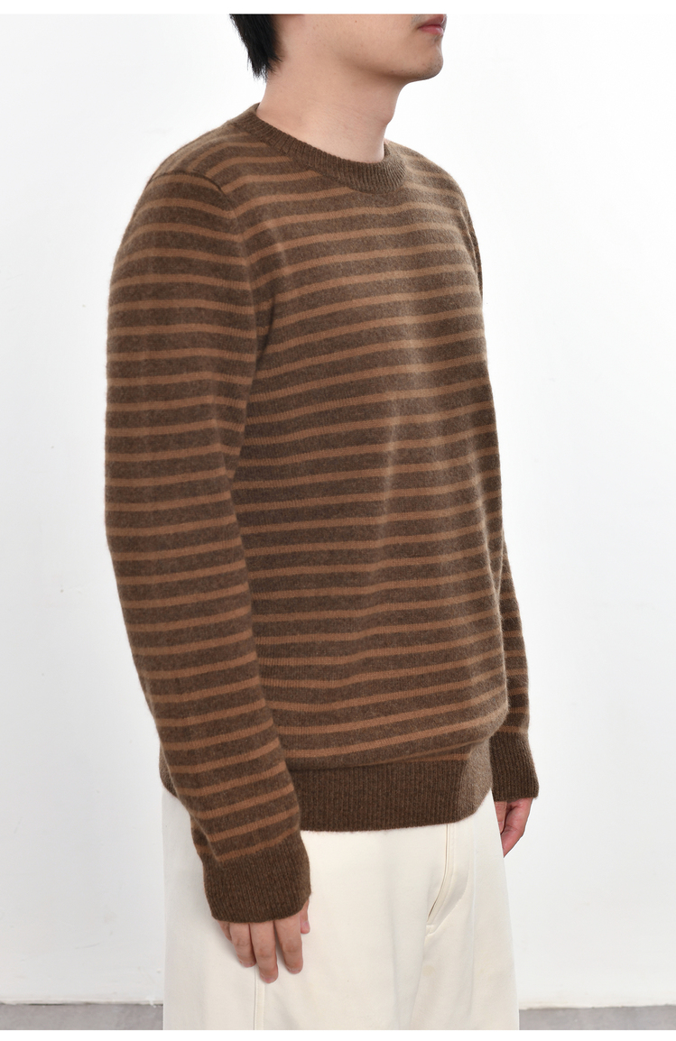 男士2021年新款纯山羊绒圆领加厚条纹套头衫