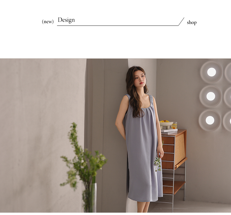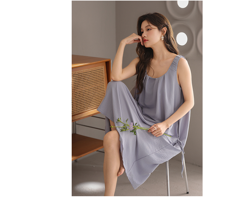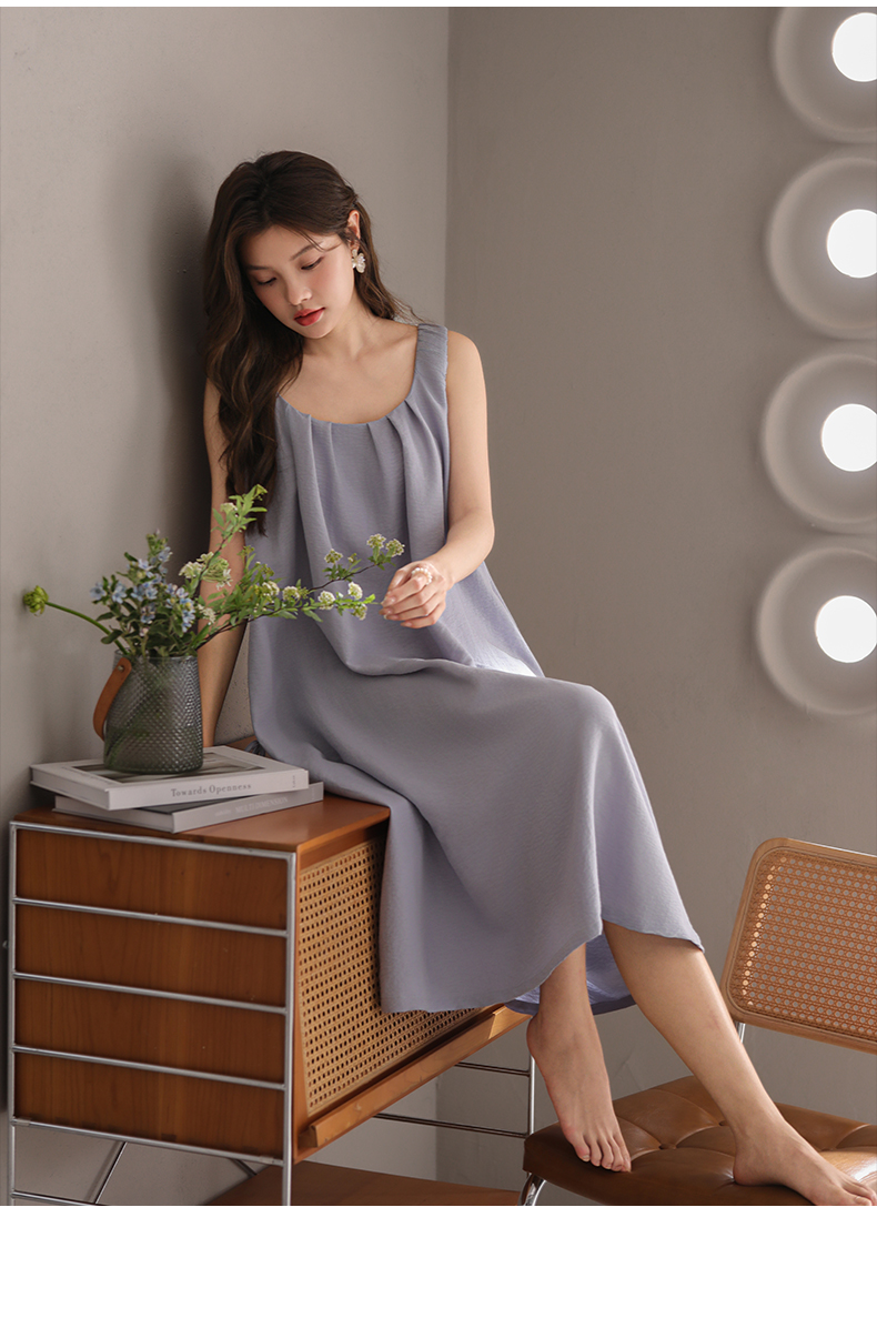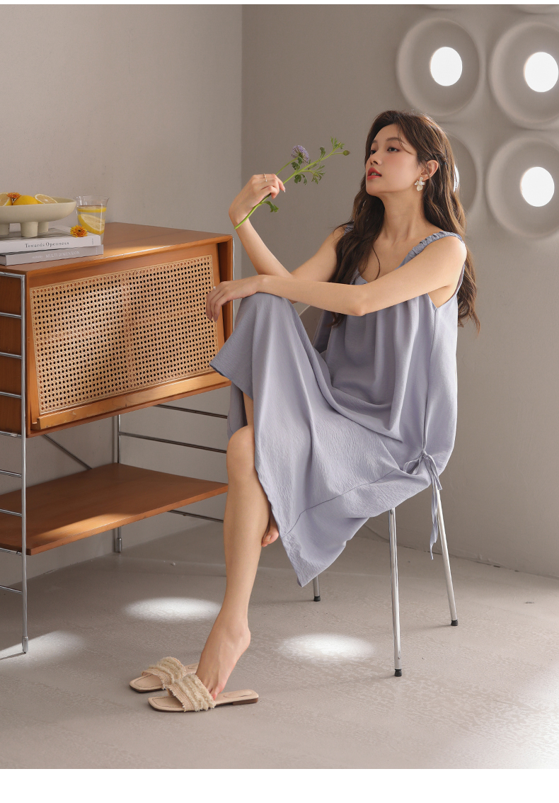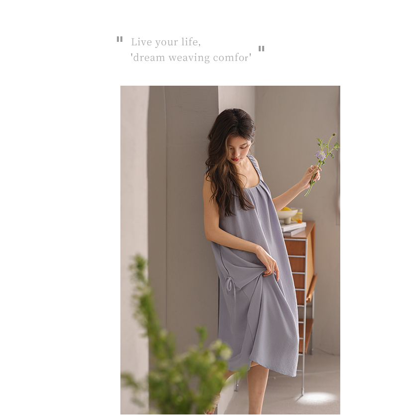 可人儿小众设计师新款泡泡绵女士睡衣夏季少女睡裙可外穿家居服