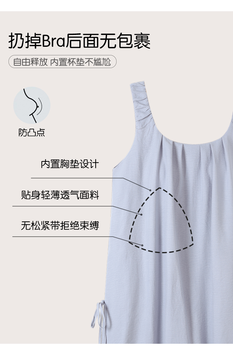 可人儿带bra小众设计泡泡绵女士睡衣夏季少女睡裙可外穿家居服