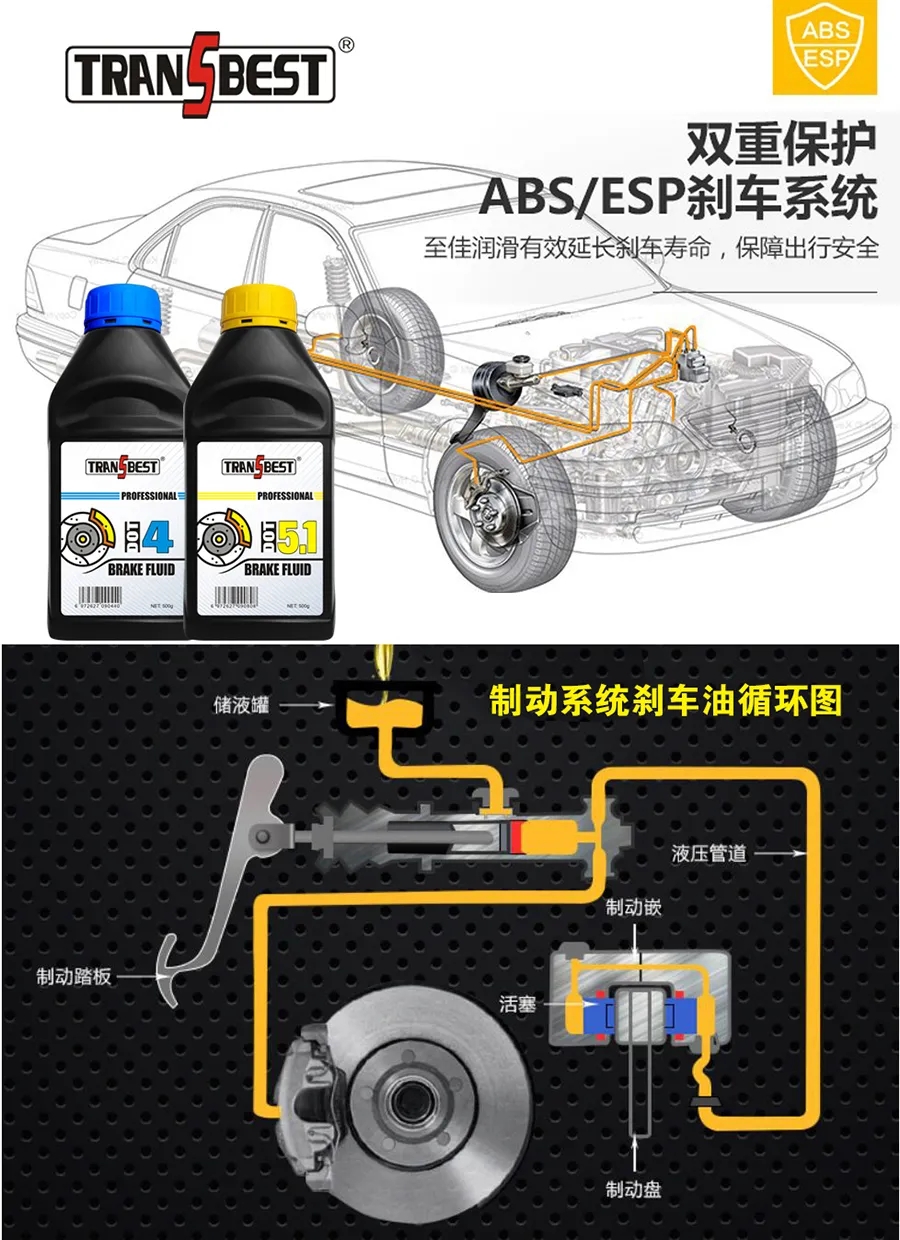 刹车油制动液DOT5.1\DOT4+竞技高性能制动液刹车油离合器油500g/瓶