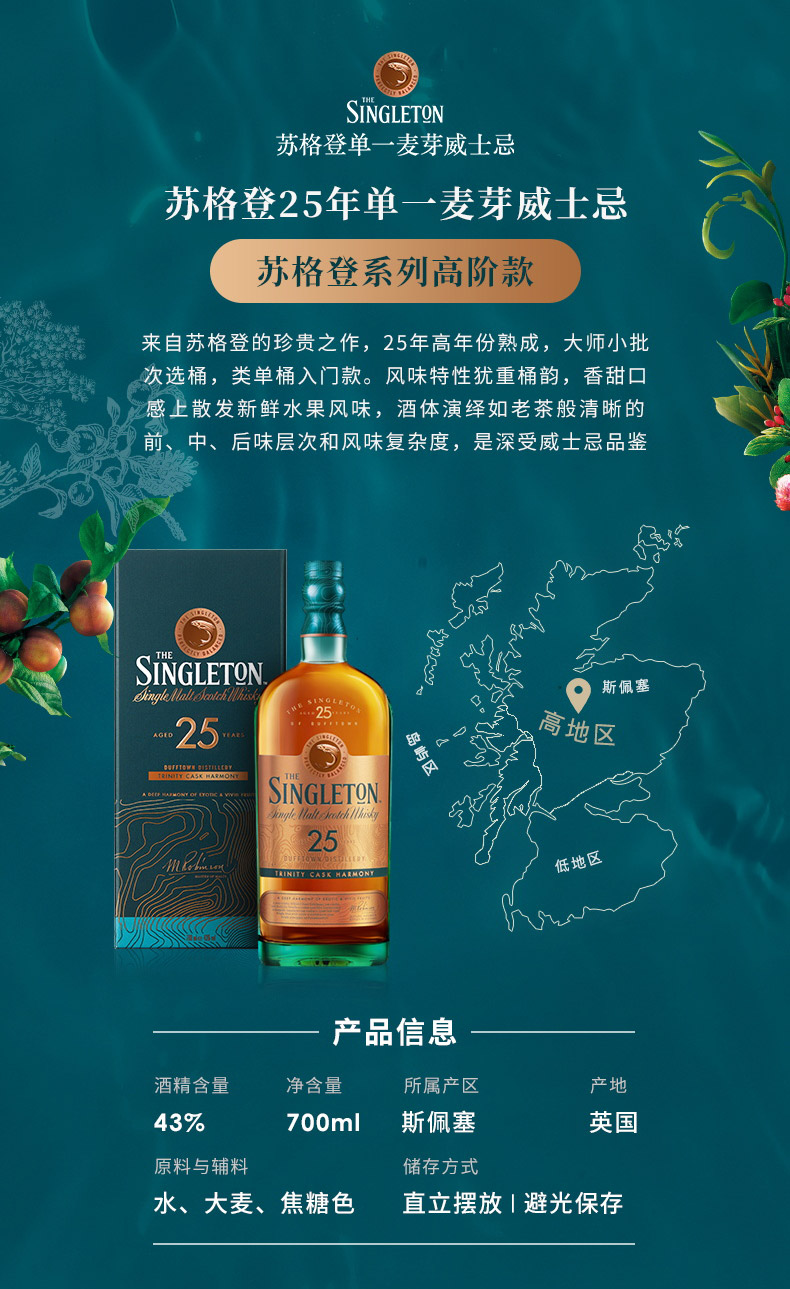 苏格登 达夫镇25年单一麦芽威士忌 700ml