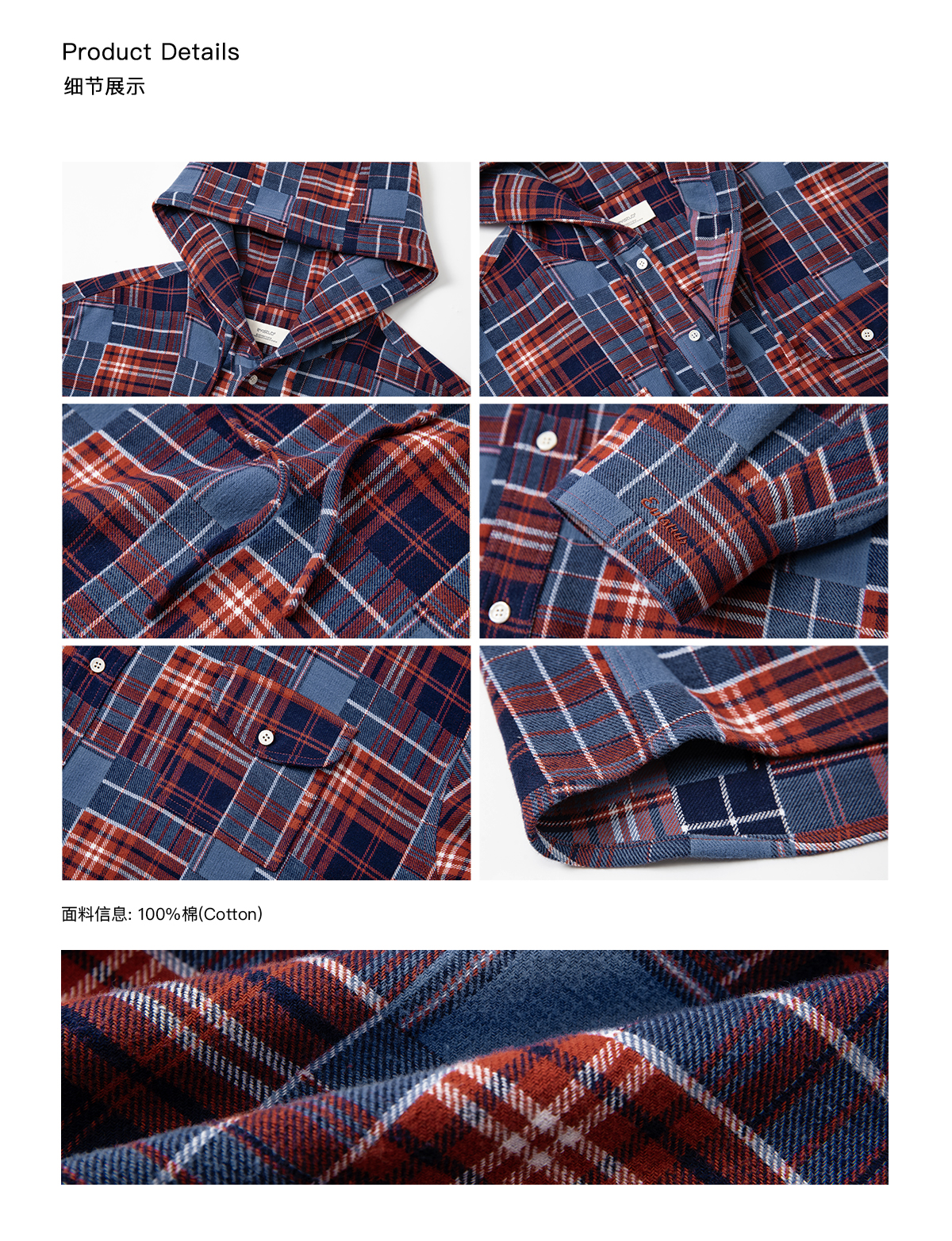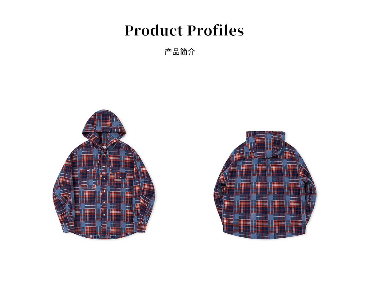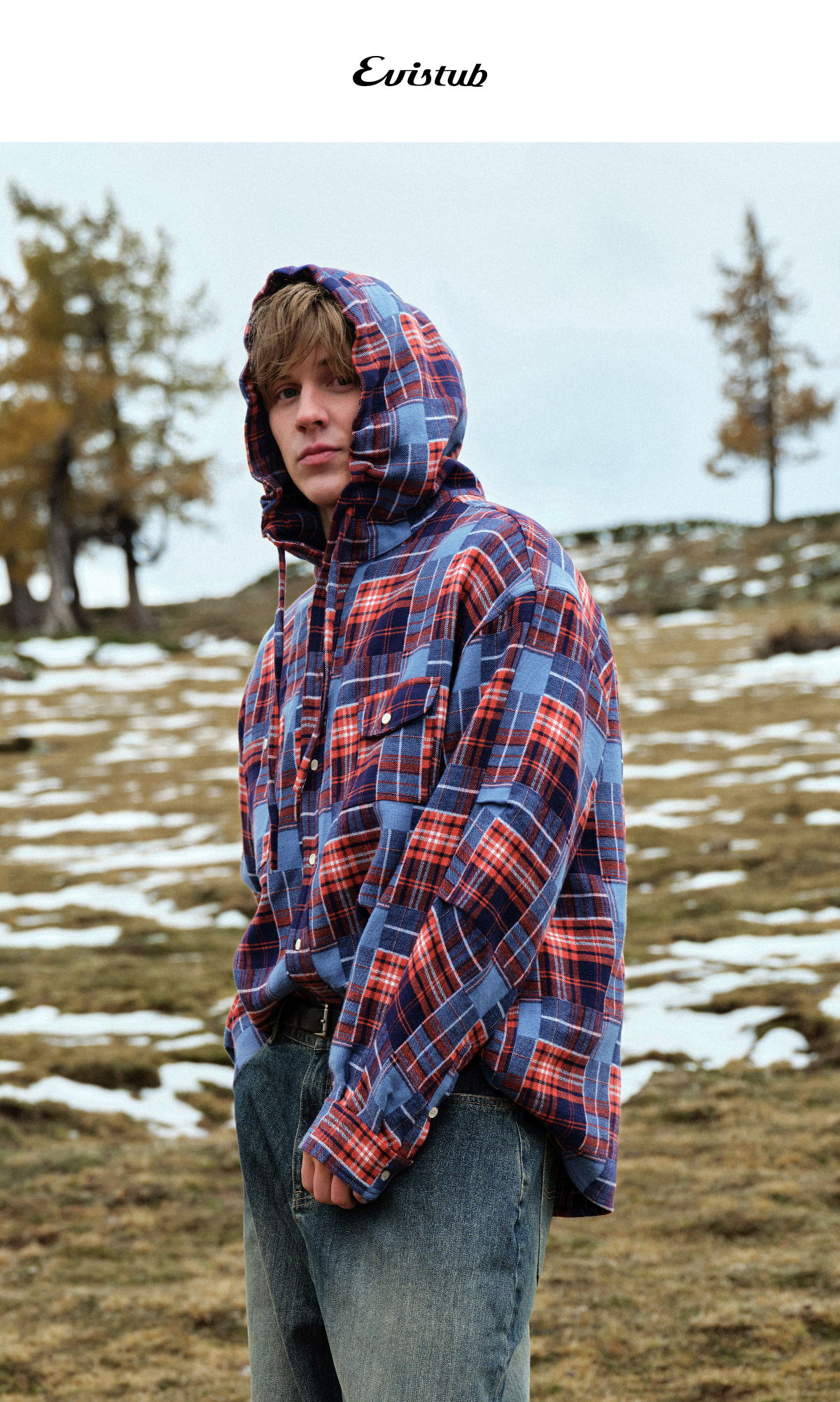 Evistub/E-4DCS939/色织美式复古刷毛格子连帽衬衫外套