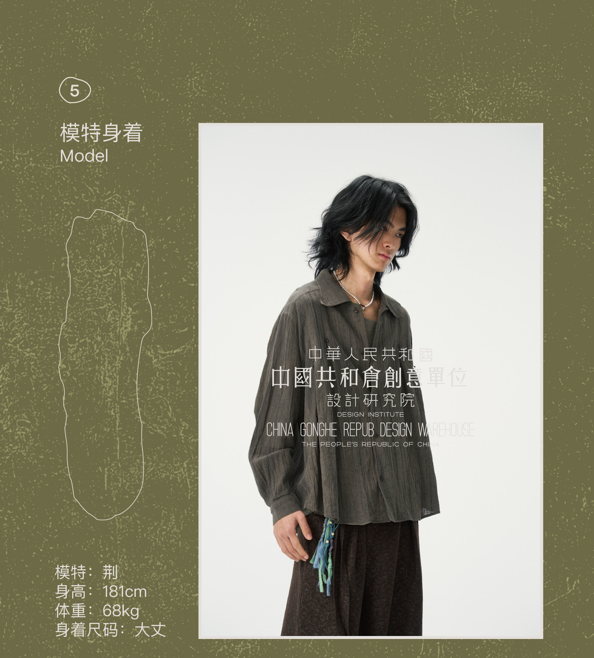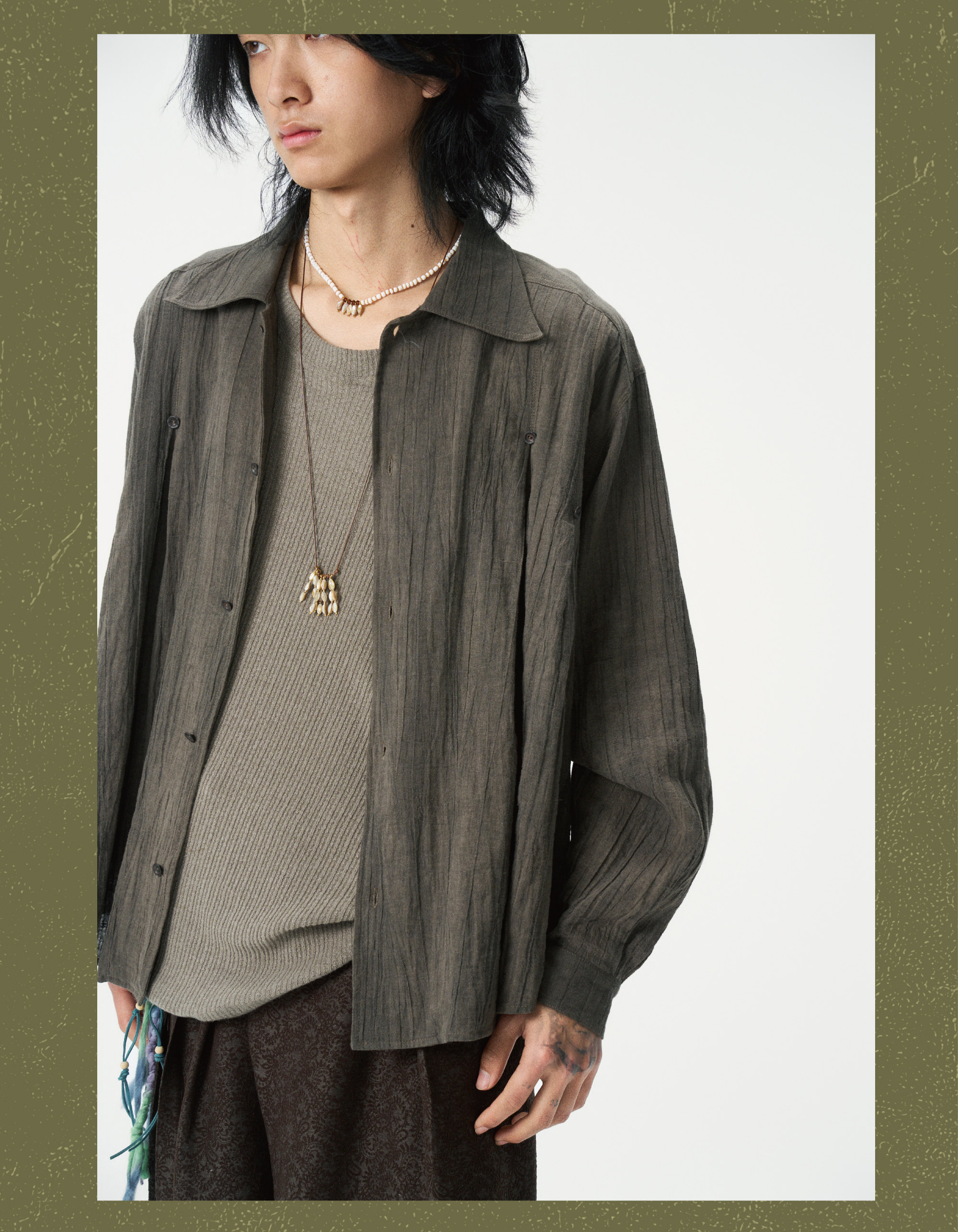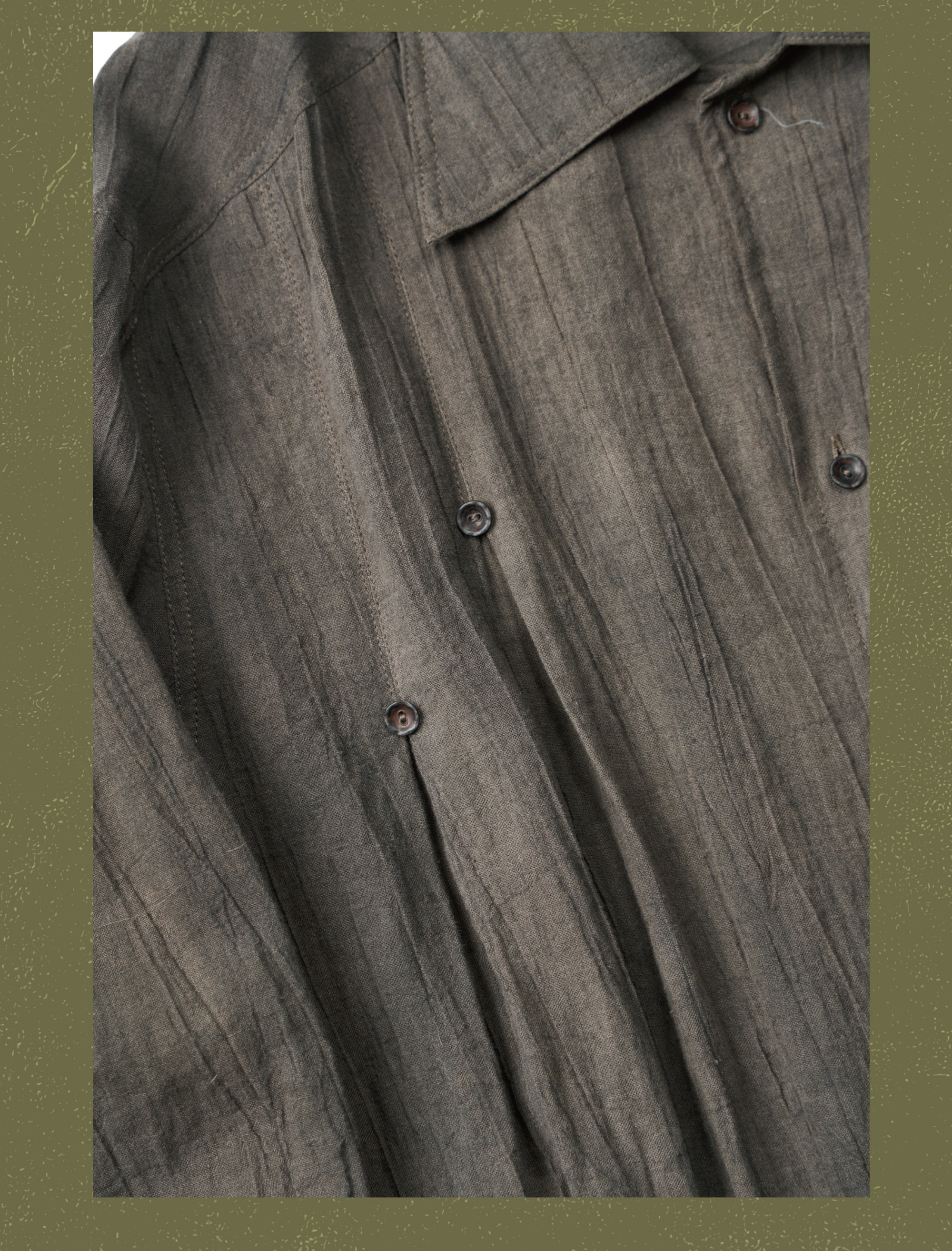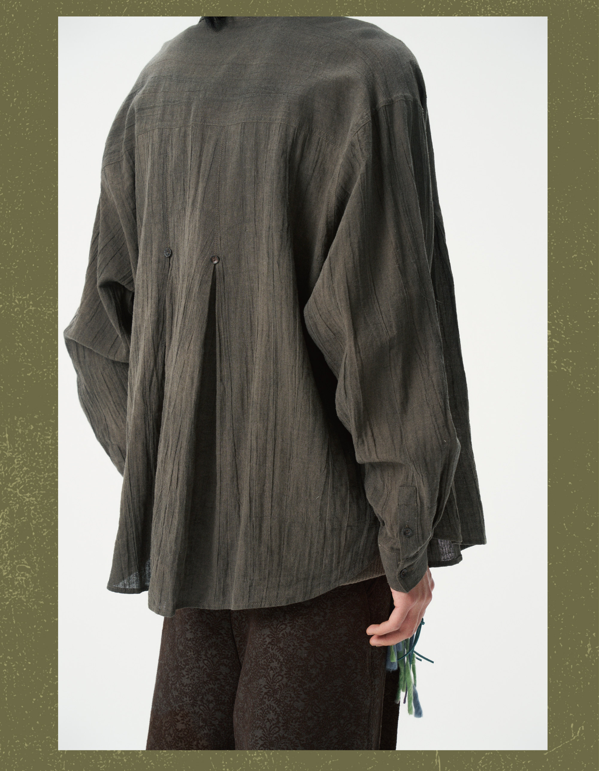 共和GongheRepub/GH24067/「落雨」枯木棕树纹皱感肌理 亚麻宽松落肩遮阳长衬衫