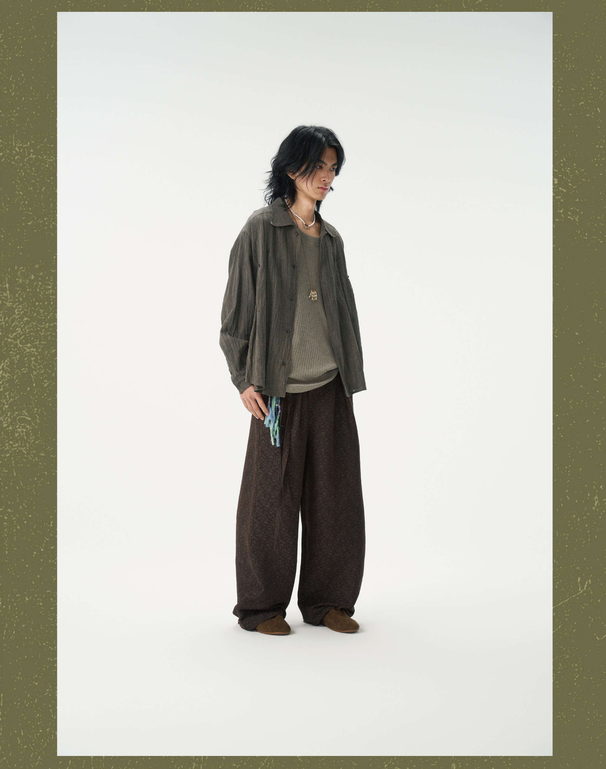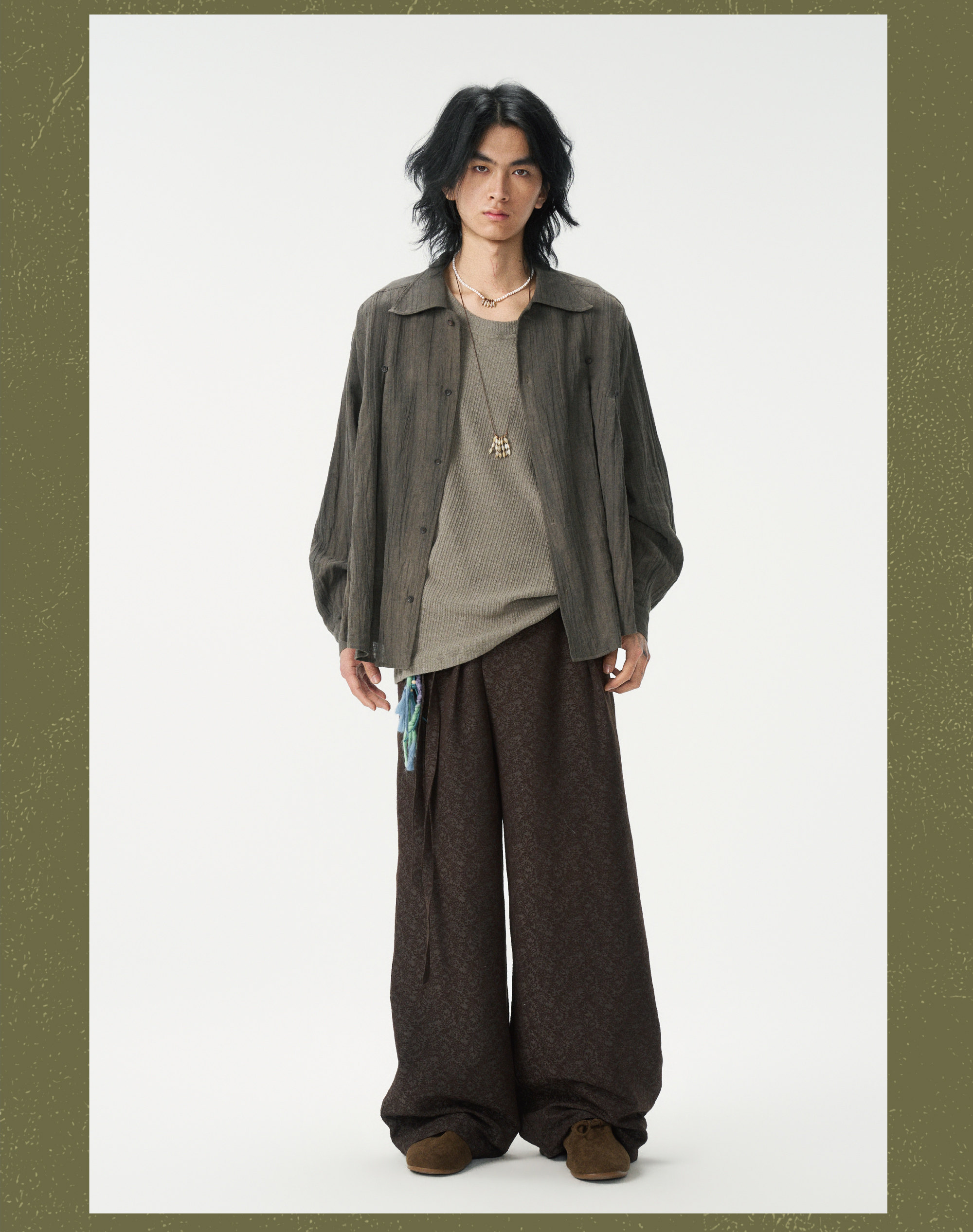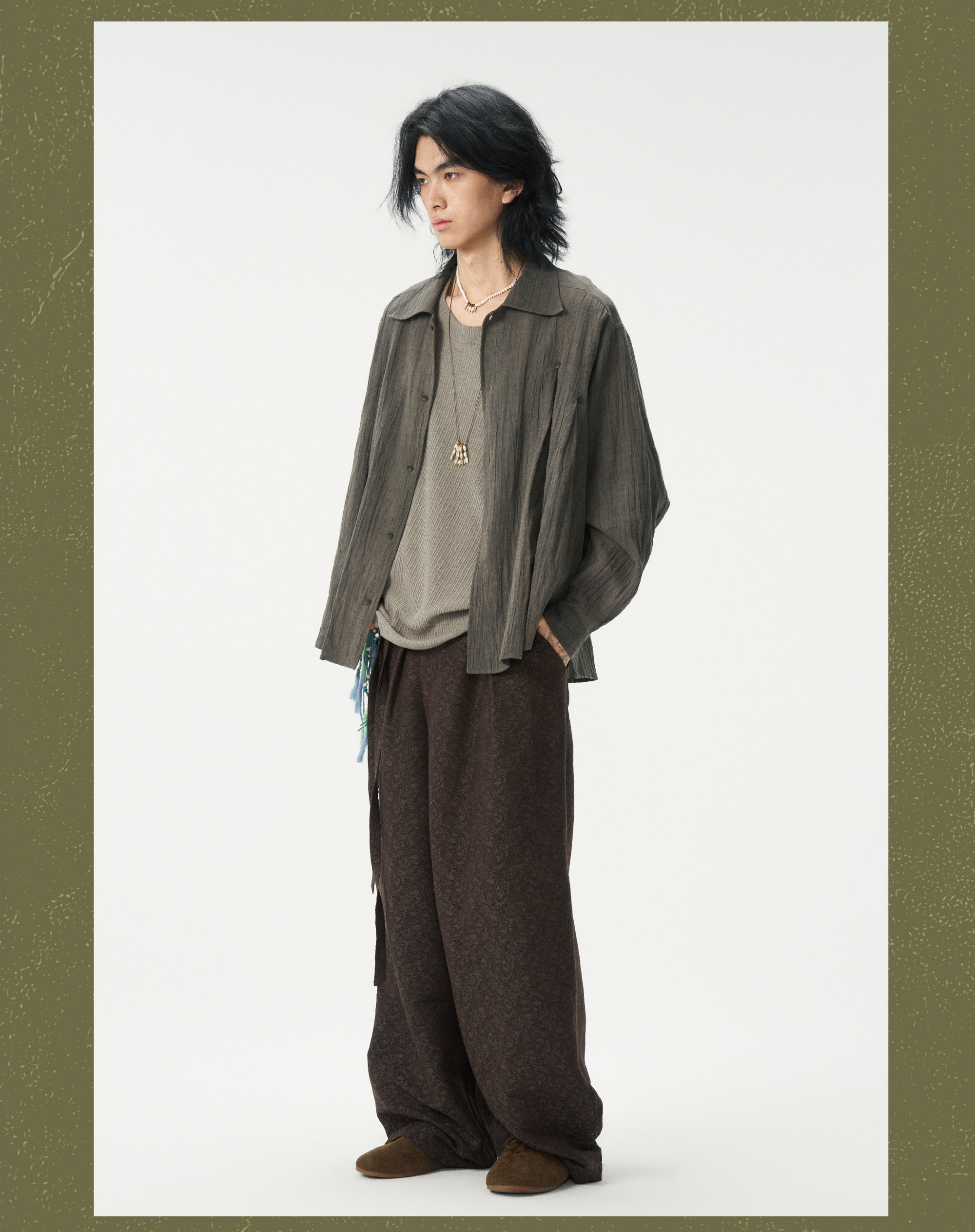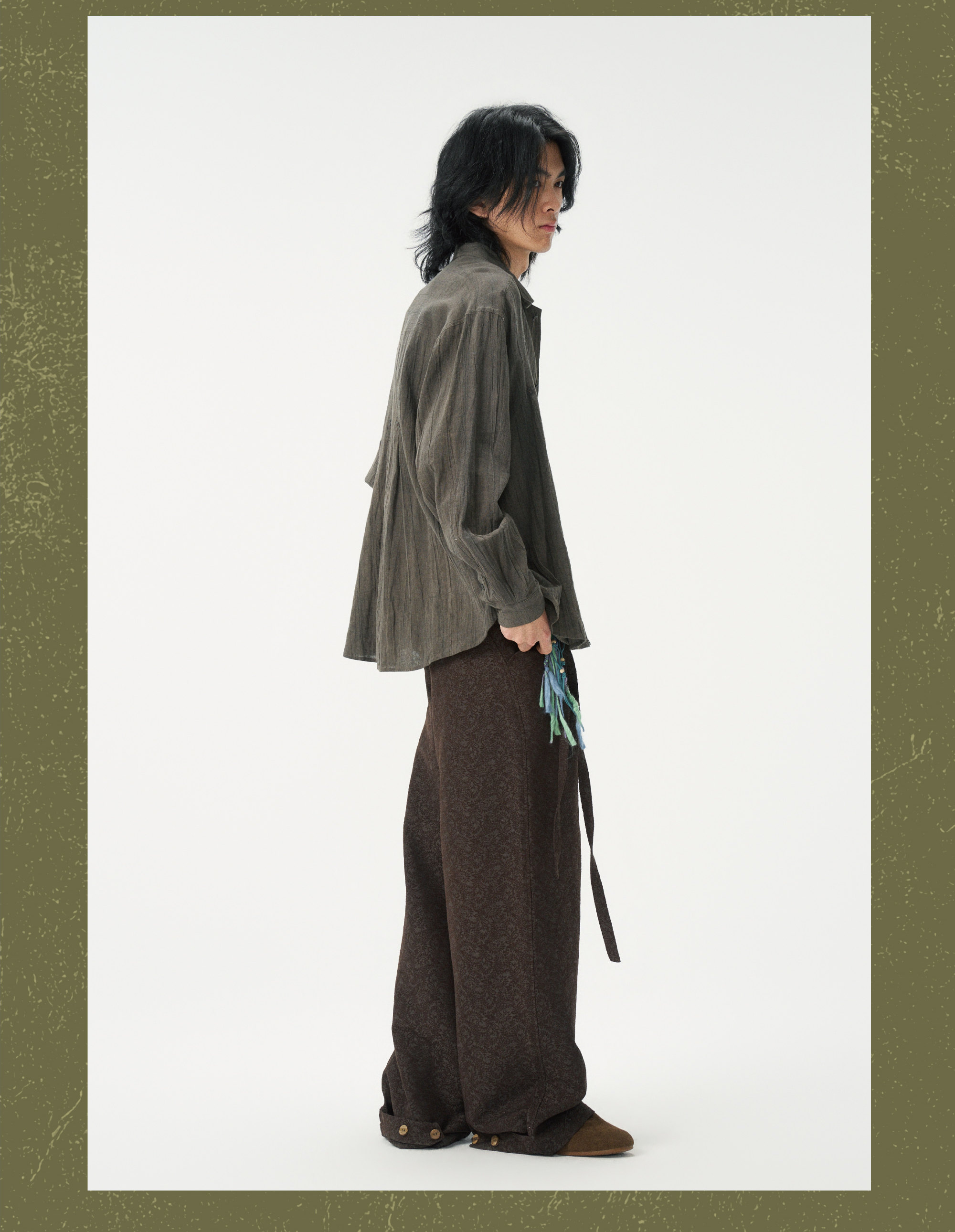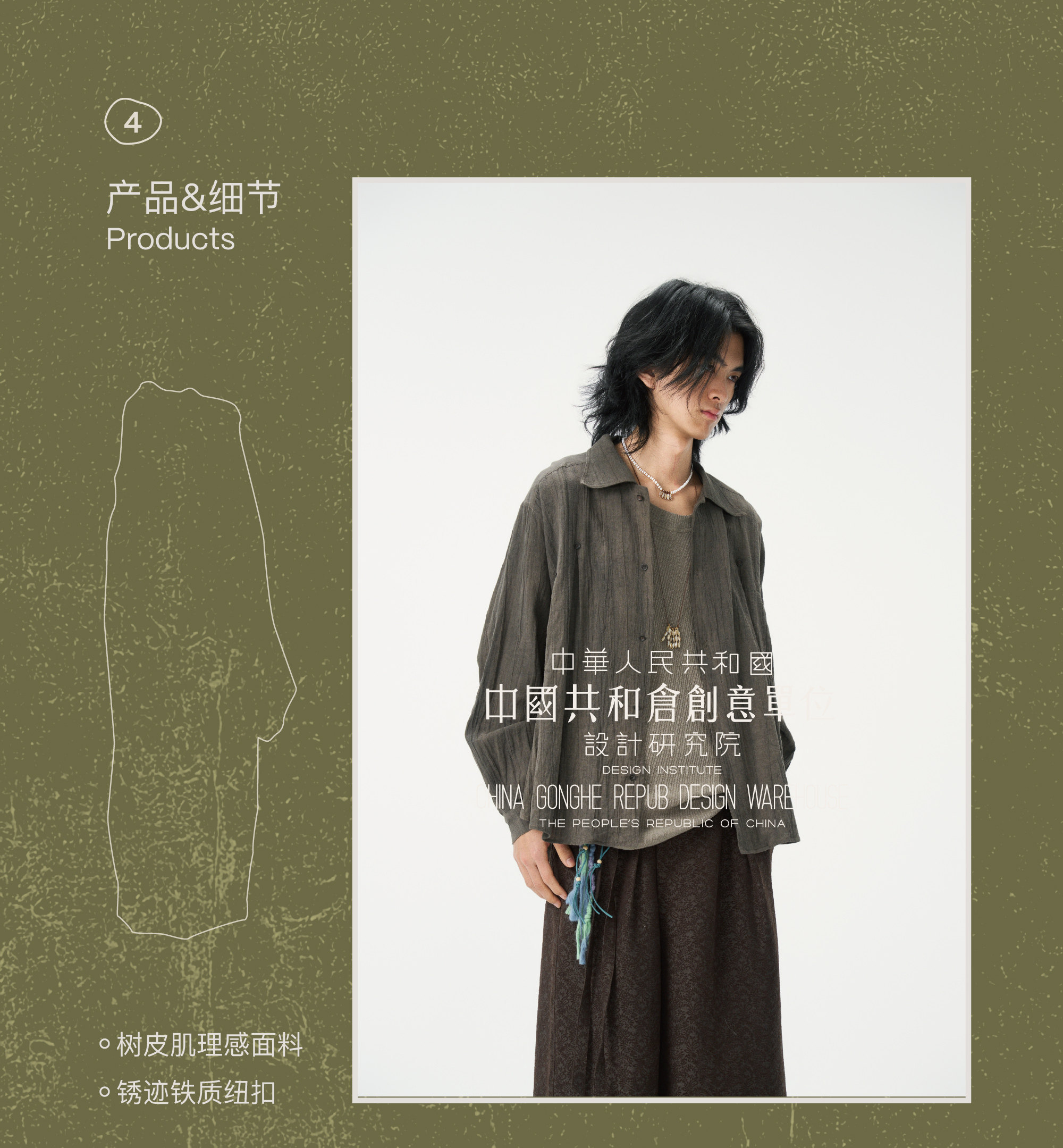 共和GongheRepub/GH24067/「落雨」枯木棕树纹皱感肌理 亚麻宽松落肩遮阳长衬衫