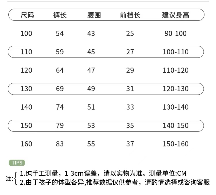 金丝绒款尺码表如下: