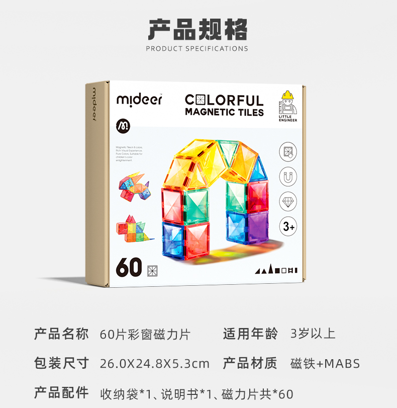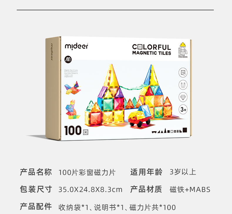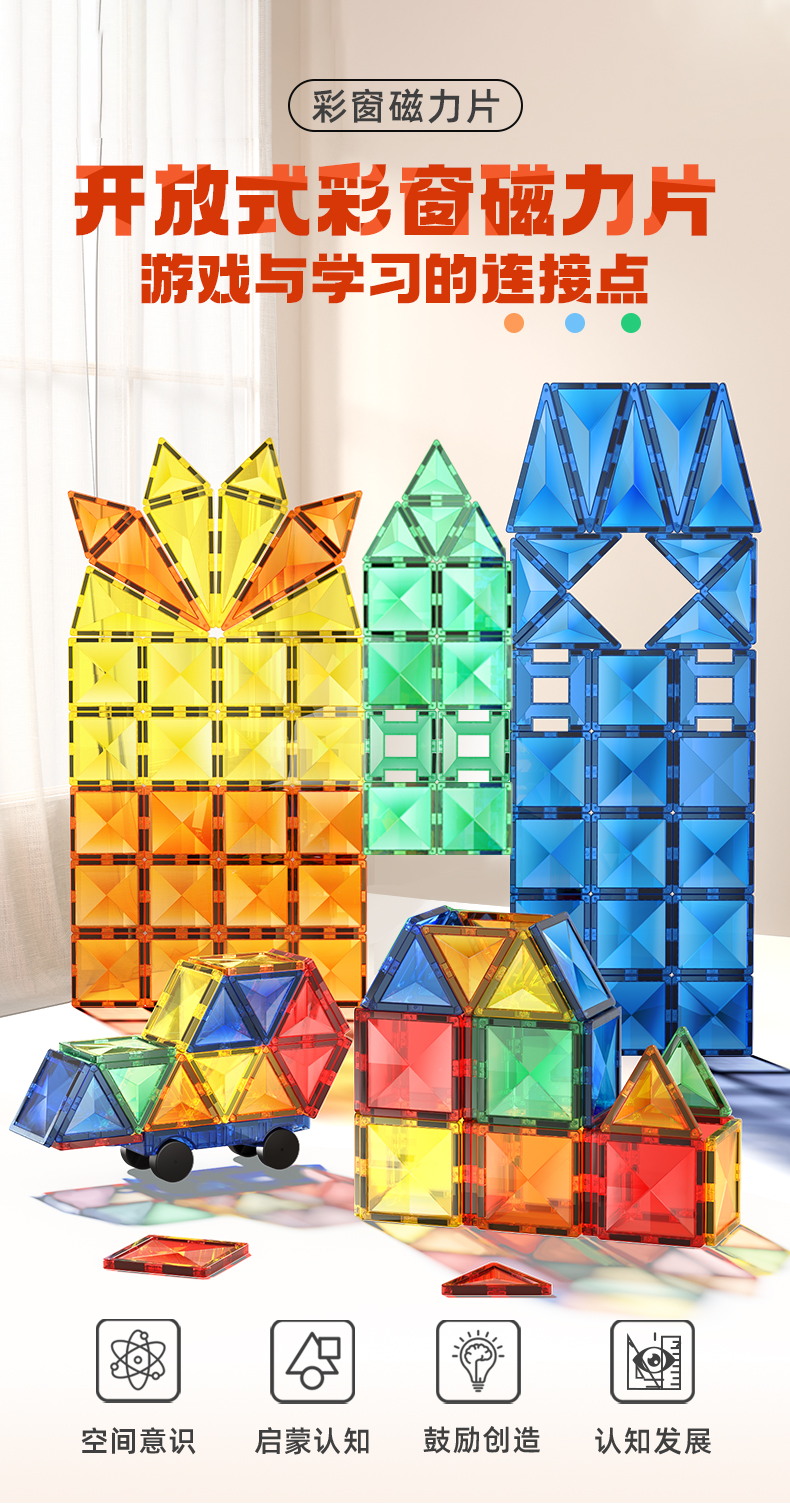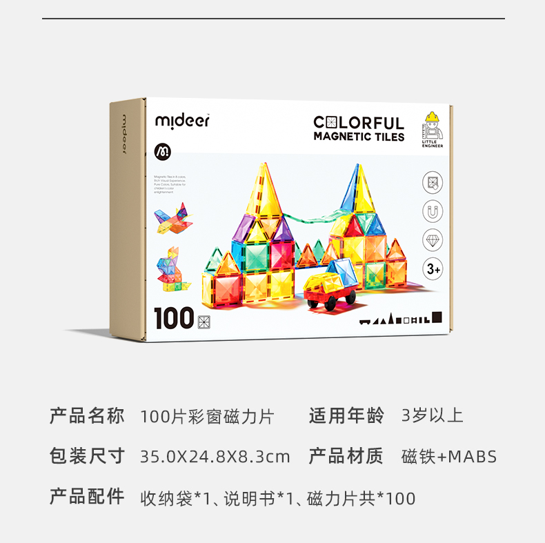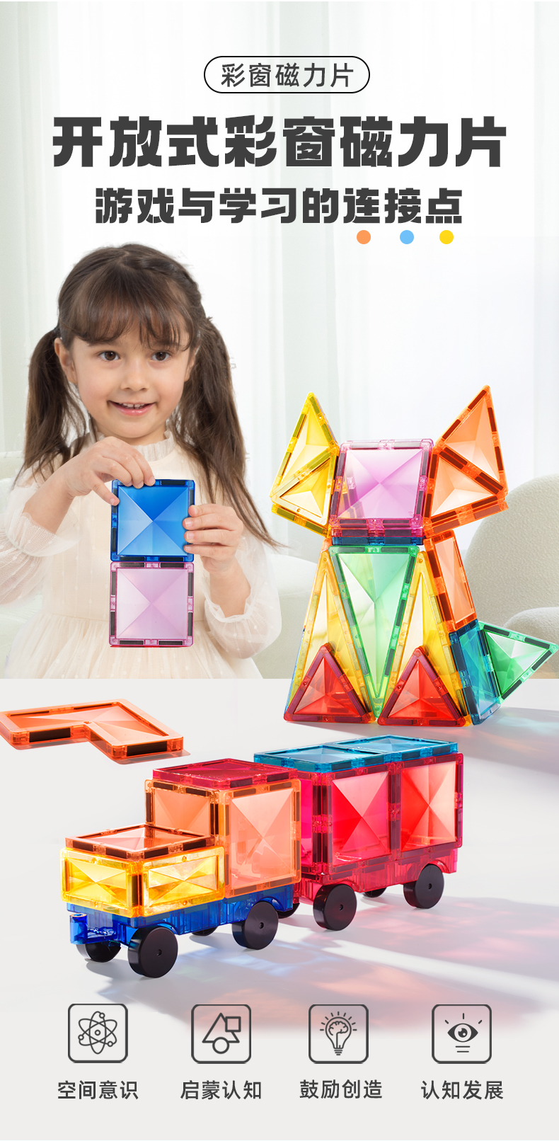 【云优选】mideer弥鹿儿童彩窗磁力片积木磁性磁力棒男孩女孩益智拼装拼接磁铁玩具