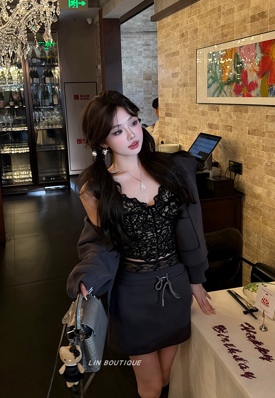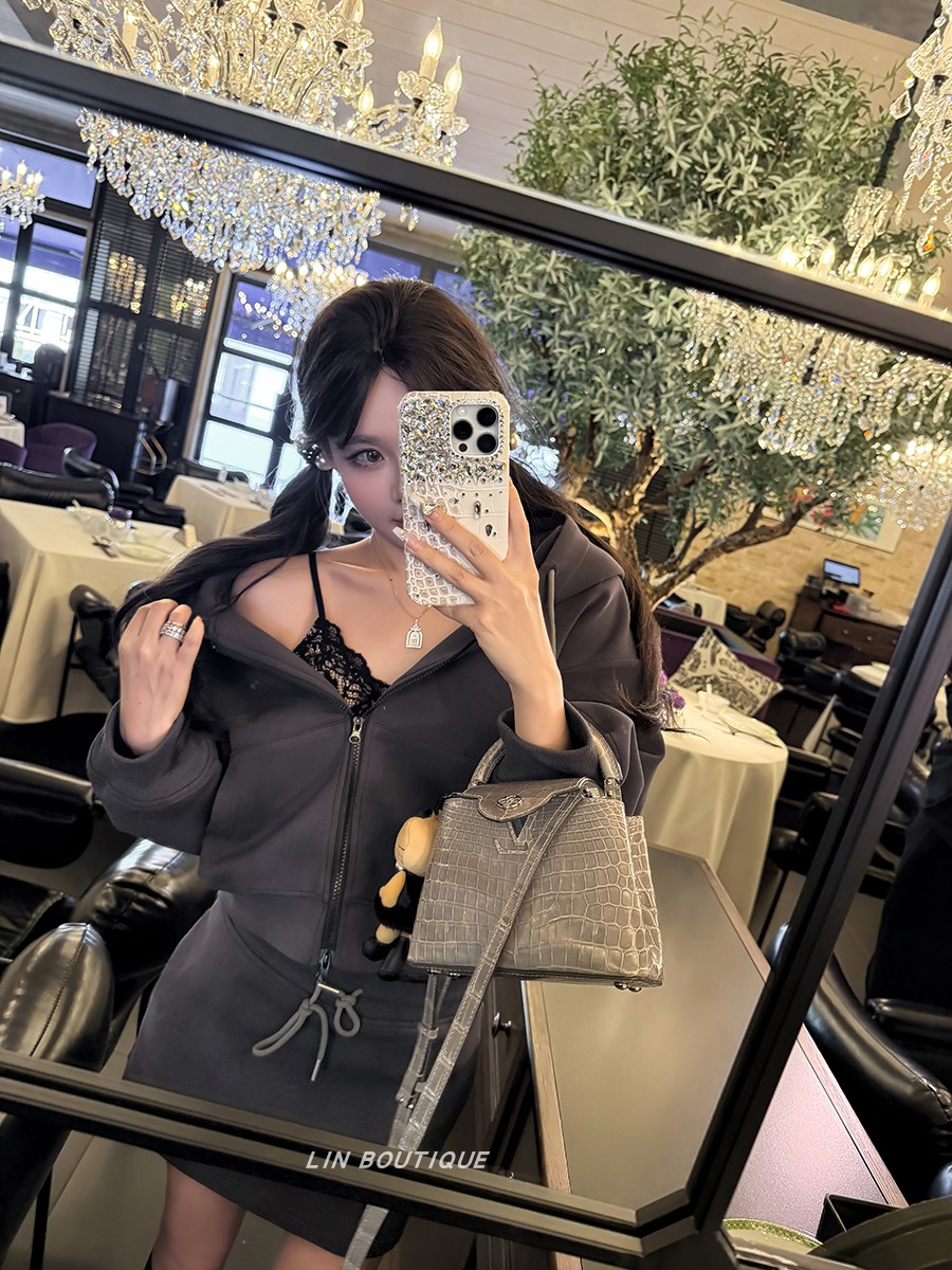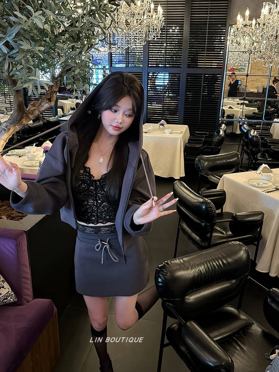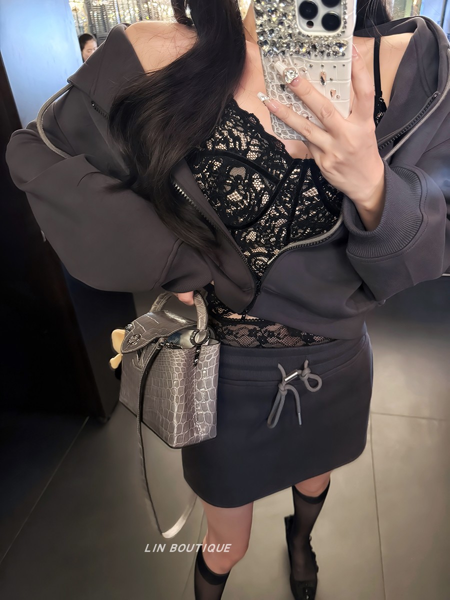 清仓捡漏 LIN BOUTIQUE 【十亿俱乐部】老钱名媛运动卫衣+蕾丝卫裙套装女