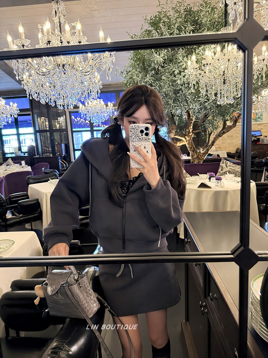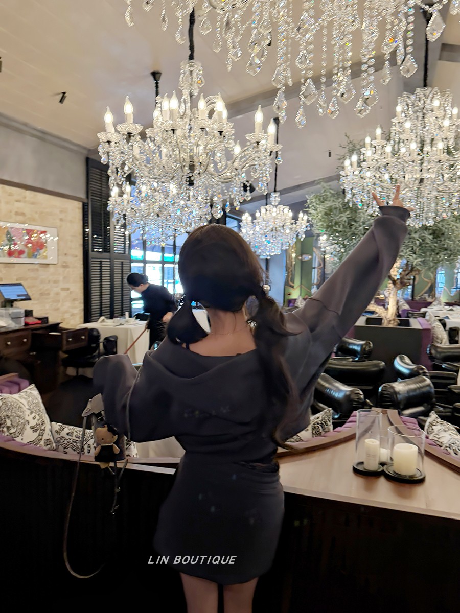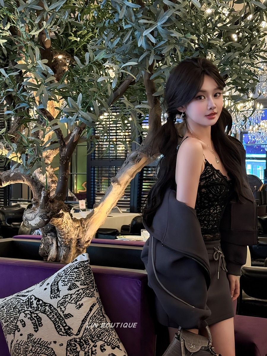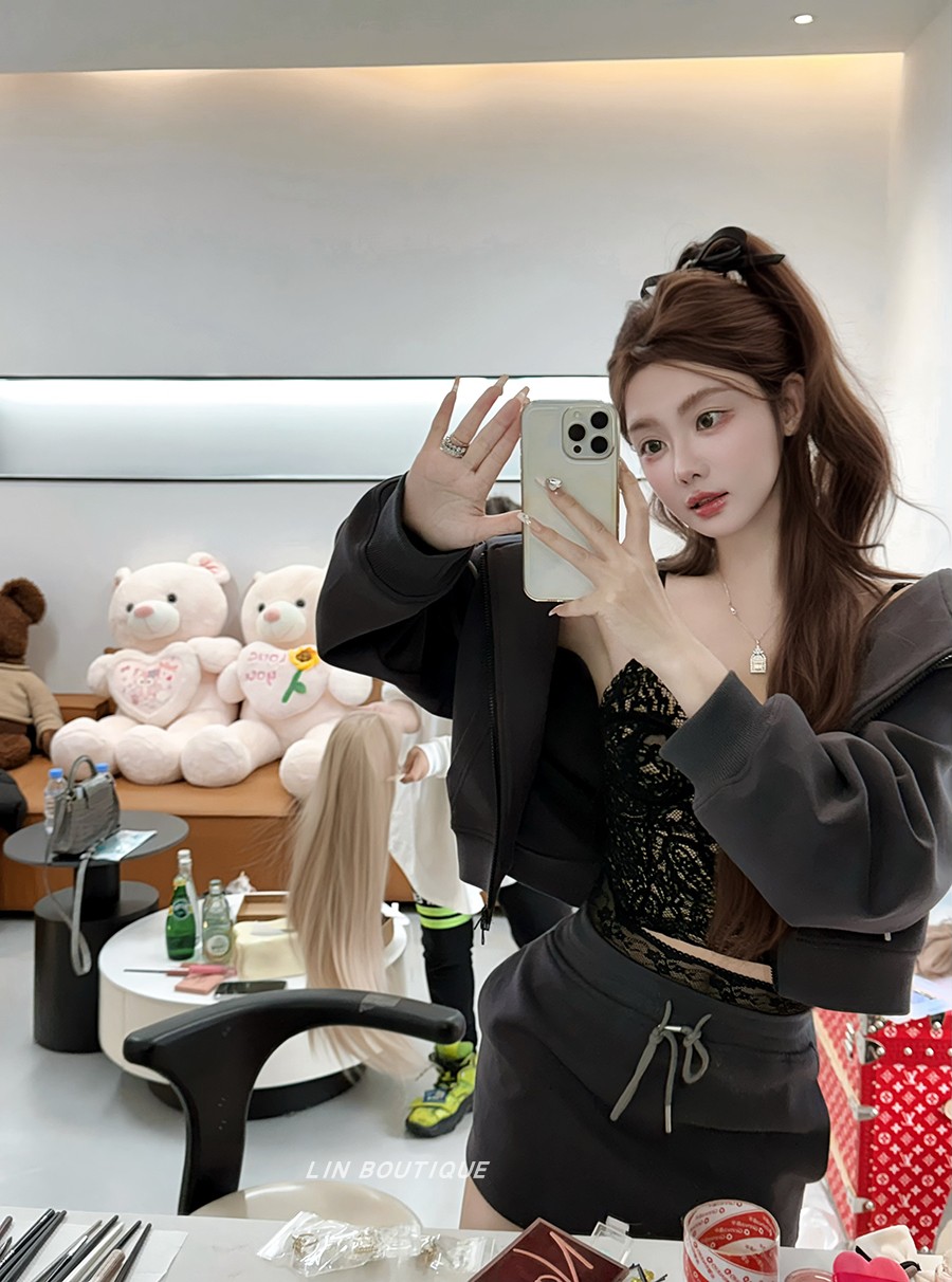 清仓捡漏 LIN BOUTIQUE 【十亿俱乐部】老钱名媛运动卫衣+蕾丝卫裙套装女