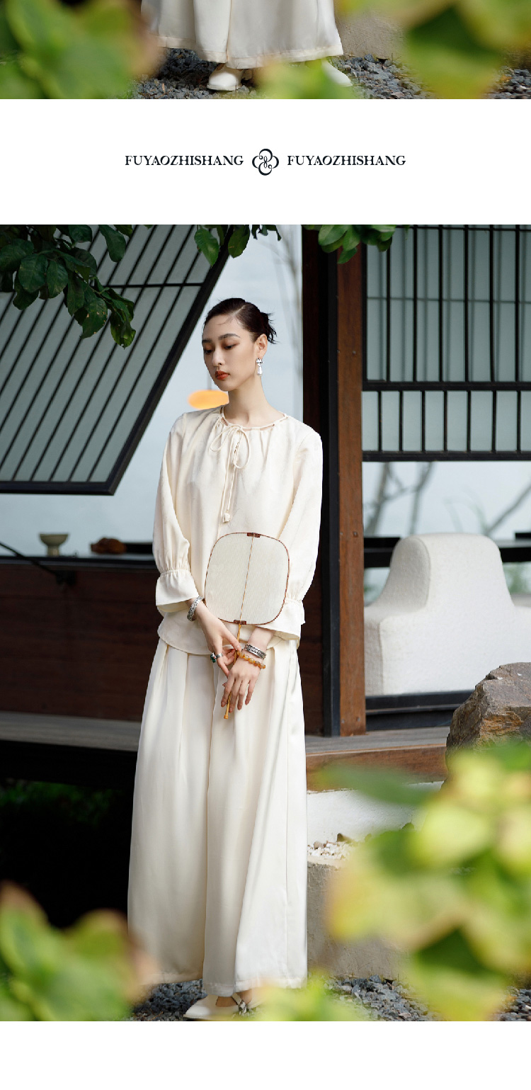 IWY/扶摇系列 抽绳领镂空设计衬衫+阔腿裤23FYBP113