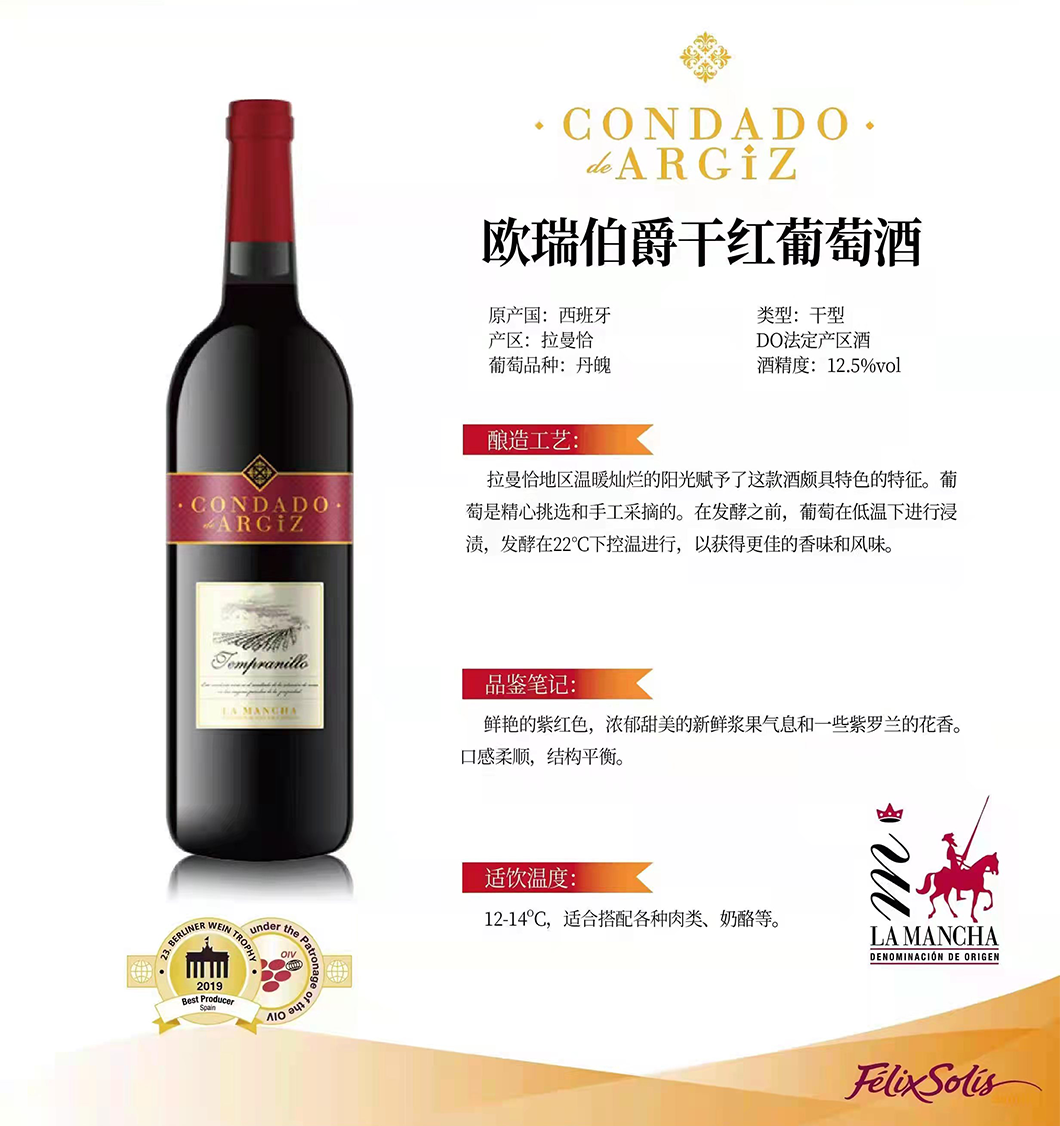 欧瑞伯爵干红葡萄酒 6瓶