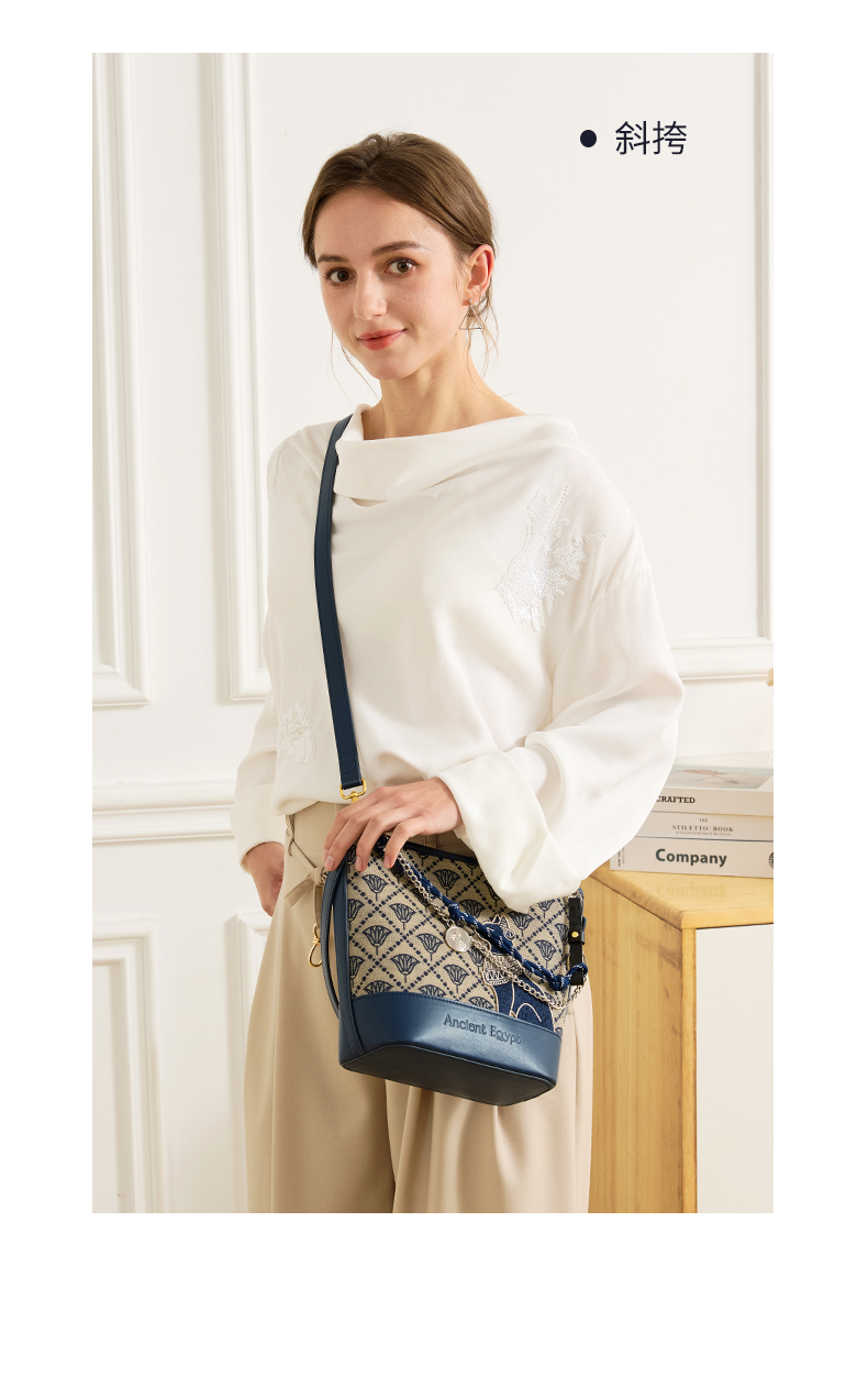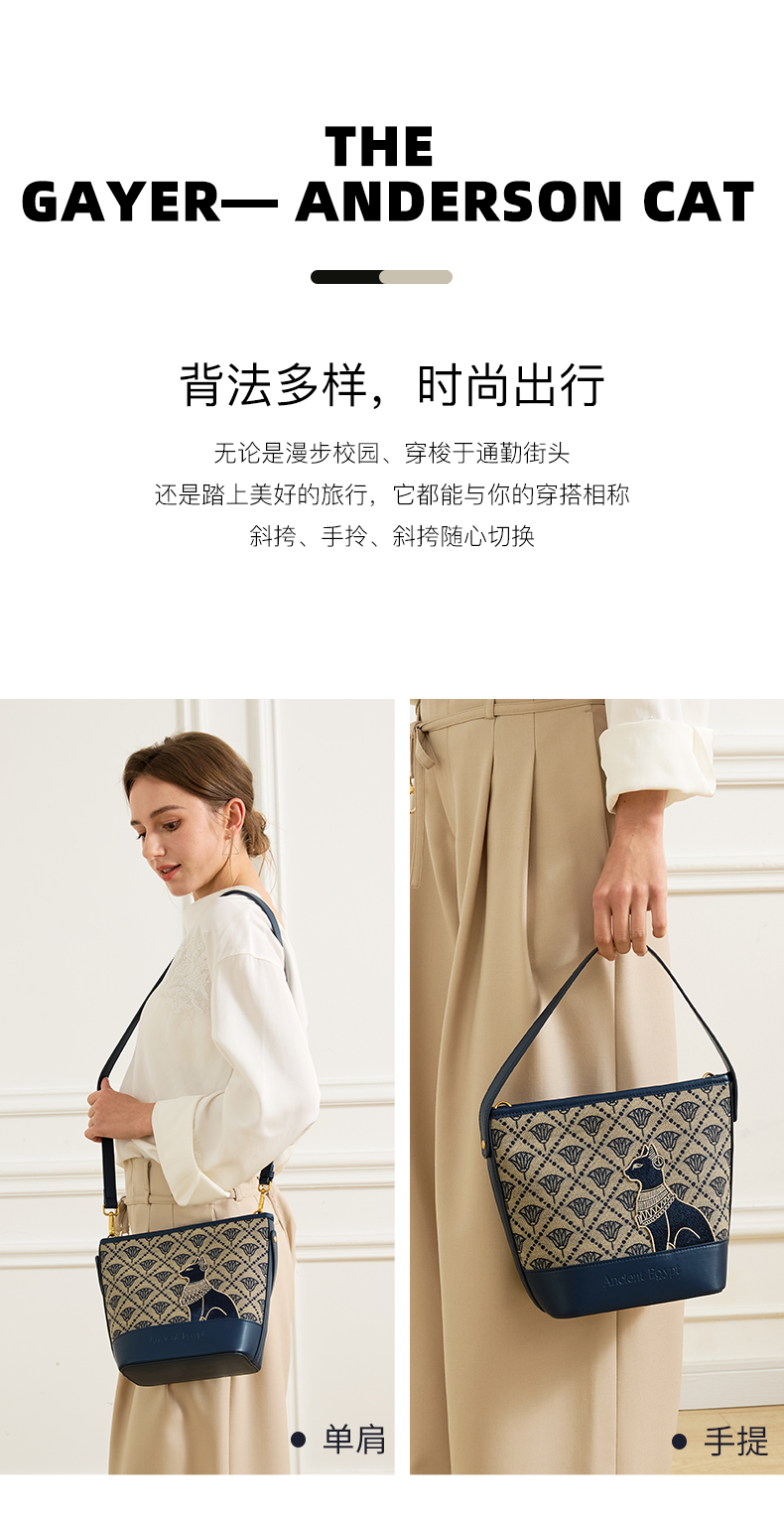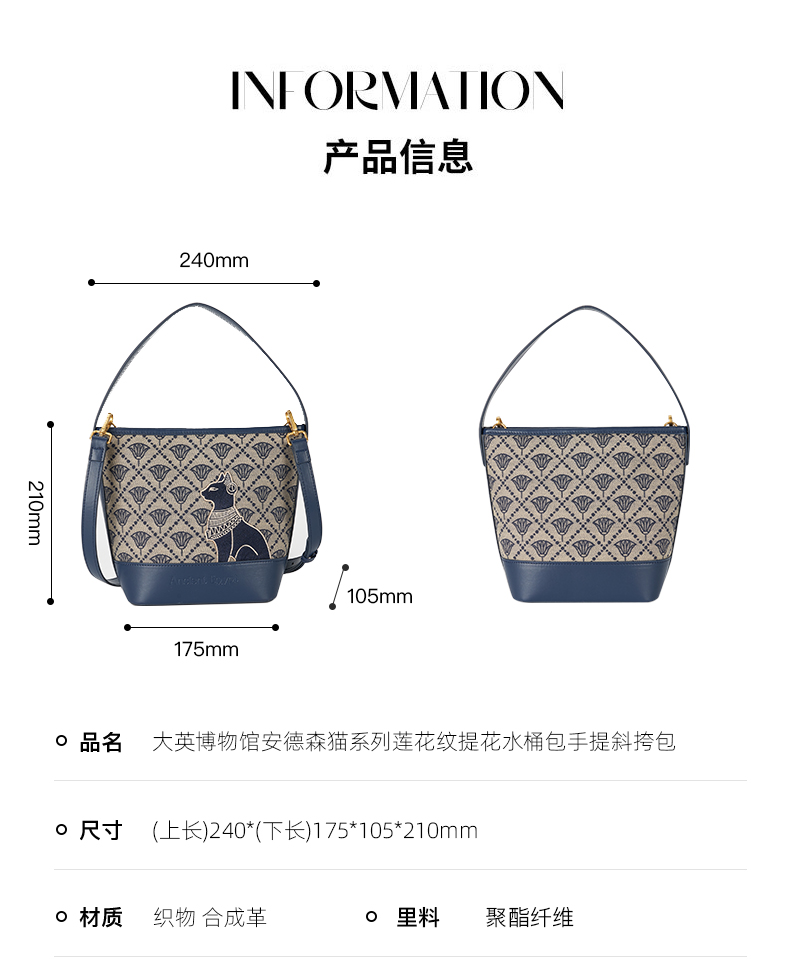 大英博物馆 盖亚·安德森猫系列 莲花纹提花水桶包手提斜挎包