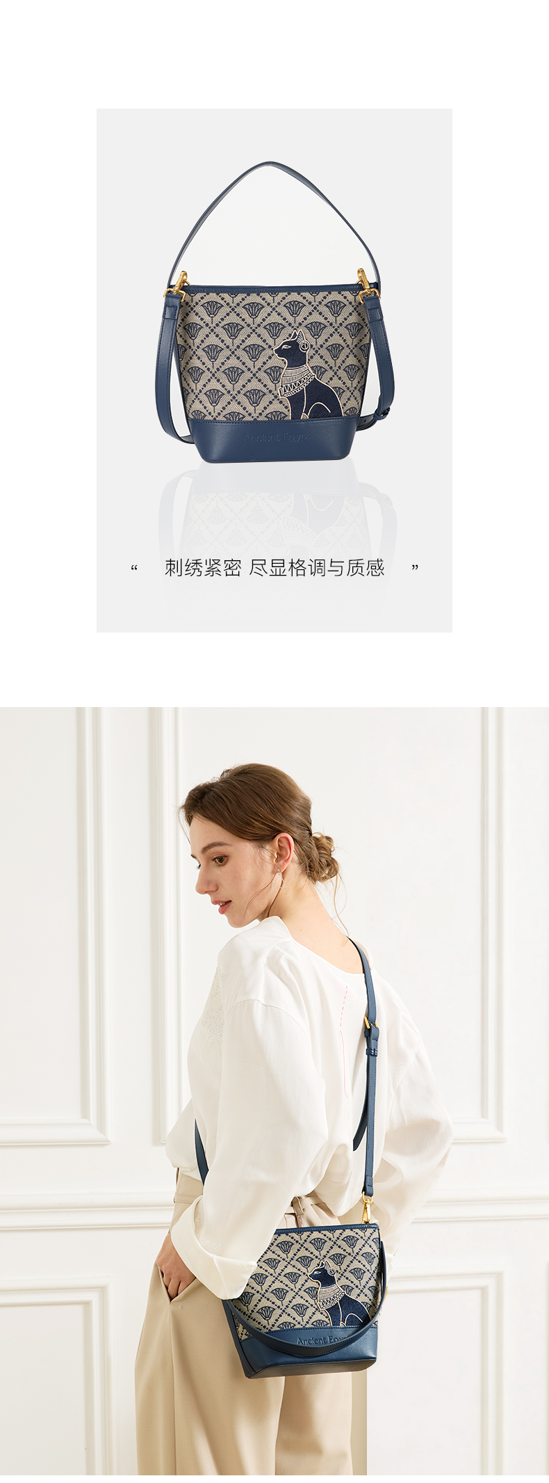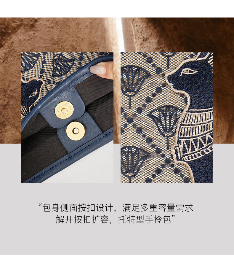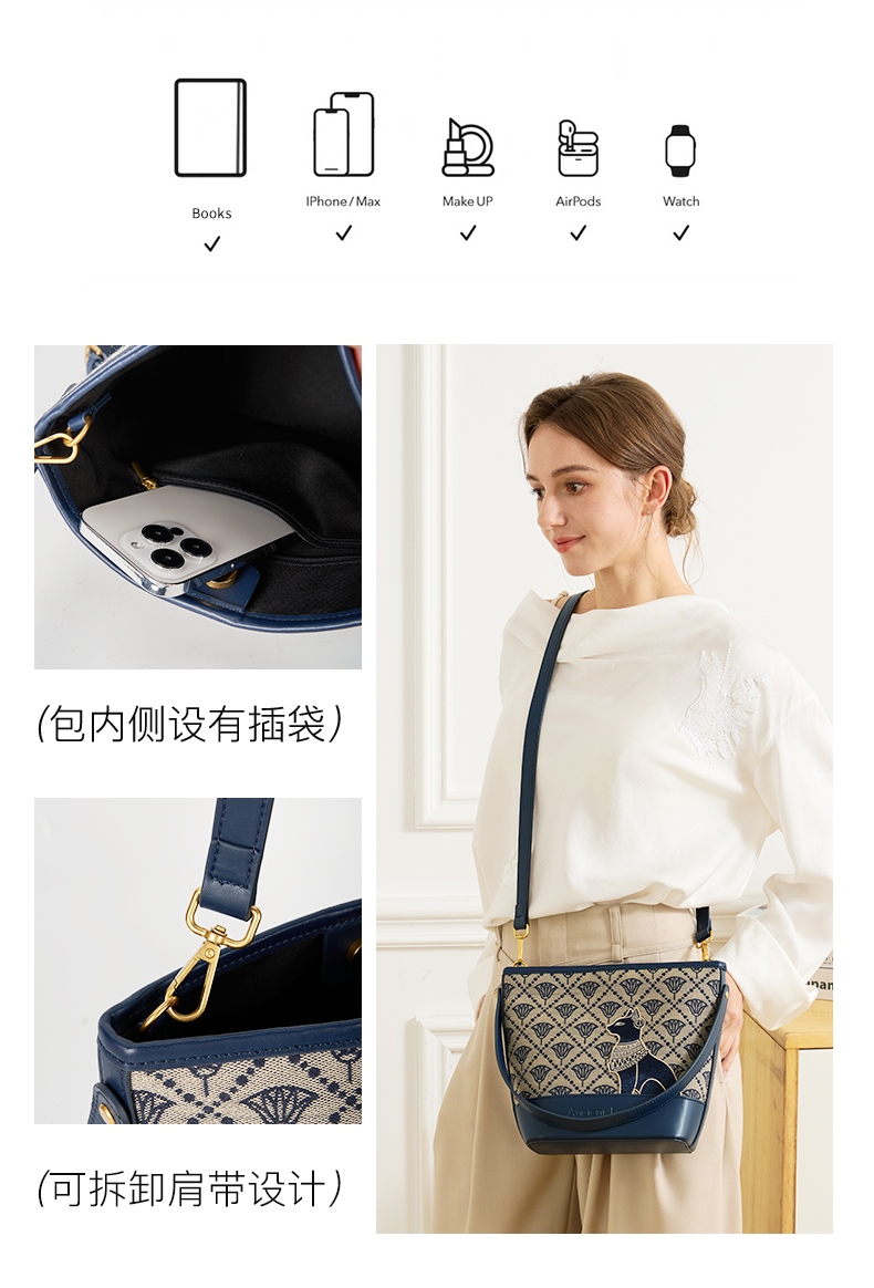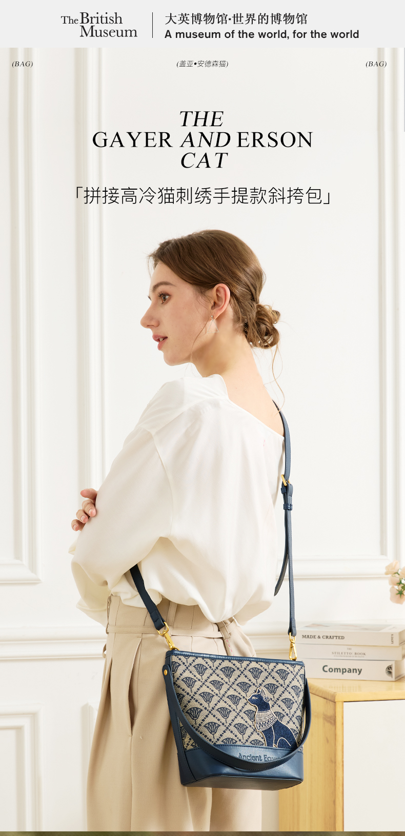 大英博物馆 盖亚·安德森猫系列 莲花纹提花水桶包手提斜挎包