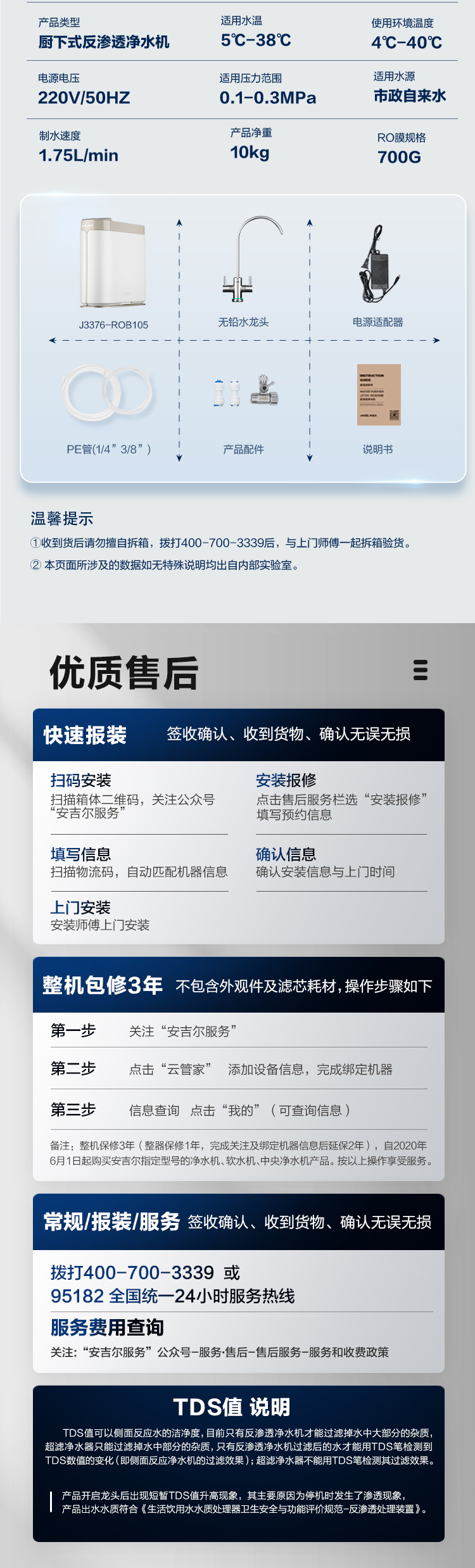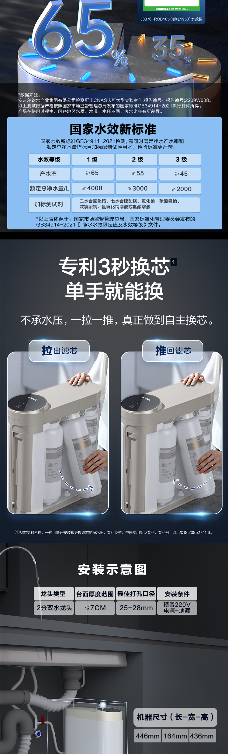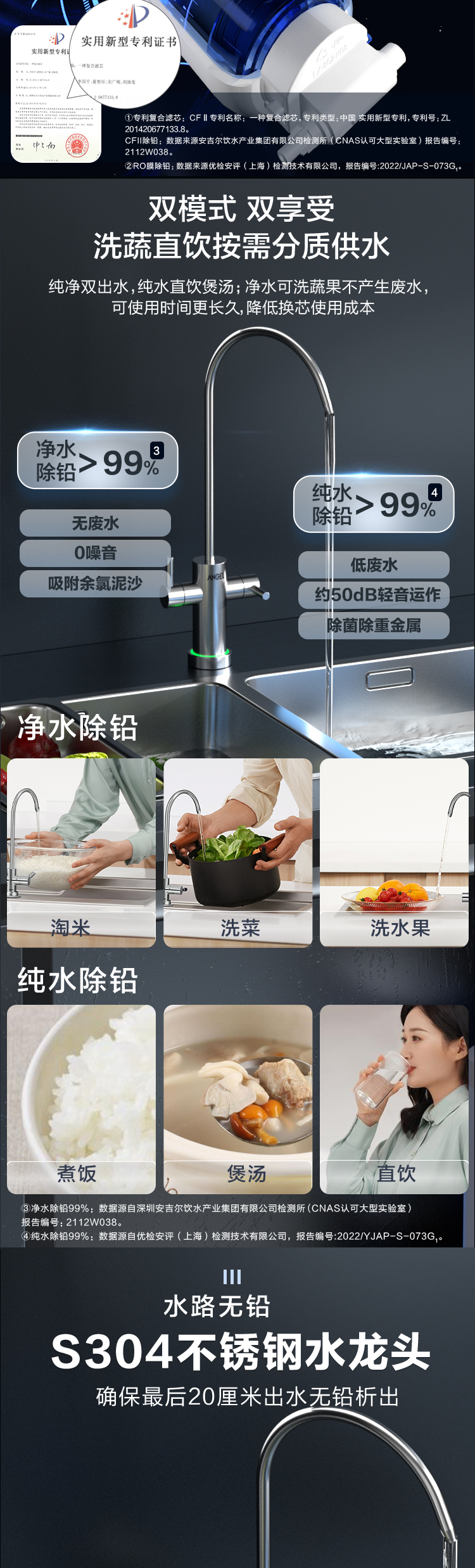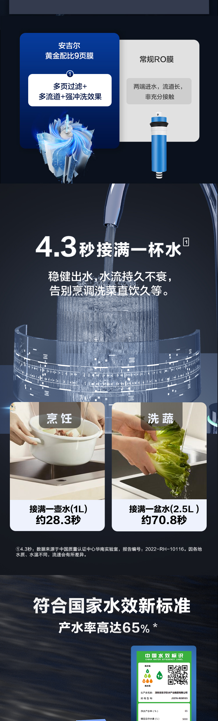 安吉尔哪吒700G 净水器家用直饮ro反渗透过滤