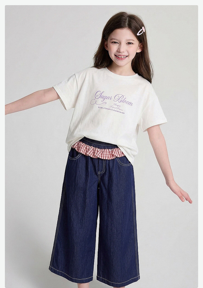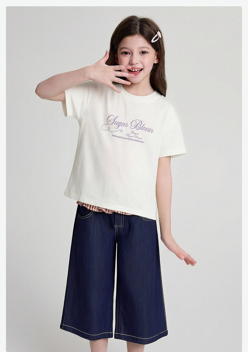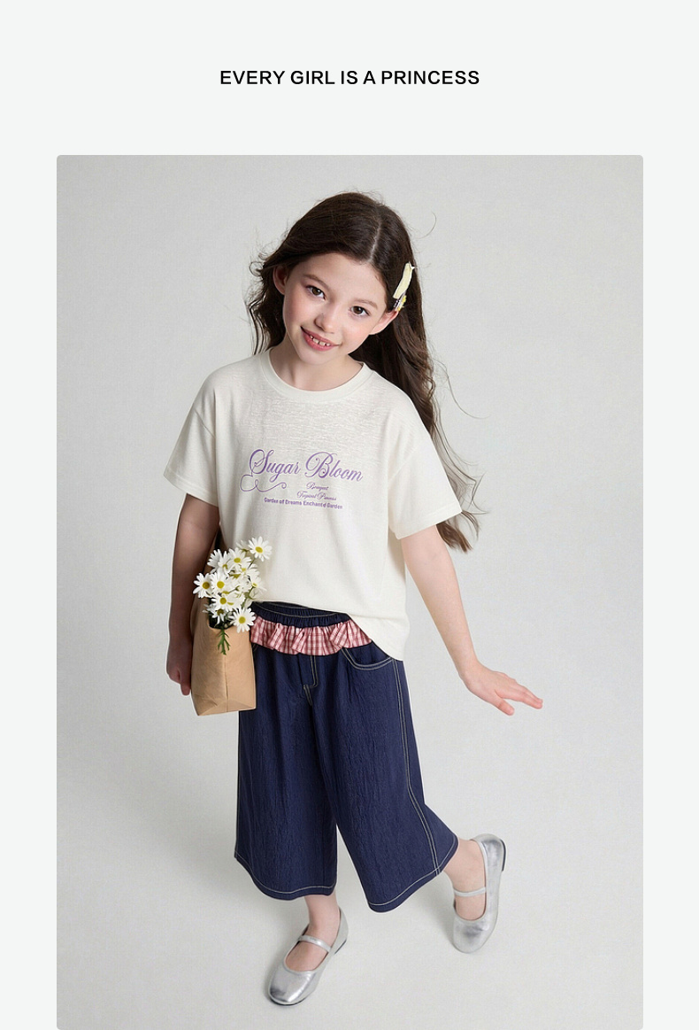 笛莎/Deesha 2026年夏季新款女童中大童圆领纯色T恤