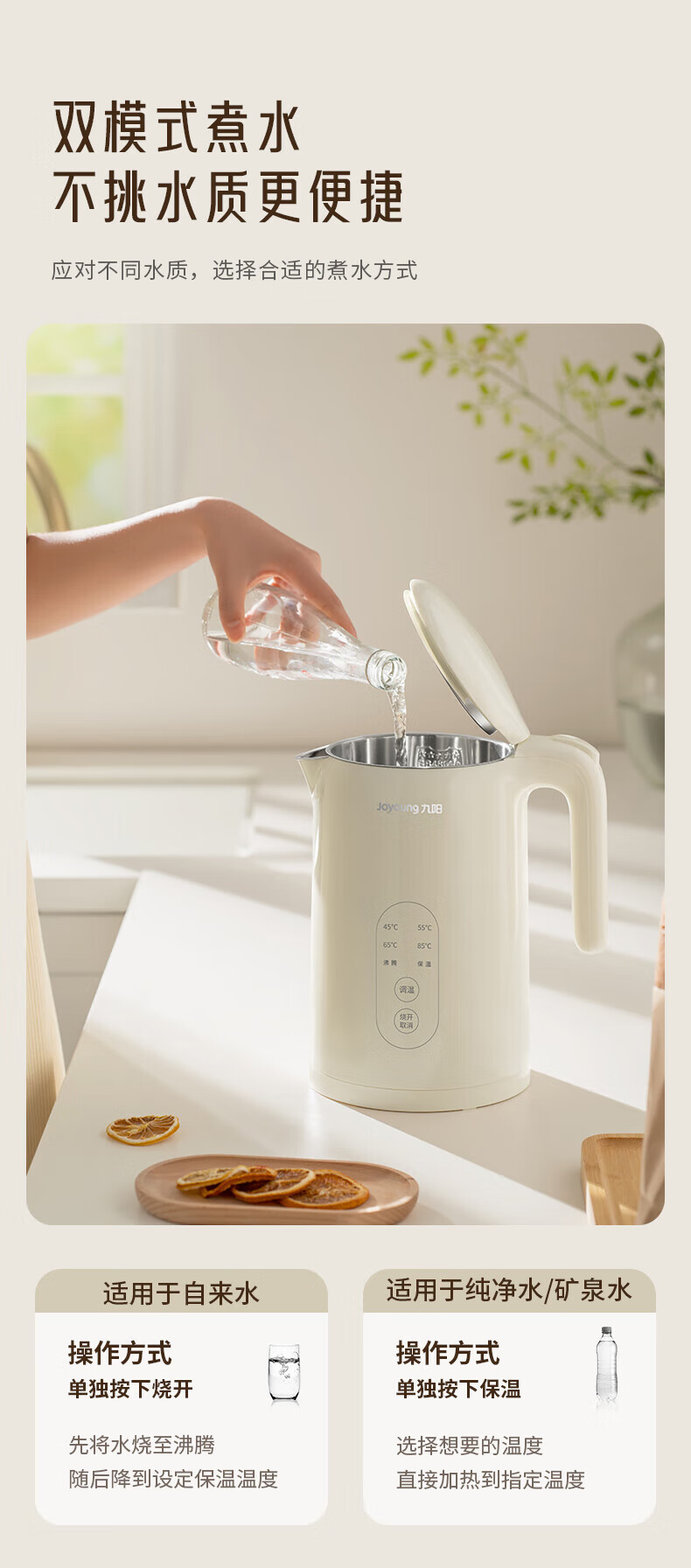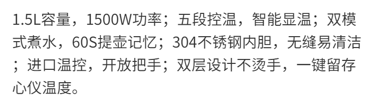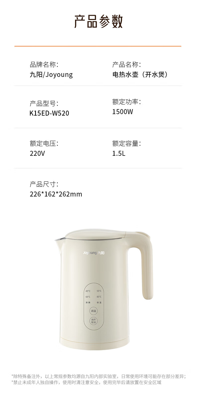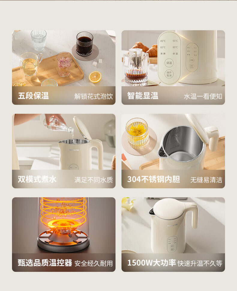 九阳1.5升恒温壶 5段调温显温 电热水壶 开水煲家用烧水壶 双层电水壶
