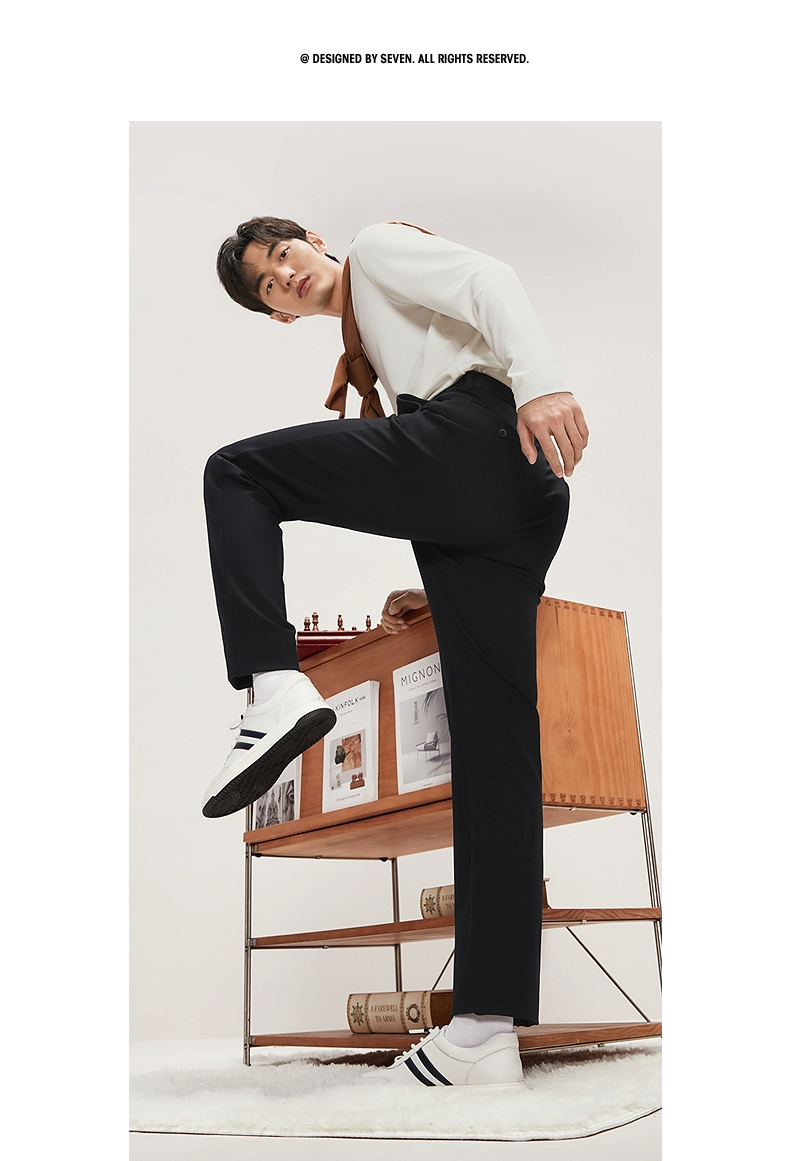 【石墨烯】柒牌弹力休闲裤男2024冬季新款商务百搭修身直筒长裤子 127H70940