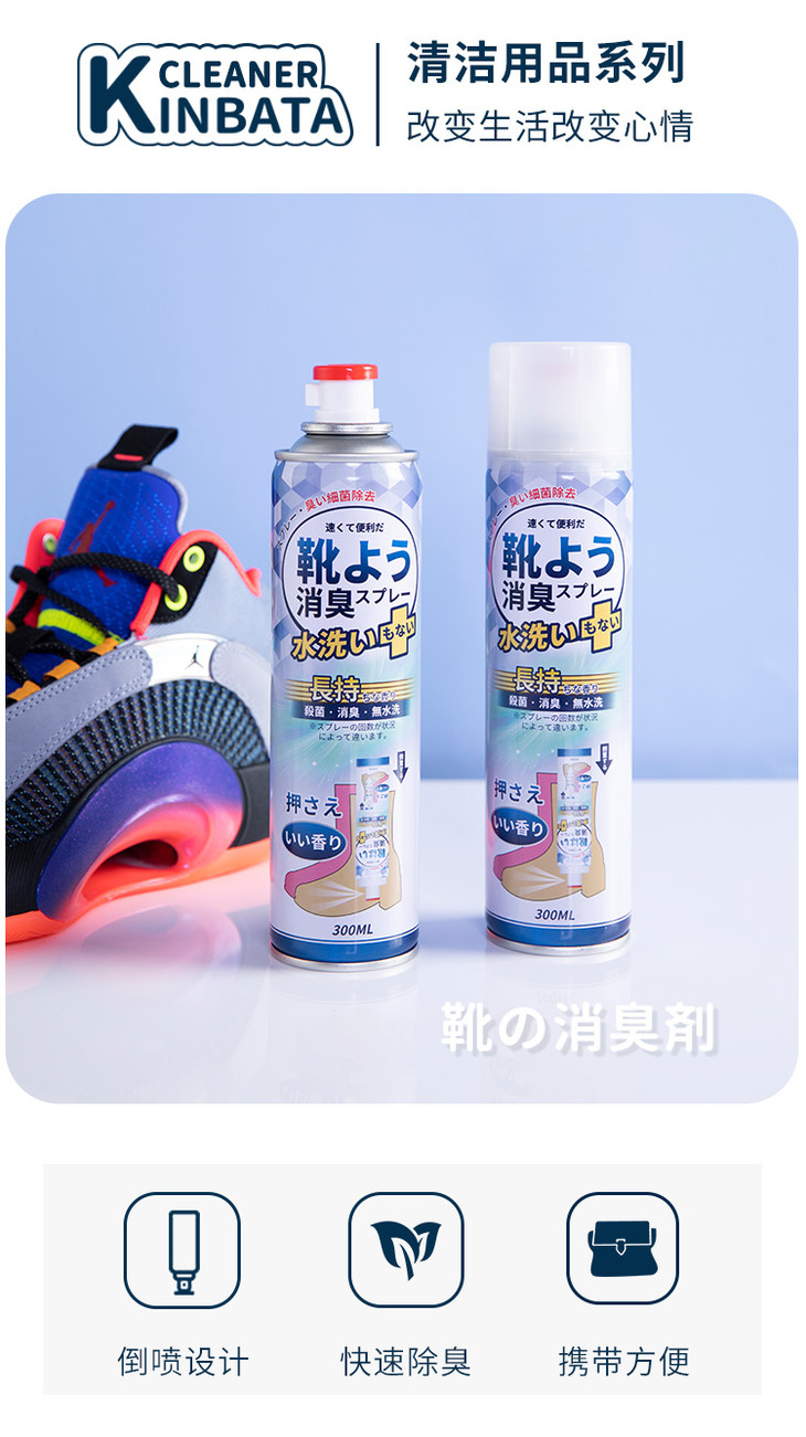 【拒绝脚臭】日本kinbata鞋袜除臭剂喷雾 创新倒喷设计 方便实用 拒绝鞋袜脚臭300ml/瓶
