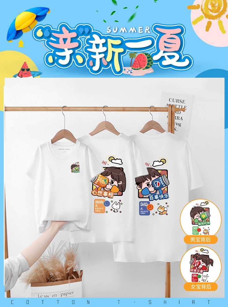 炸街亲子装夏装纯棉短袖t恤一家三口四口2022年夏季新款潮母女装国庆清明出游