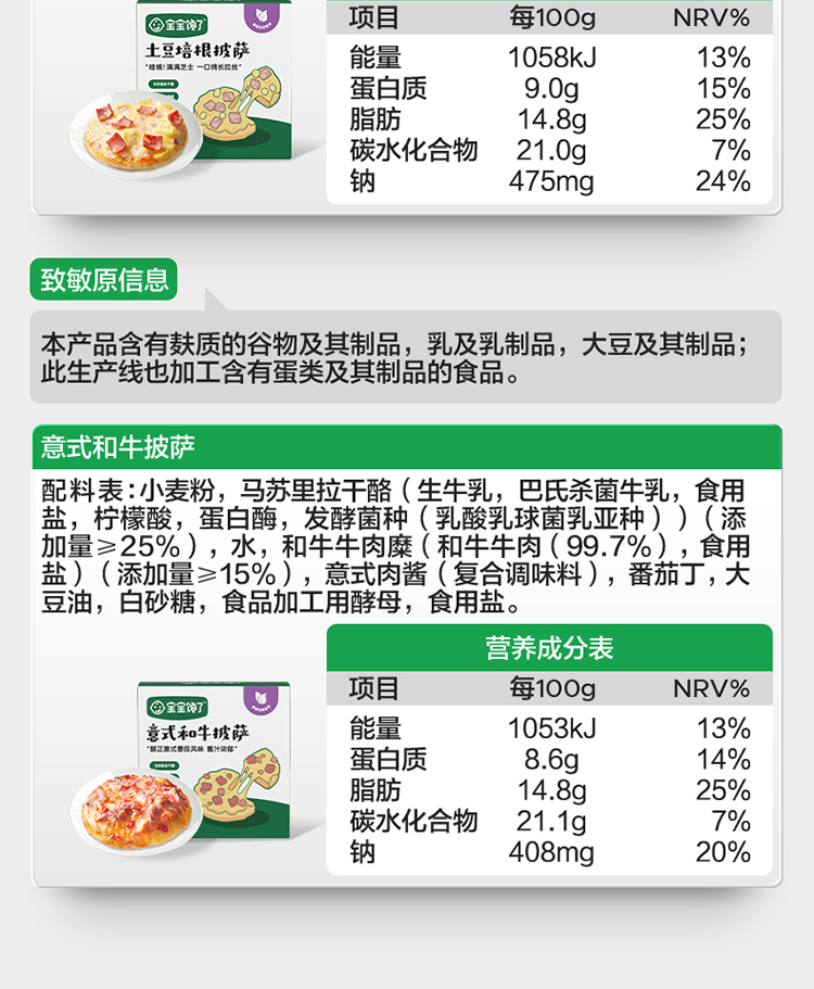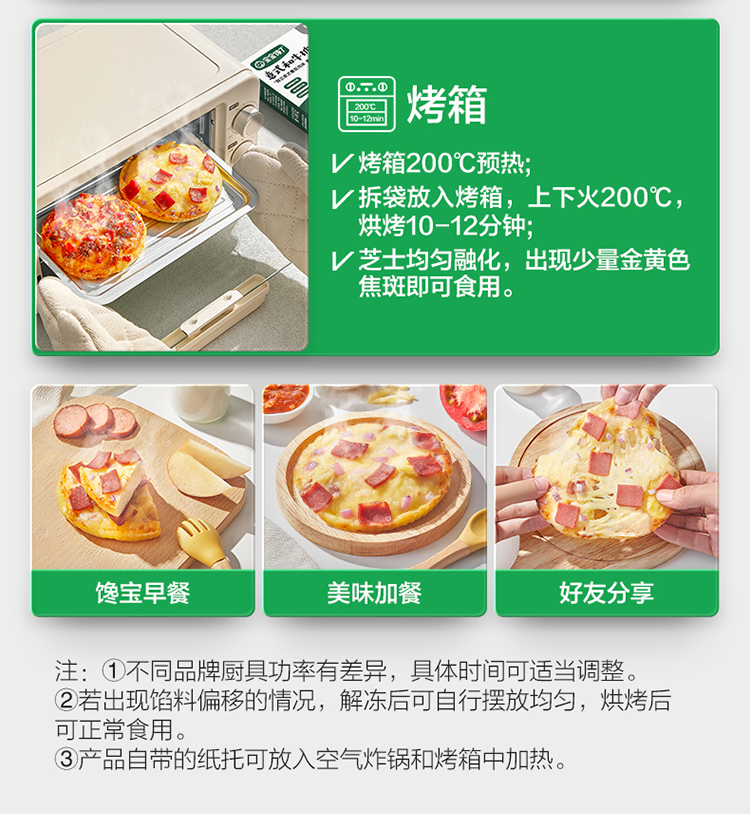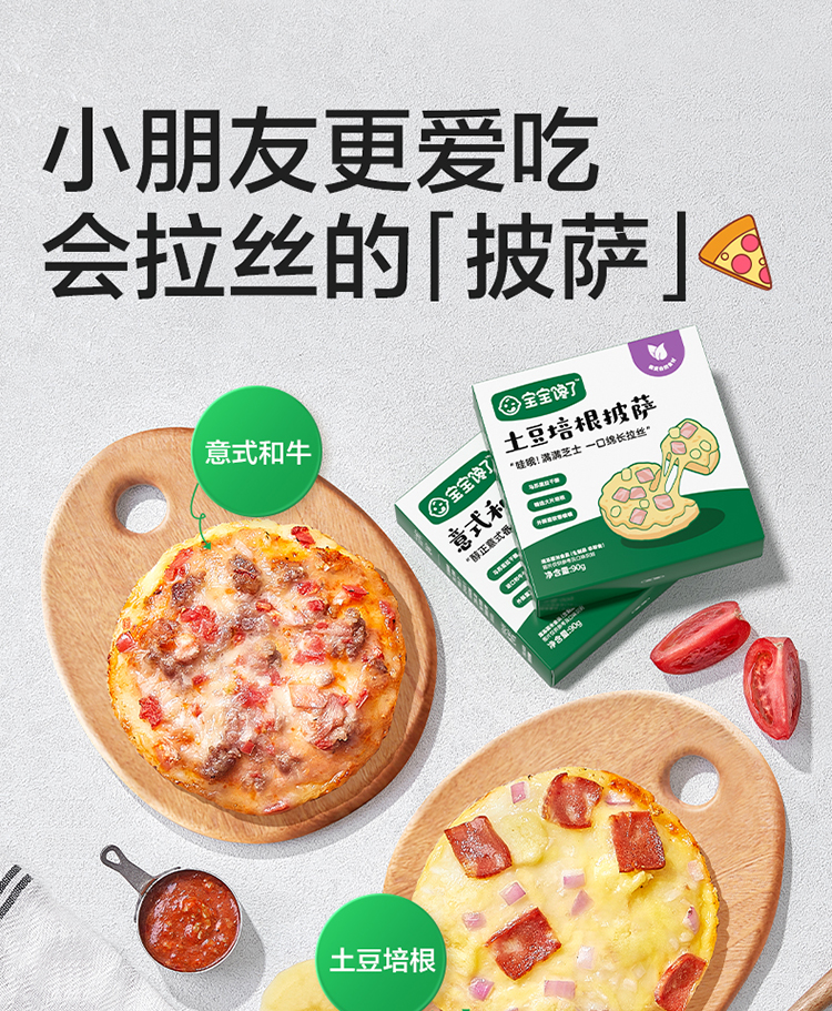 【宝宝馋了】儿童意式和牛培根披萨半成品加热即食,赠36月辅食食谱