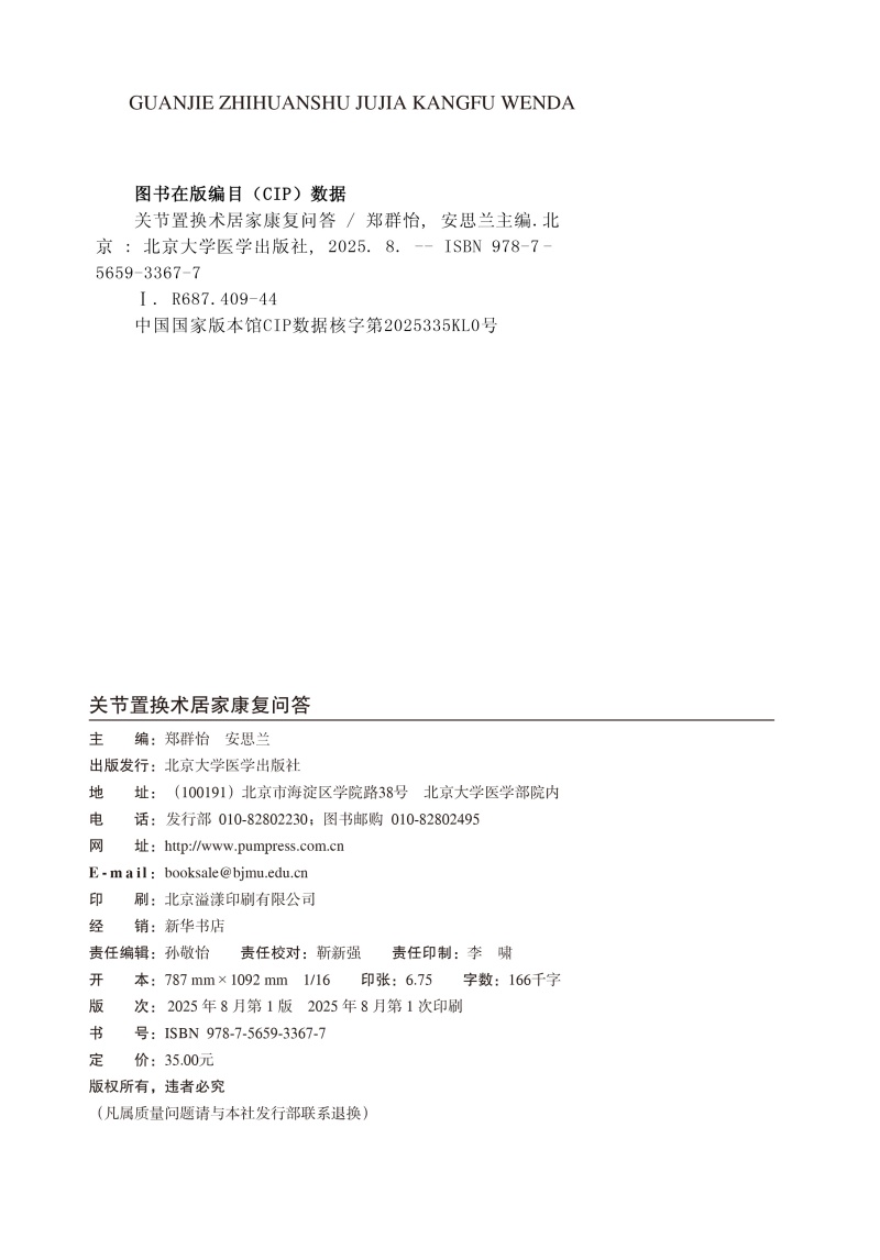 关节置换术居家康复问答 守护健康—北大护理健康科普系列丛书 郑群怡 安思兰 围绕关节置换术的居家康复等问题北京大学医学出版社