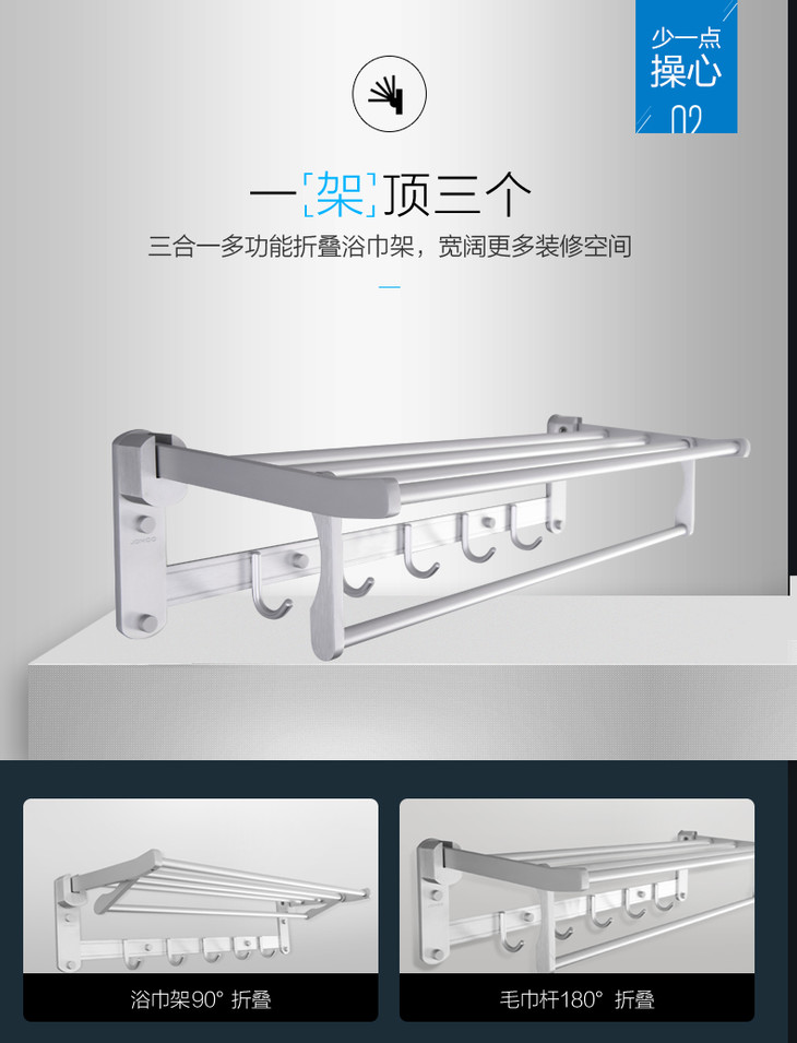 九牧卫浴太空铝折叠浴巾架卫生间毛巾架置物架浴室五金挂件936011