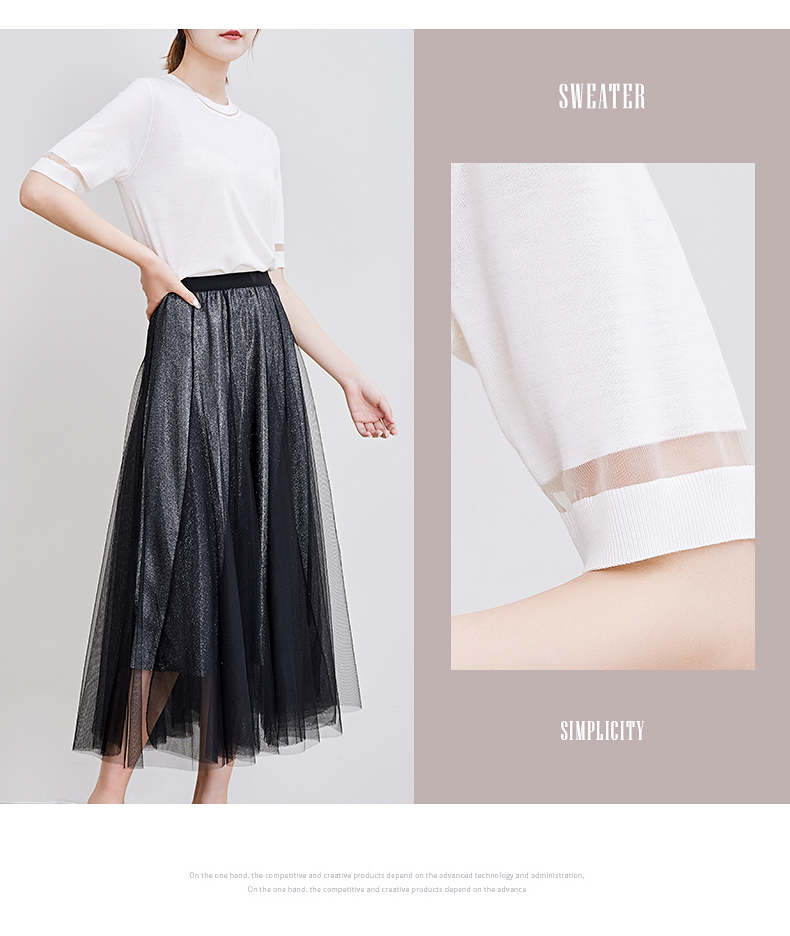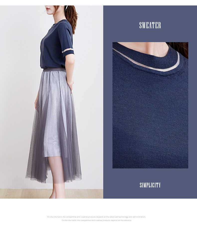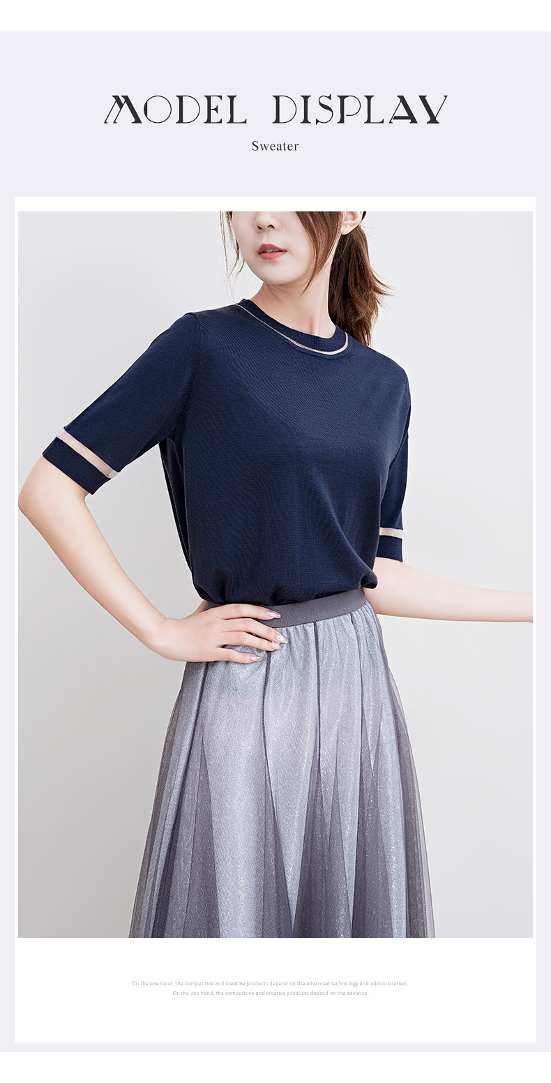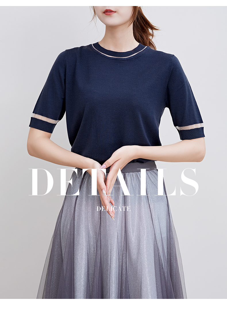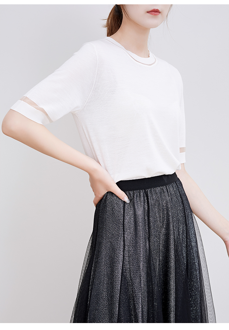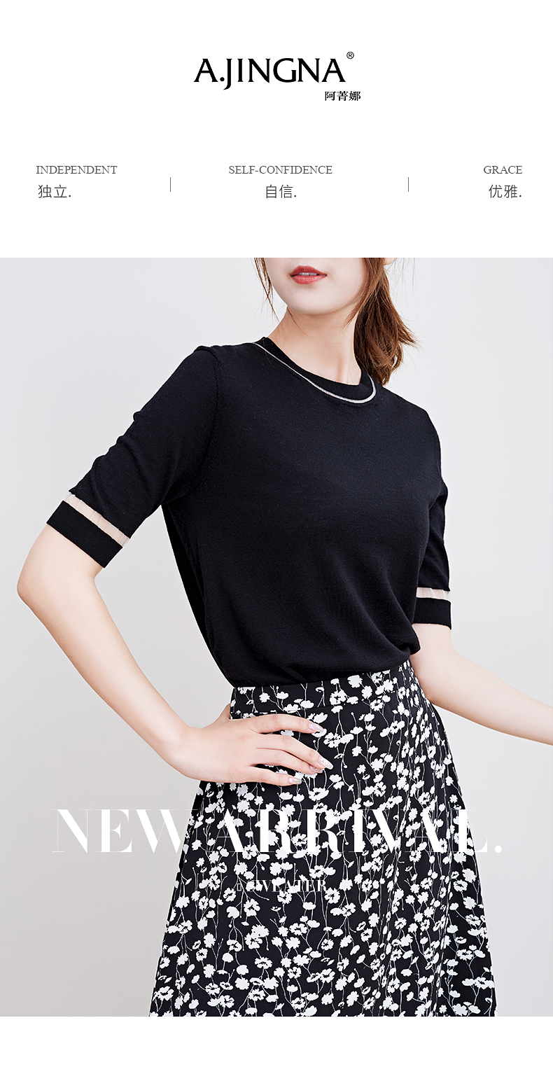【特价不退换】阿菁娜夏季新款精纺丝羊毛短袖圆领针织女T恤F26C301069(微瑕疵)