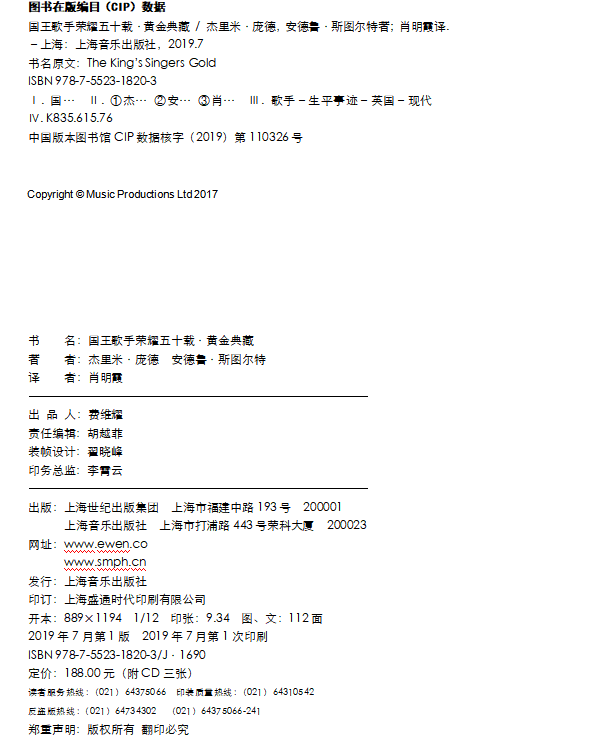 非常高兴这本书能够在2019年出版,此时距离国王歌手1968年5月首次公演已有五十多年。不过,那六位来自剑桥大学国王学院的歌手们当时并没有意识到,其实他们所做的一切已经在声乐世界中留下了一个永恒的印记。对于我们这些在五十多年间追随原始成员加入进来的歌手而言,能够继承这份高品质的、真正全球化的音乐创作的宝藏,实在荣幸之至。加入国王歌手就是加入一个家庭,而前任团员、现任团员、管理团队以及世界各地热情的观众们,也都证明了这一切的成就绝非个人所能及。