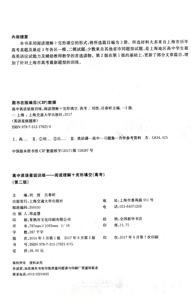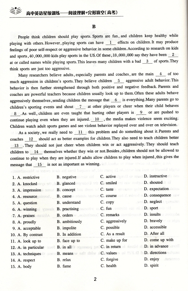 高中英语星级训练 阅读理解+完形填空 高考 第2版