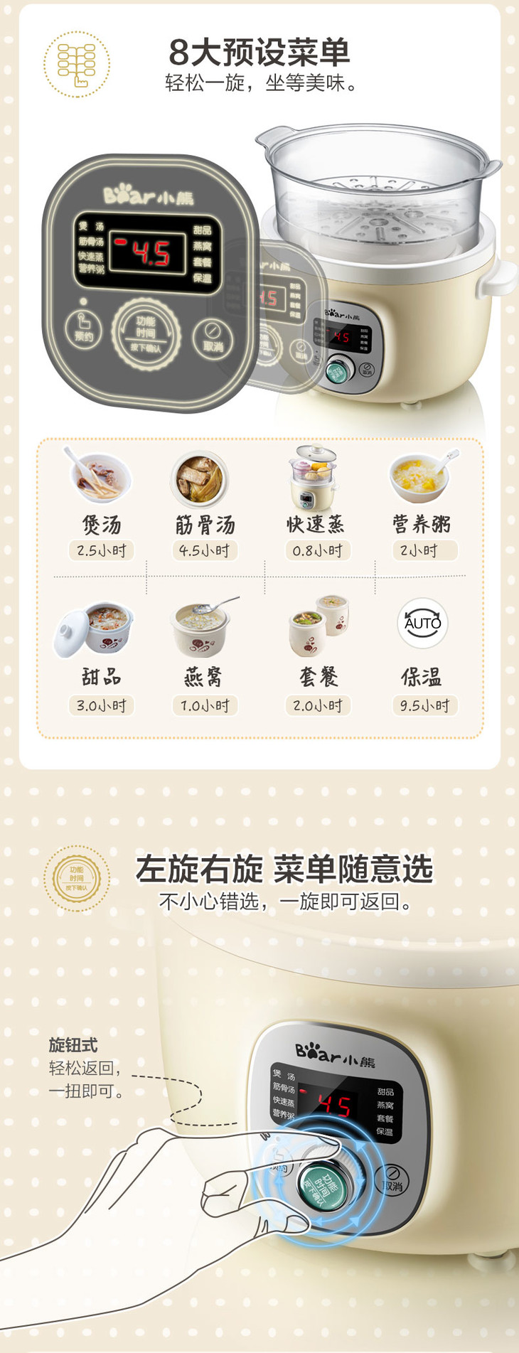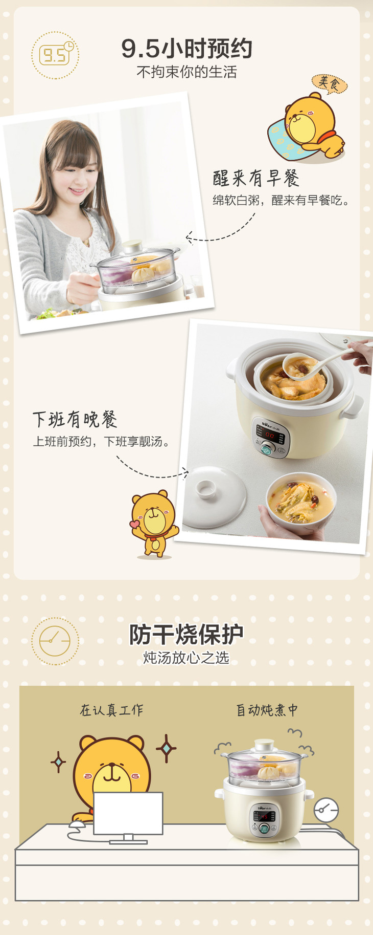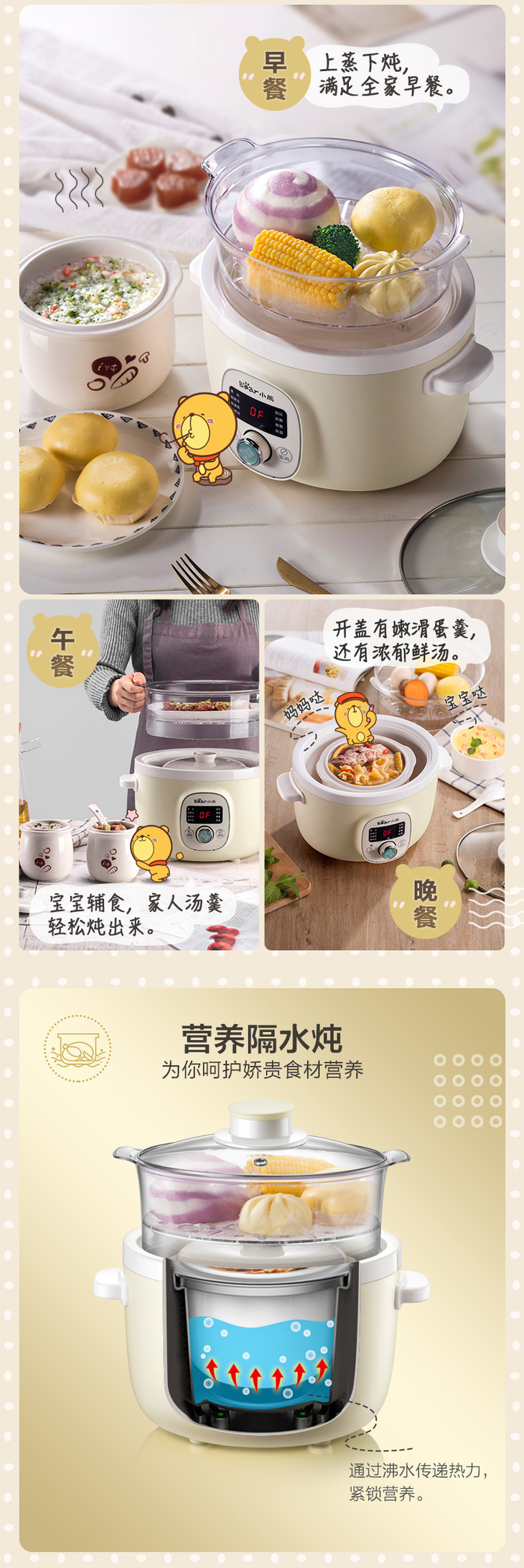 Bear/小熊 DDZ-B18N5电炖锅家用自动多能蒸锅煲汤煮粥小炖锅1-3人