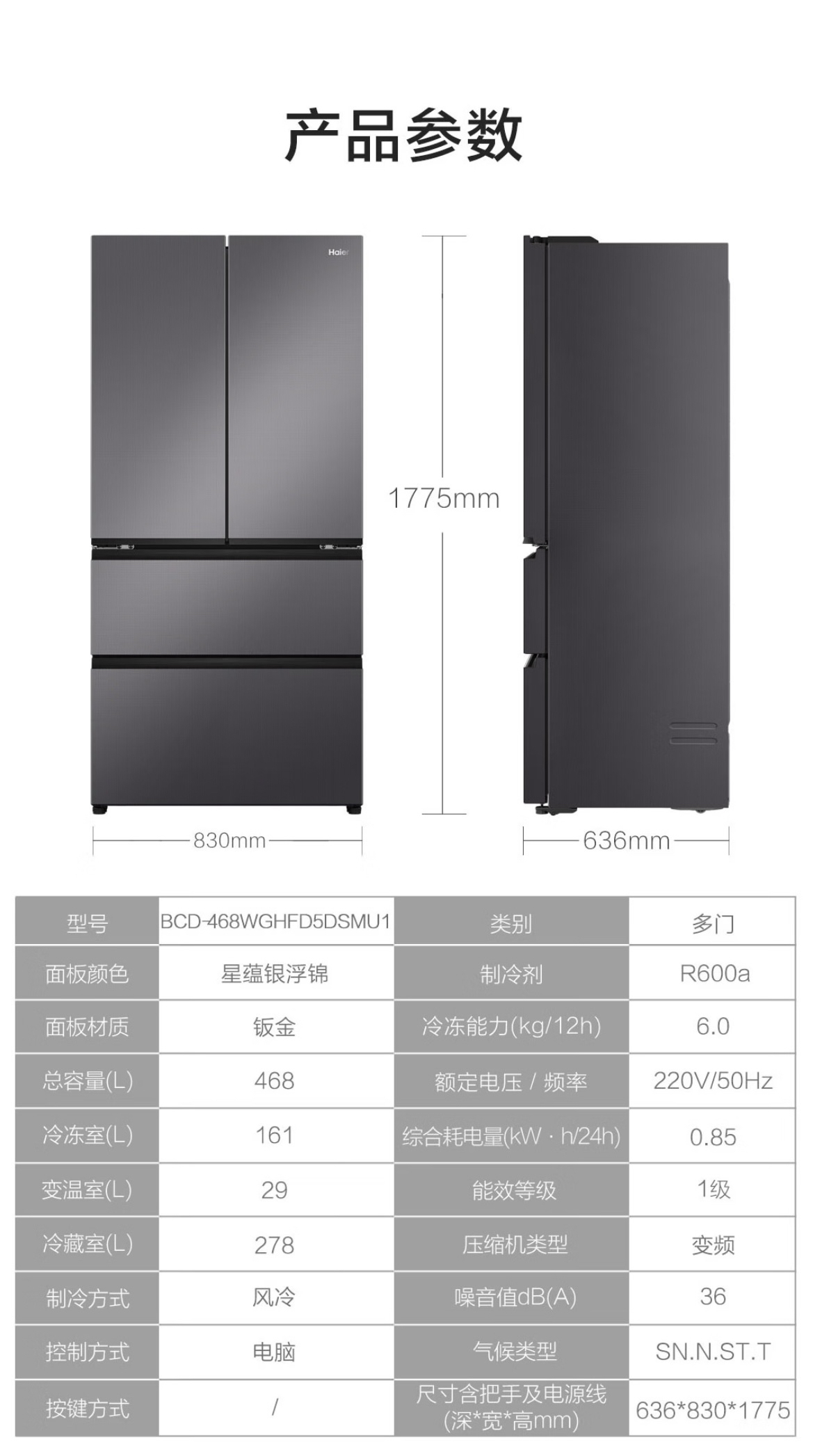 海尔(Haier)冰箱BCD-468WGHFD5DSMU1