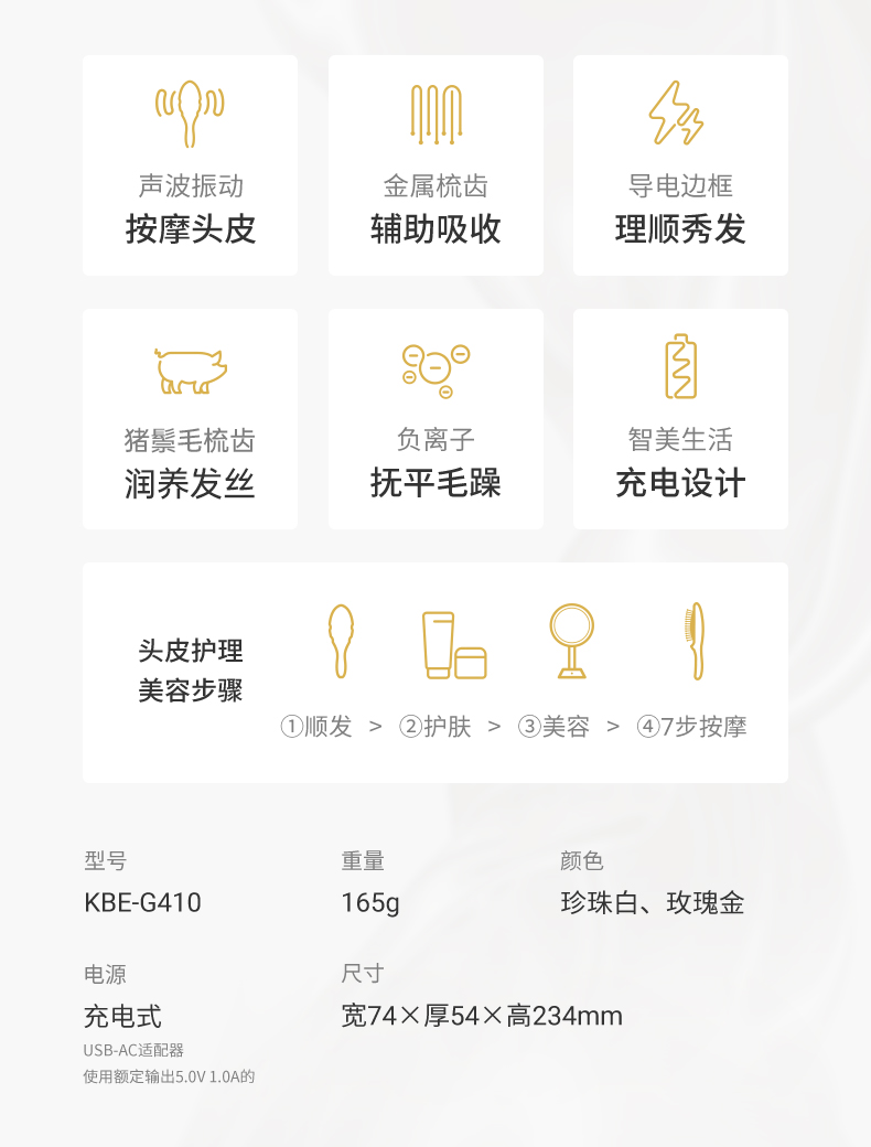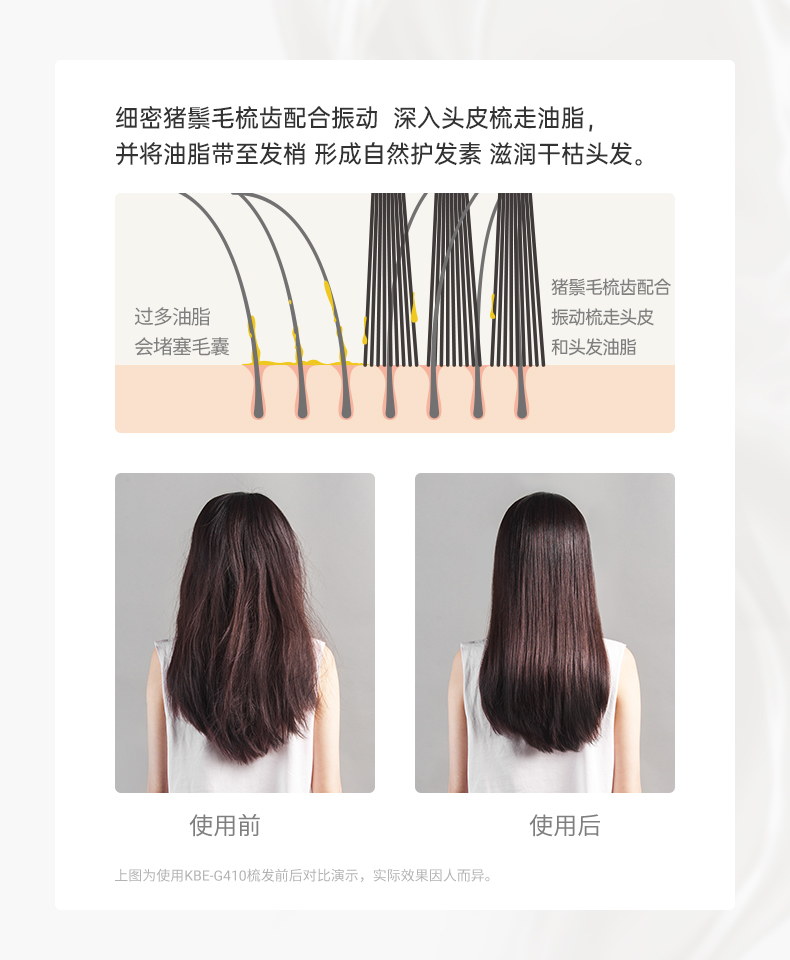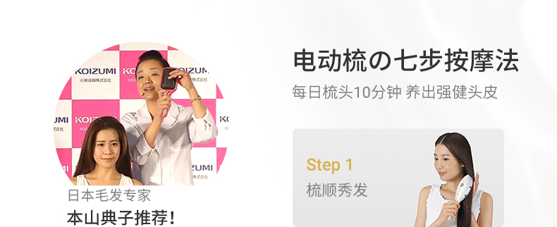 日本小泉成器KOIZUMI猪鬃毛梳豚毛负离子电动梳按摩气垫梳子女(有赠送刷子)