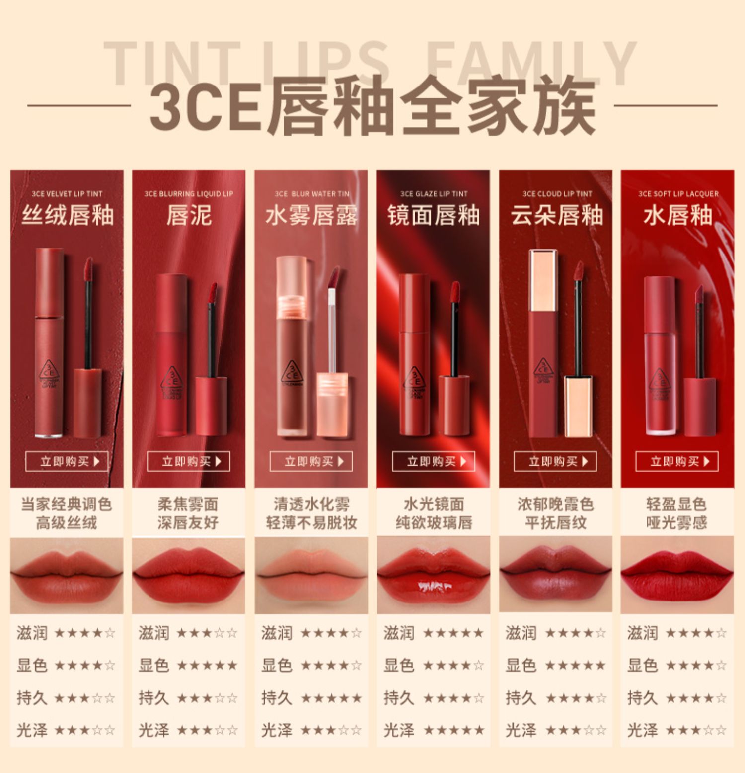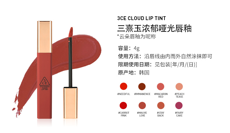 【中欧班列精选】3CE三熹玉云朵唇釉 4g/支