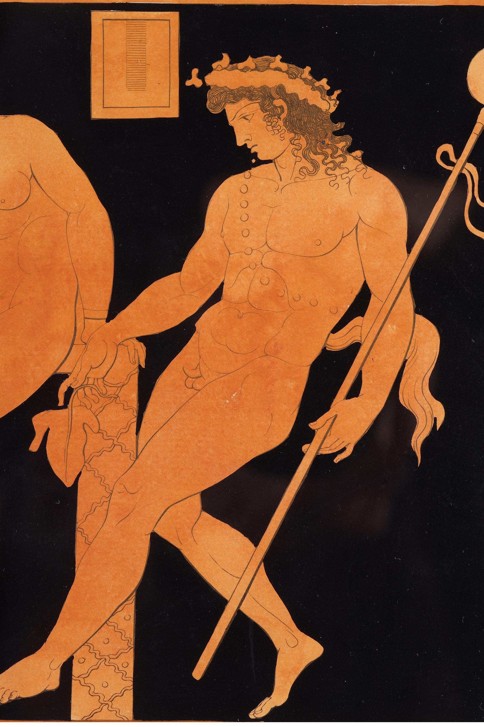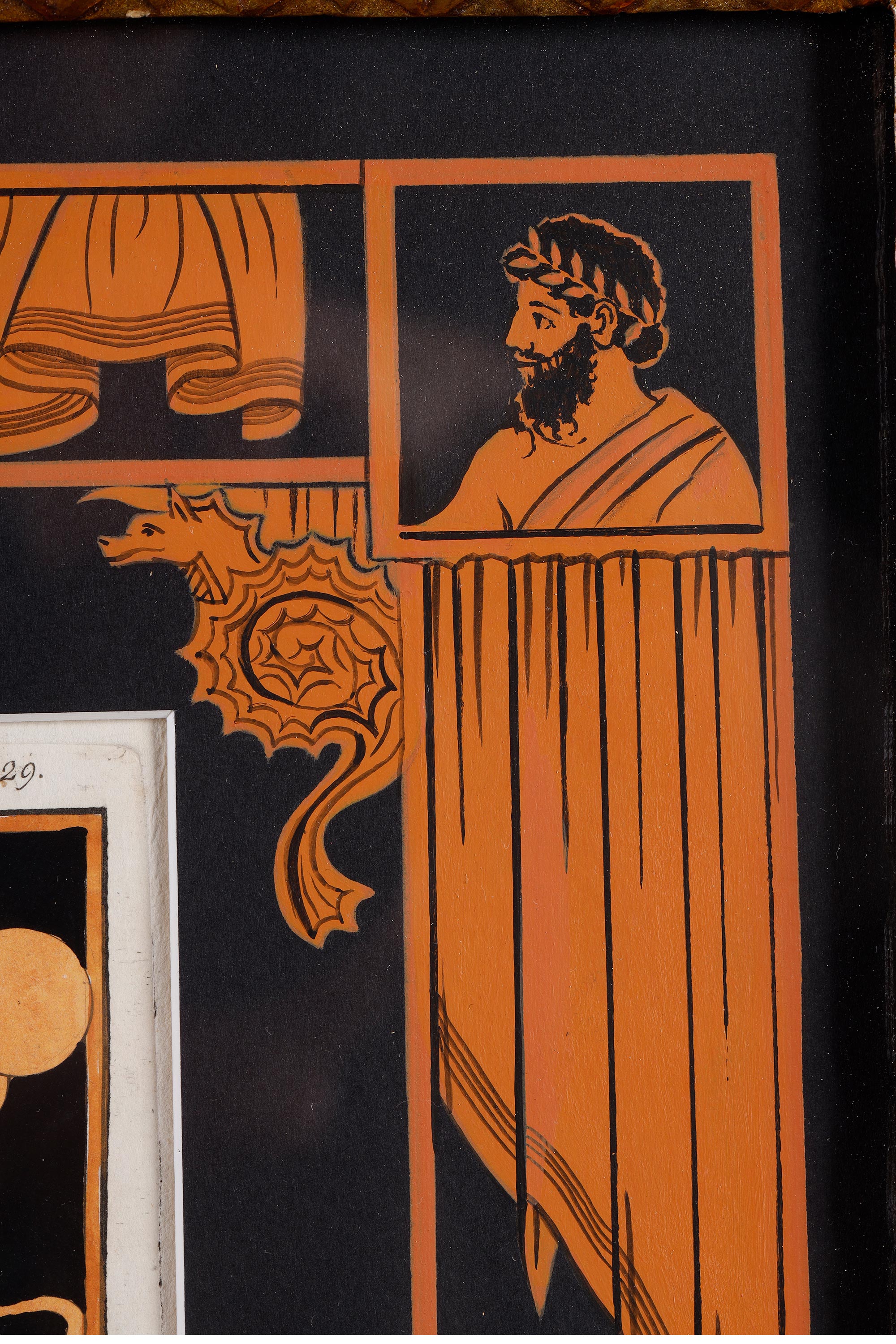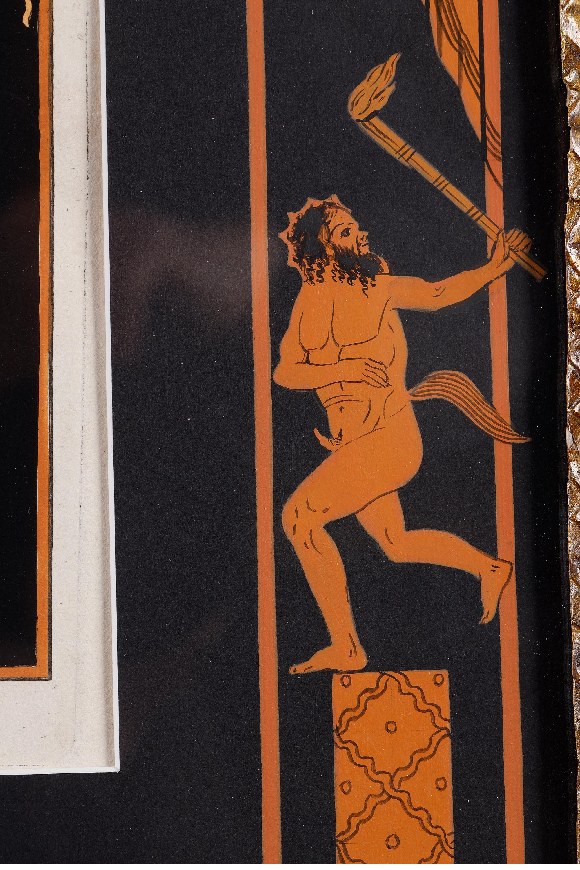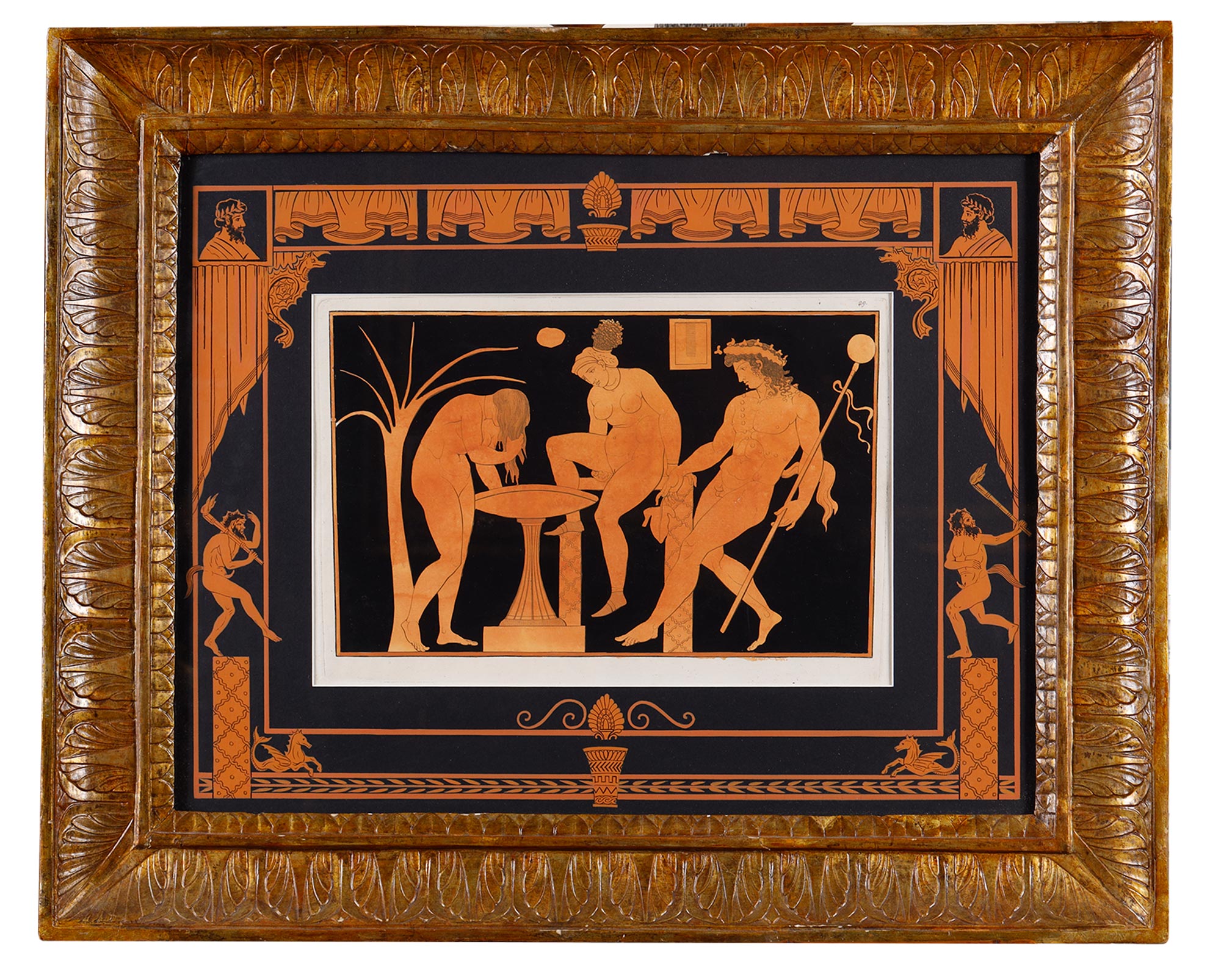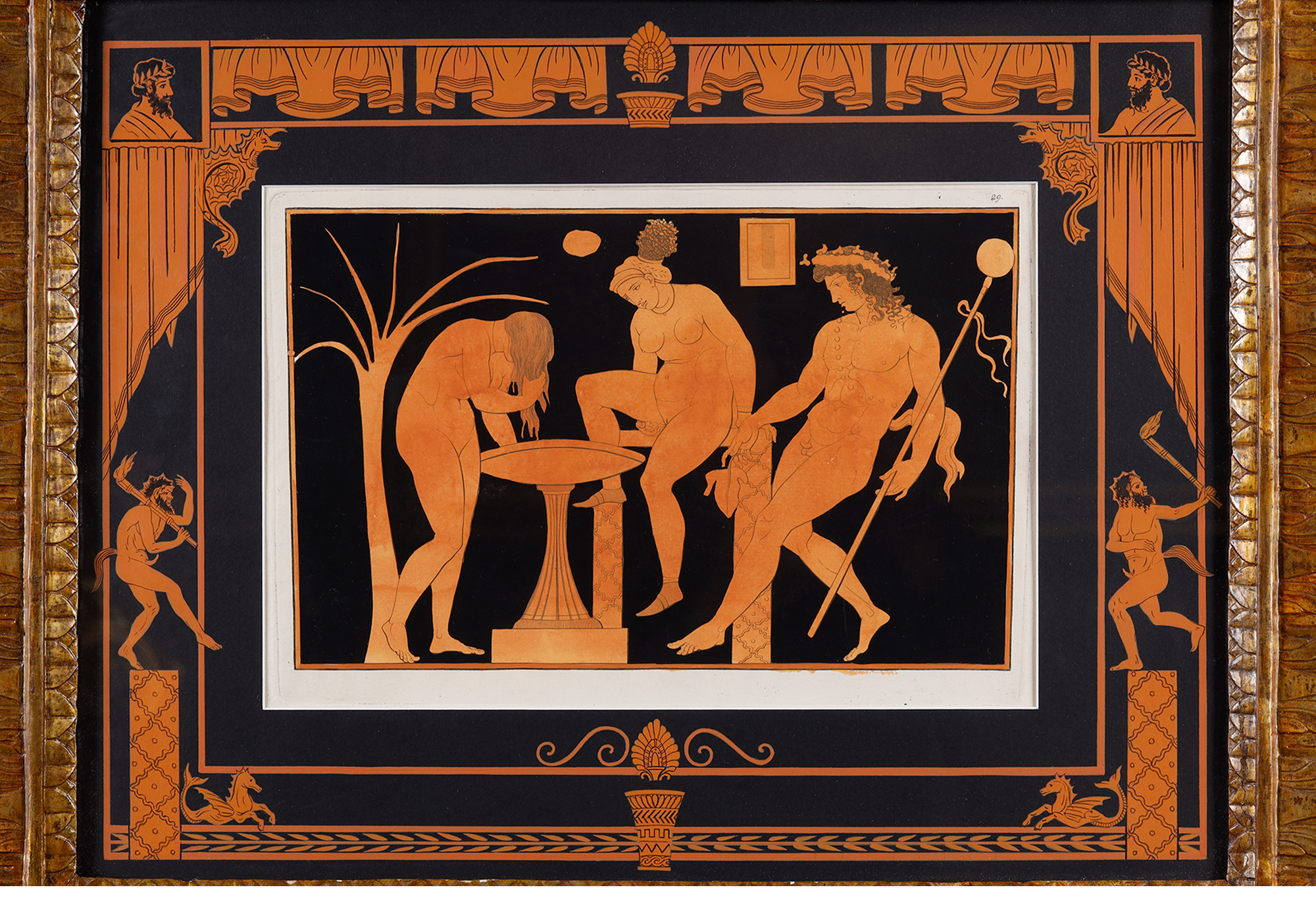独角鹿西洋古董 18世纪德国画家约翰·海因里希·威廉·蒂施贝创作古典神话主题水彩蚀刻版画《两位女子在萨堤尔注视下沐浴》