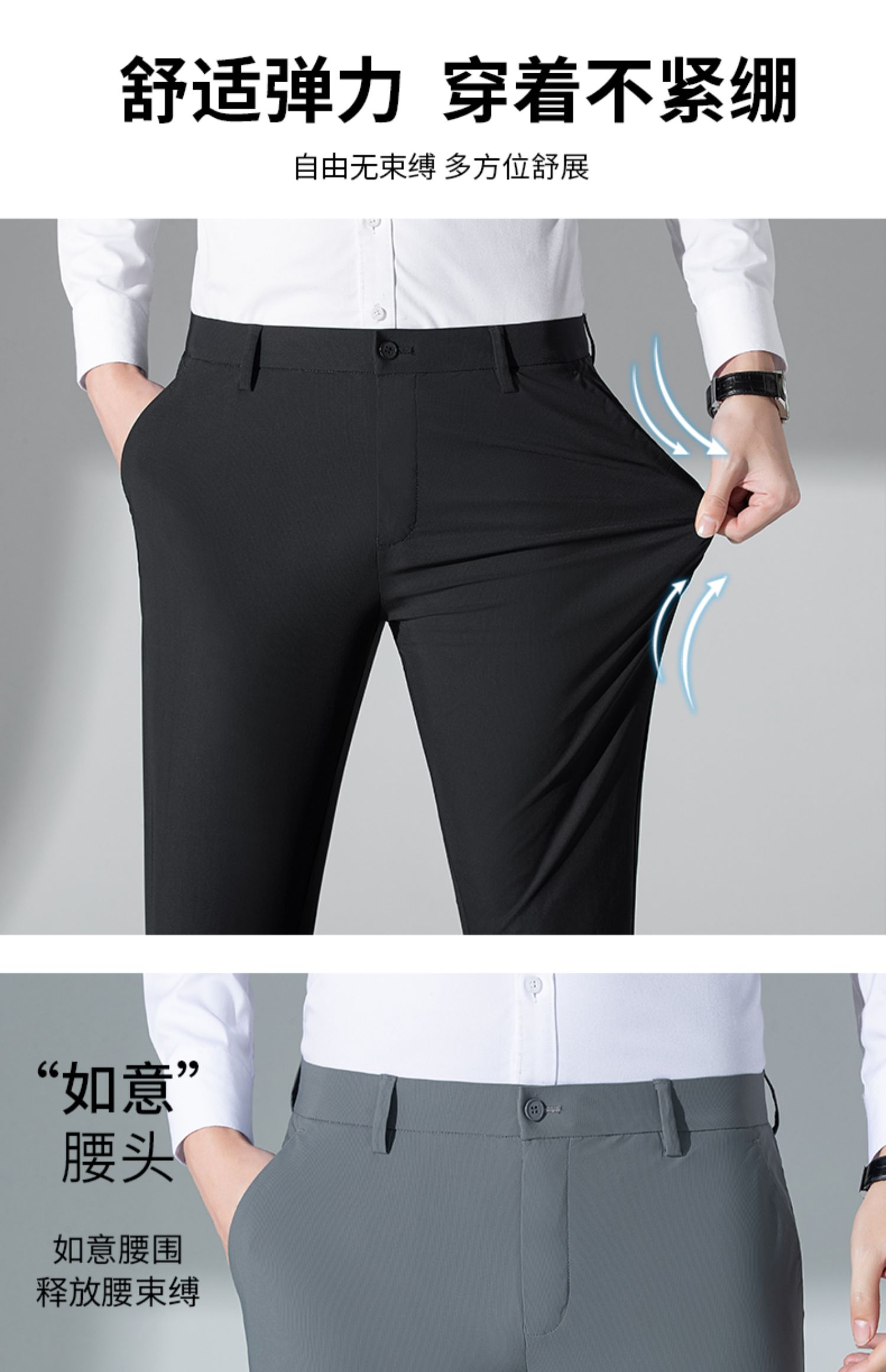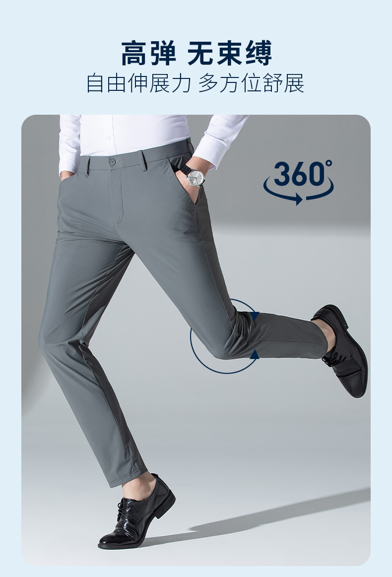 圣得西四面弹易打理休闲裤夏季商务修身直筒凉感裤子男长裤薄2322913001