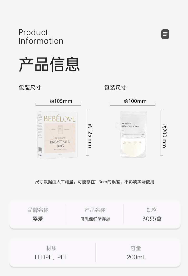 【积分兑换】婴爱母乳保鲜储奶袋 200ml