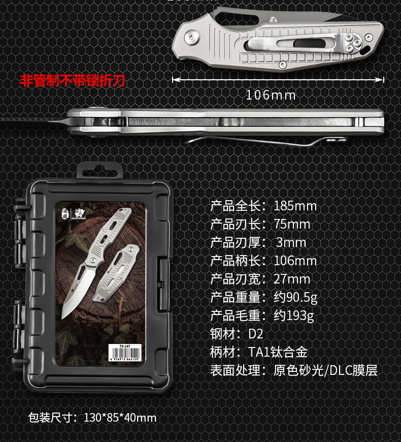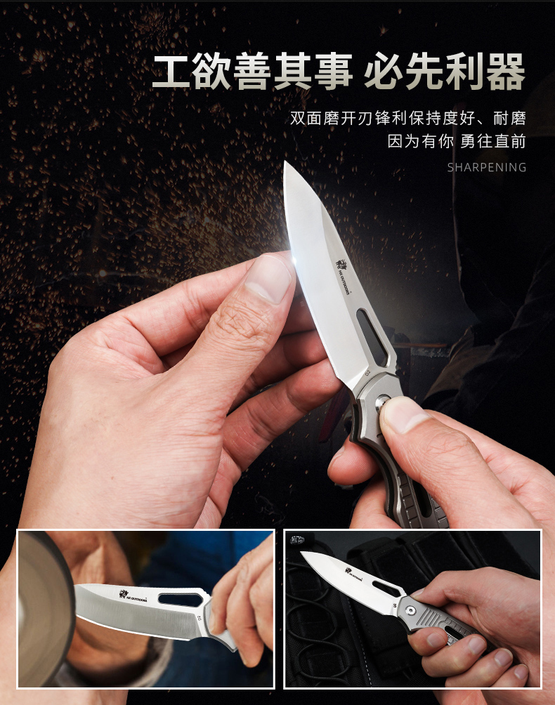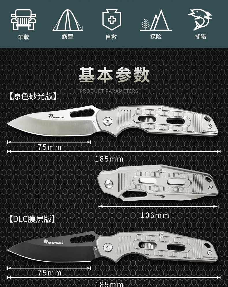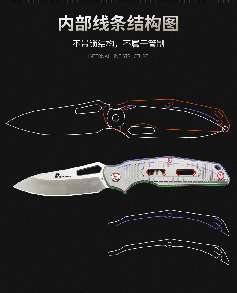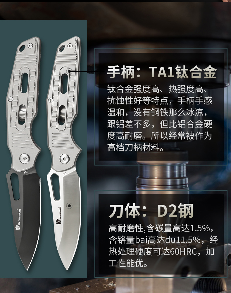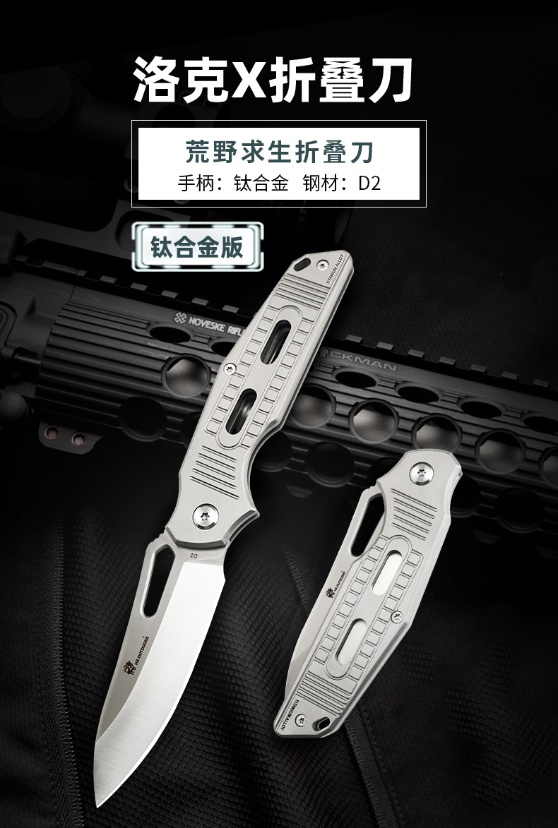 汉道【洛克X折叠刀】D2钢高硬度户外战术折叠刀钛合金手柄求生折刀