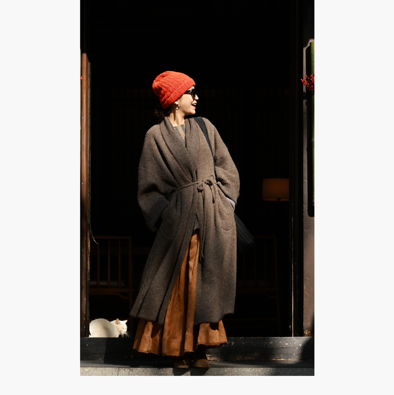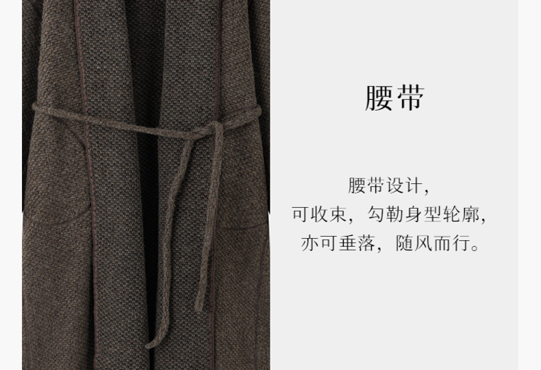 Petit Schan小闪 CLO#1019 Keep it low-key 无需声张 进口美利奴羊毛混纺贝壳绣浴袍式腰带针织长大衣
