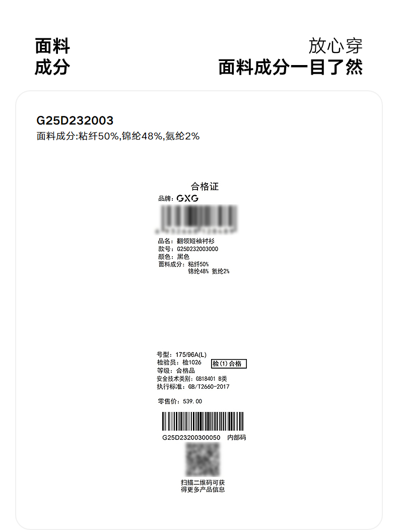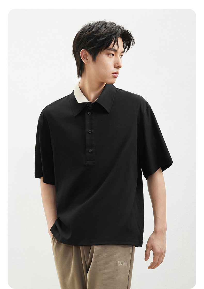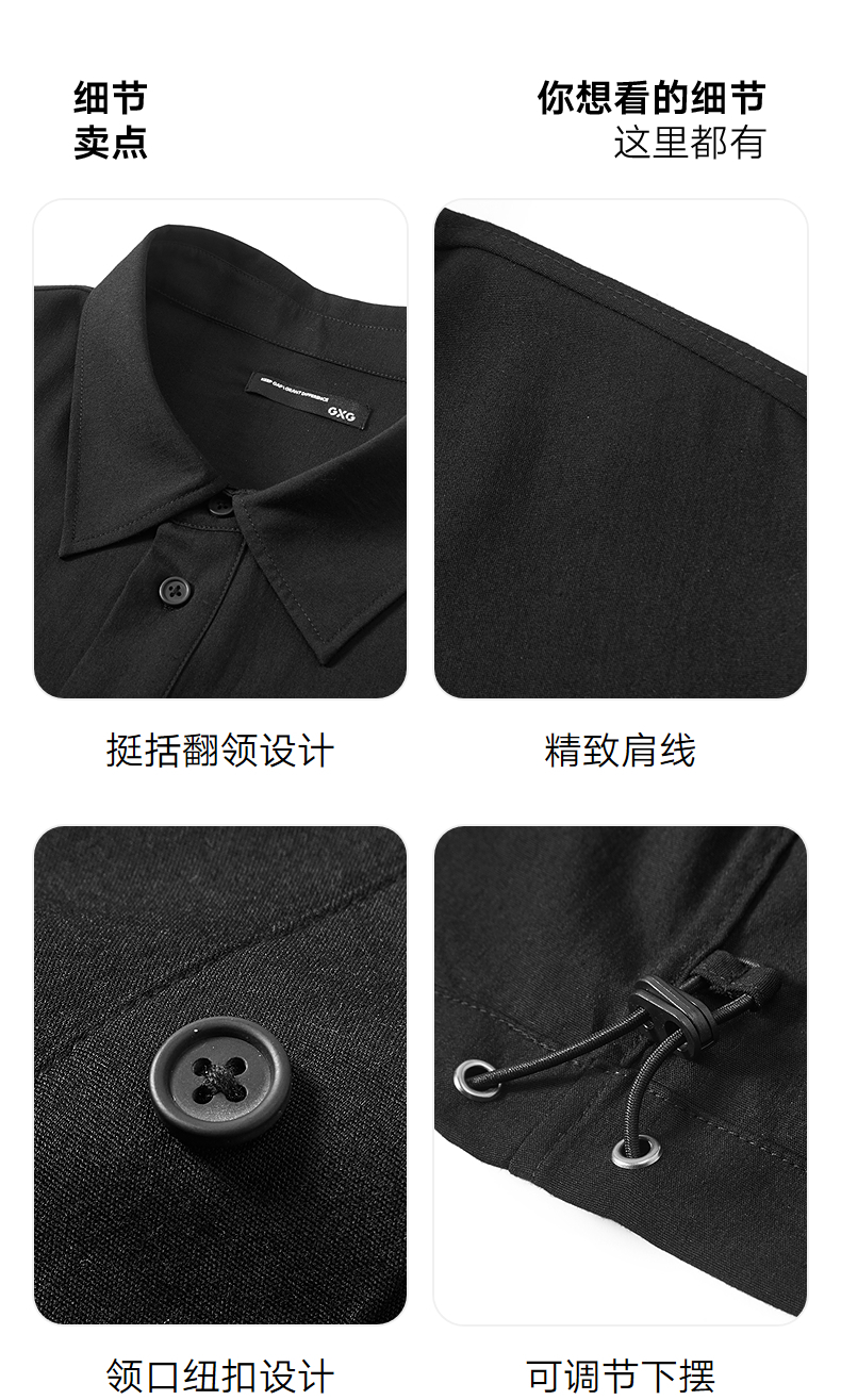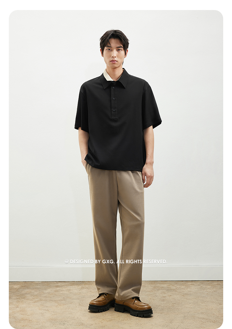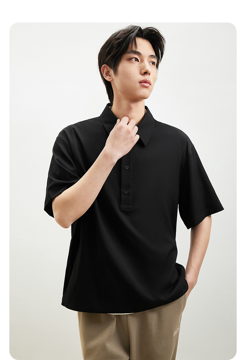 2025春夏热卖GXG男士衬衫黑色半纽扣套头宽松男士短袖衬衫