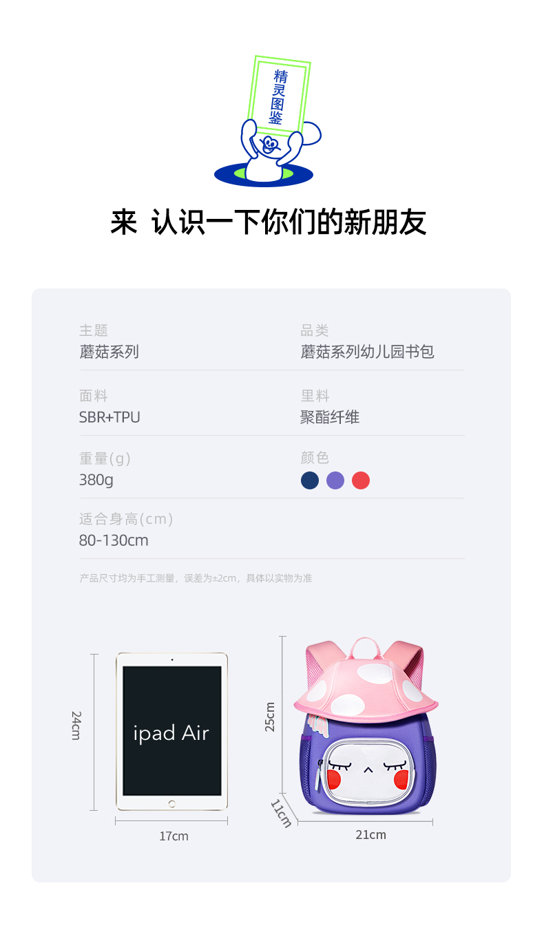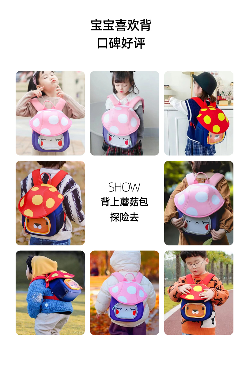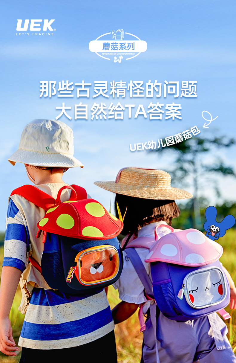 uek书包儿童幼儿园3-5岁可爱背包女孩男童小书包蘑菇包儿童双肩包