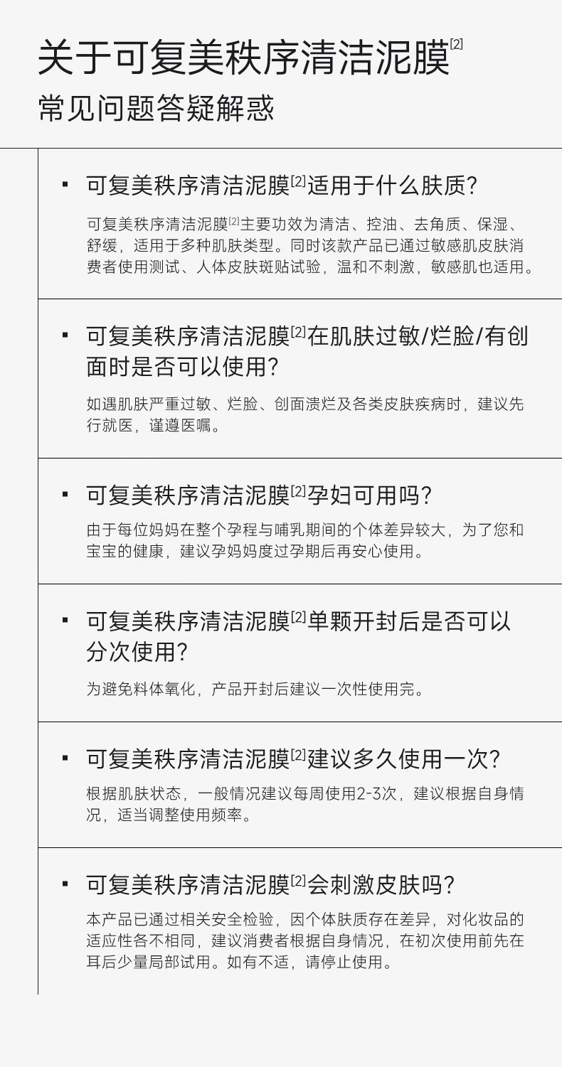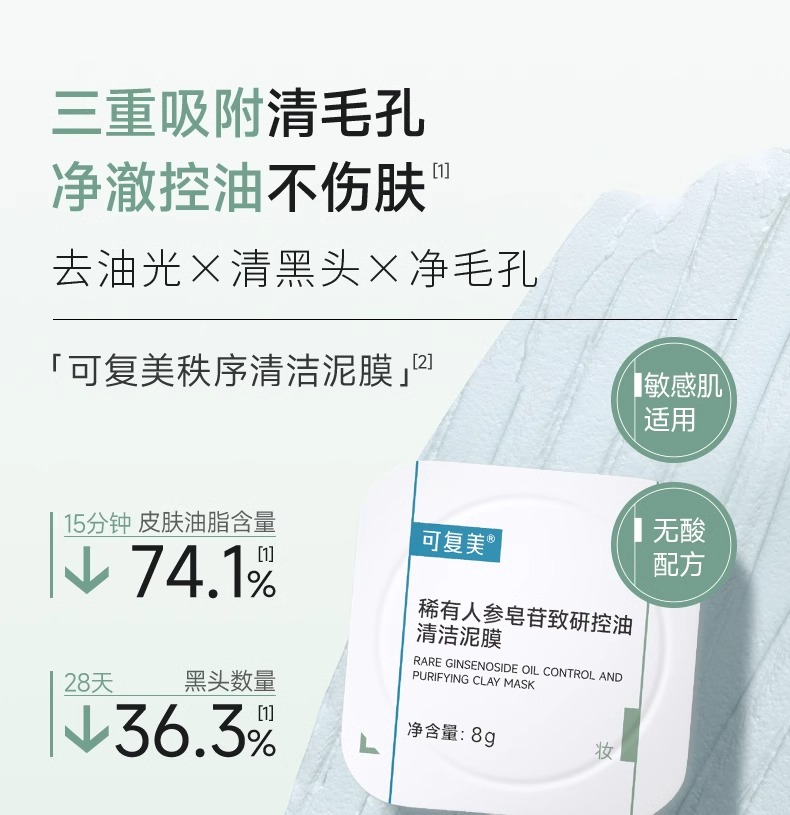 【可复美秩序清洁泥膜】可复美稀有人参皂苷致研控油清洁泥膜 8g*10颗/盒
