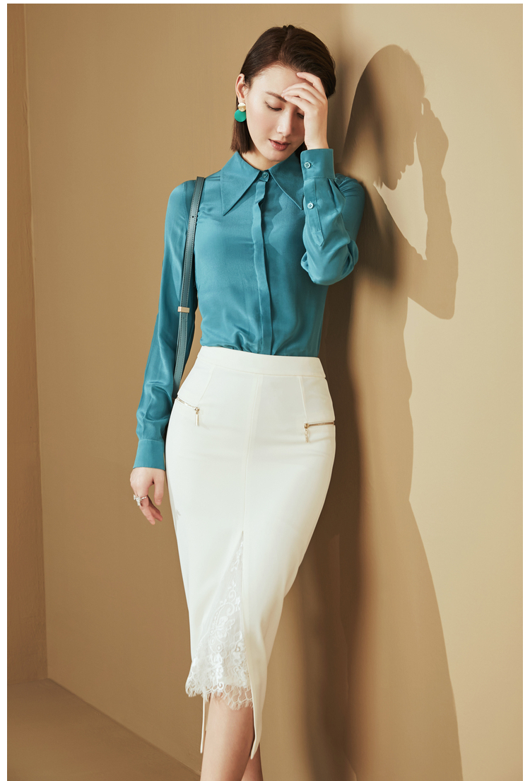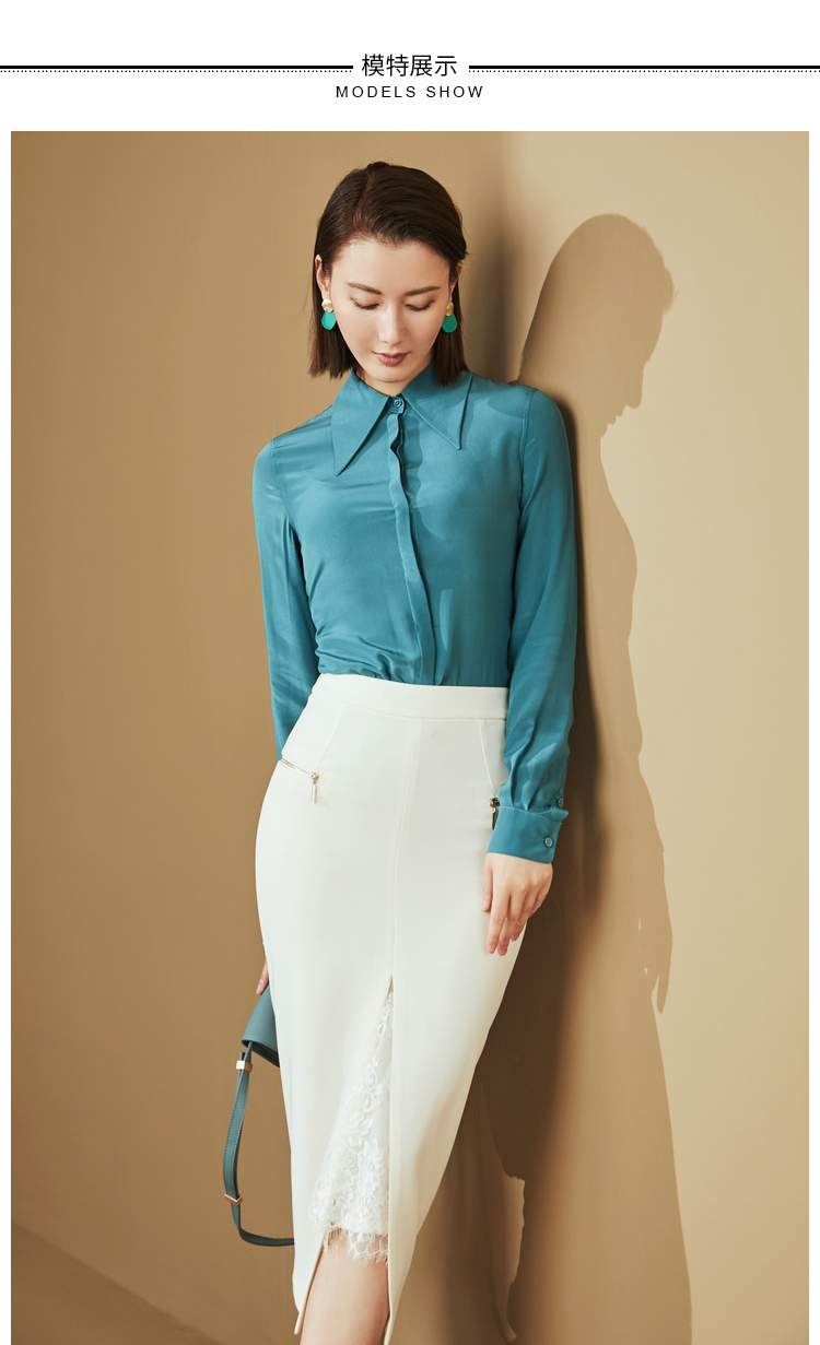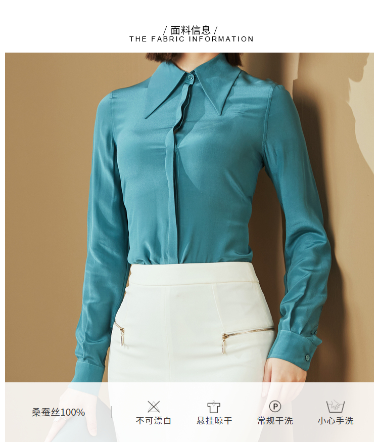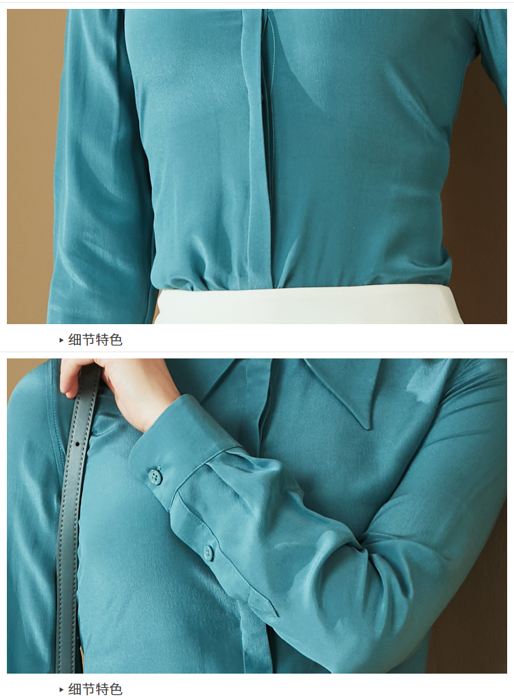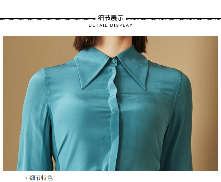 “雨后蓝”J20334624A 重磅真丝衬衫 高级的光泽感和丝滑的质感(四季可穿)颈袖添香