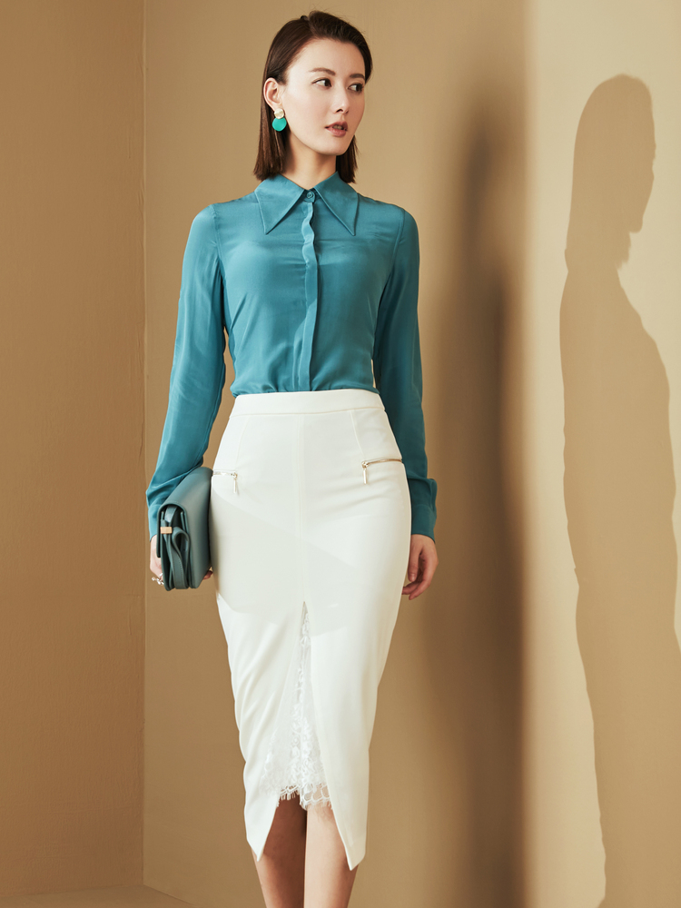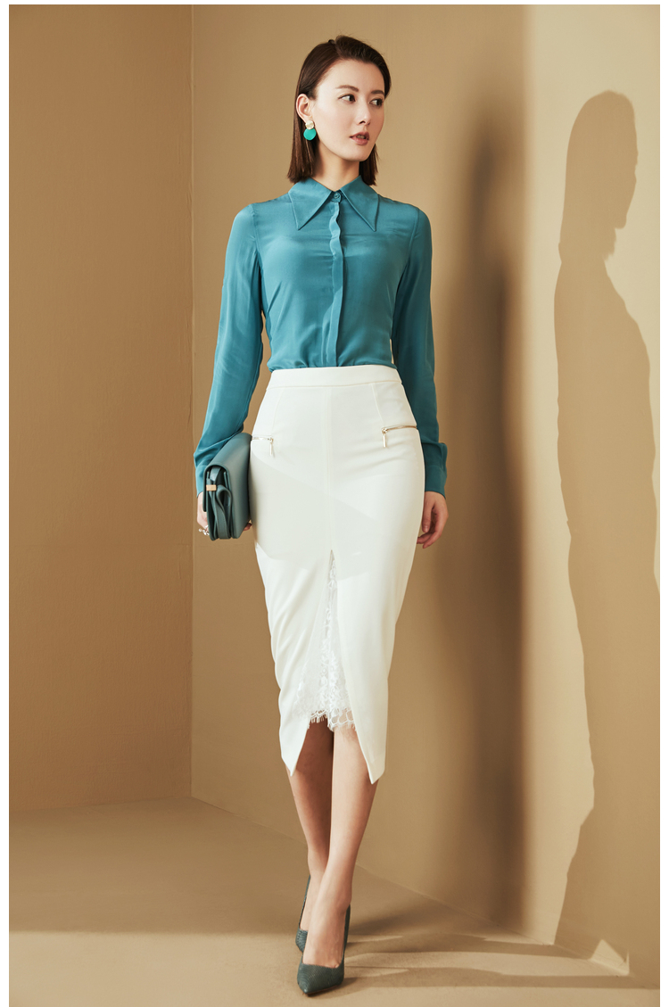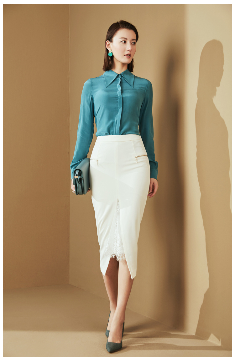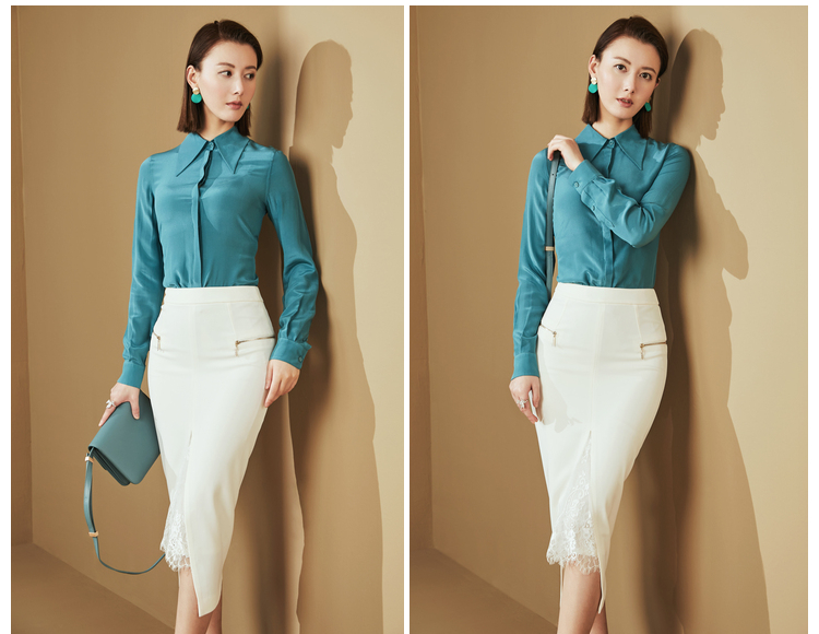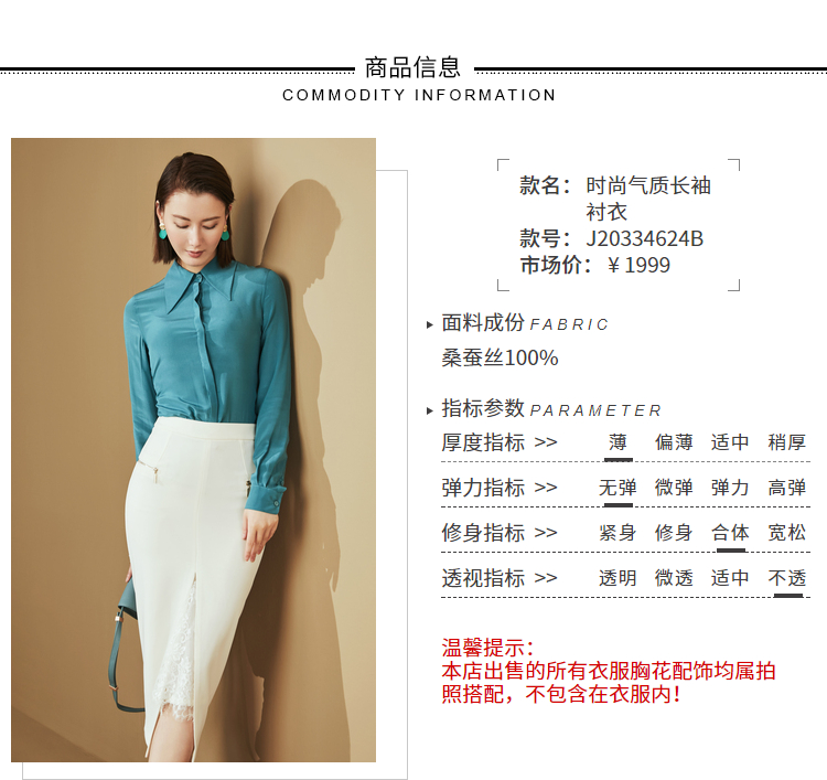 “雨后蓝”J20334624A 重磅真丝衬衫 高级的光泽感和丝滑的质感(四季可穿)颈袖添香