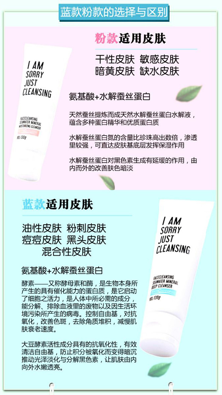 菲诗可伶蓝海矿物柔润/净彻洁面乳-粉色/蓝色