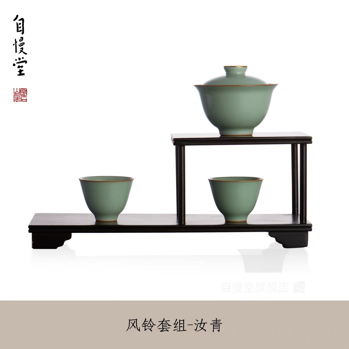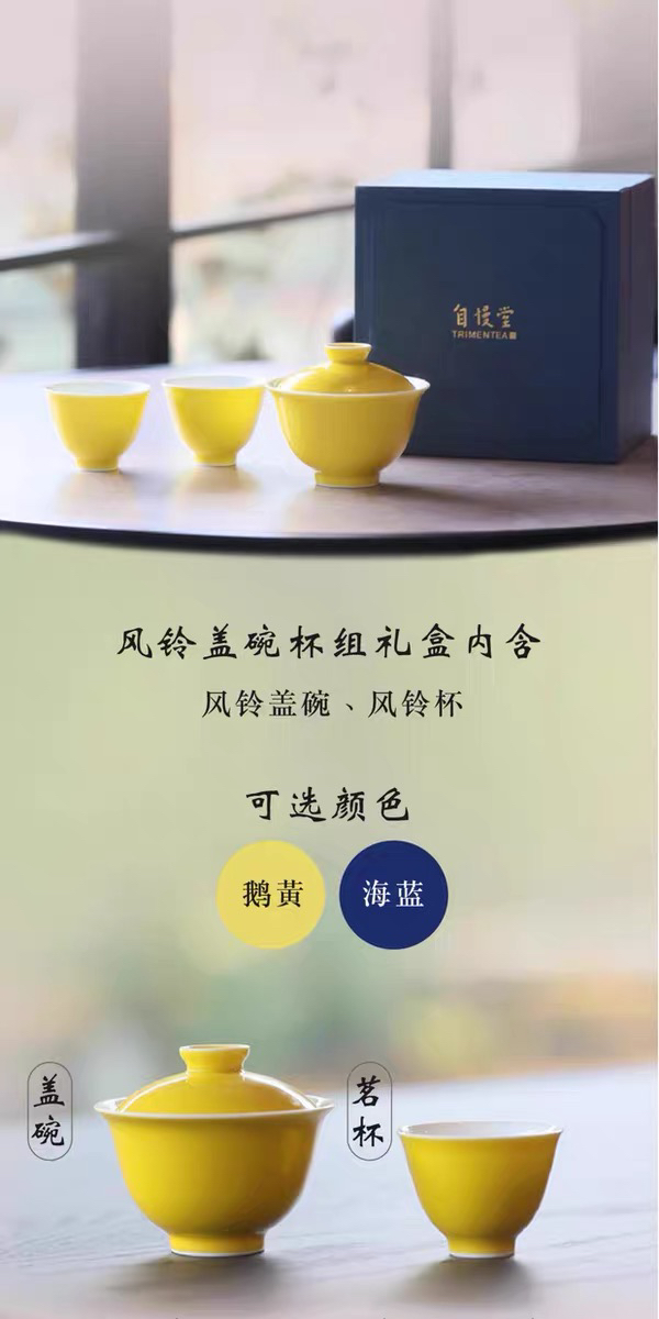 自慢堂旅行茶具风铃盖碗套组一盖二杯便携式茶器旅行露营泡茶神器