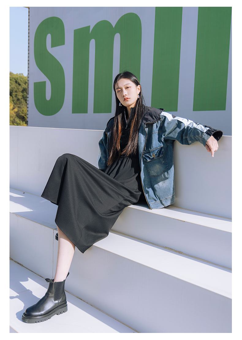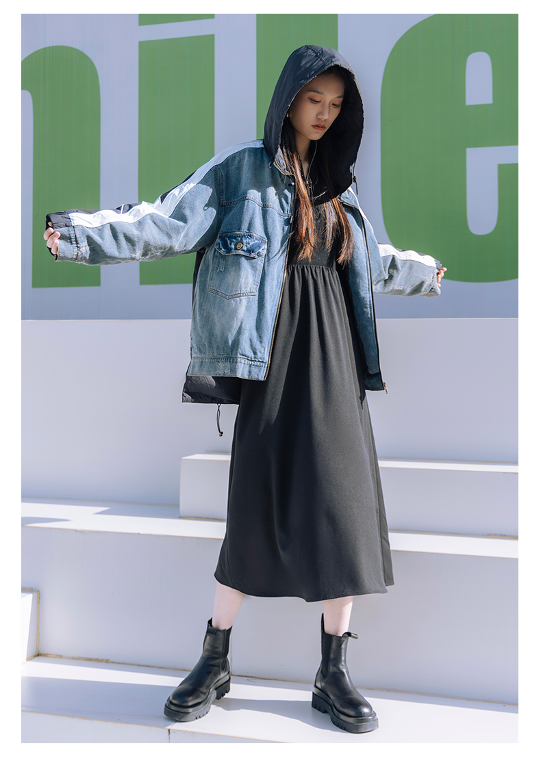 oldcolour冬季新品短款牛仔拼接休闲白鹅绒羽绒服女P440905A1