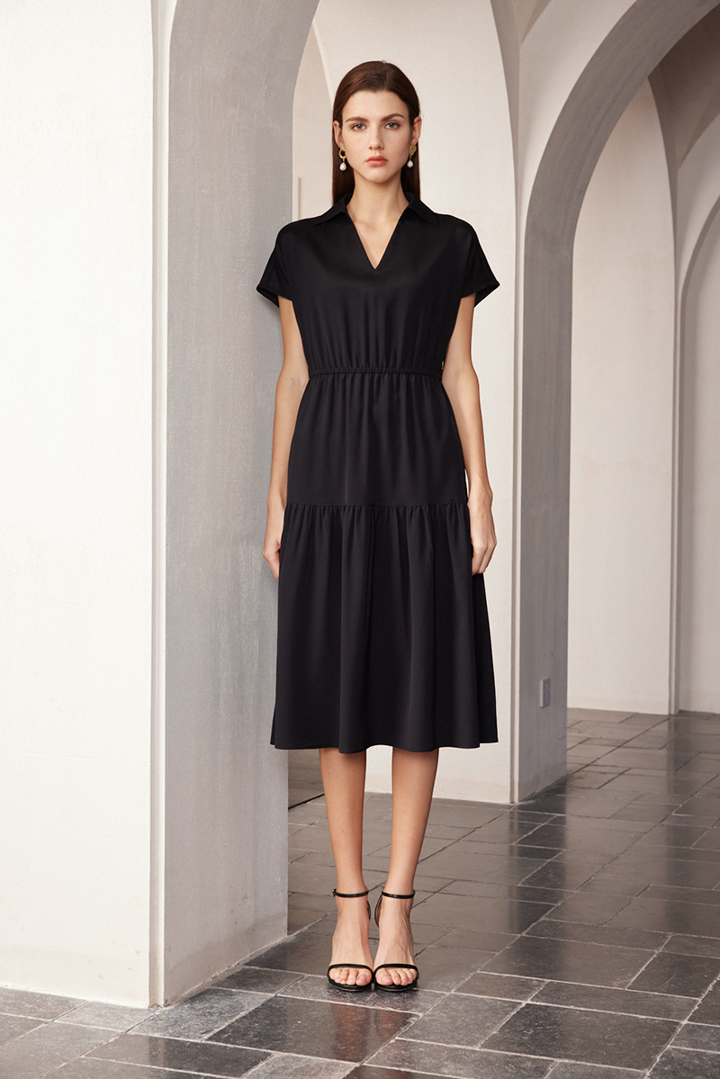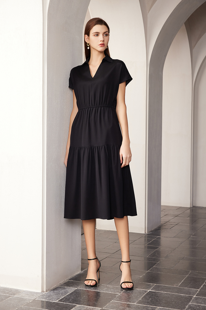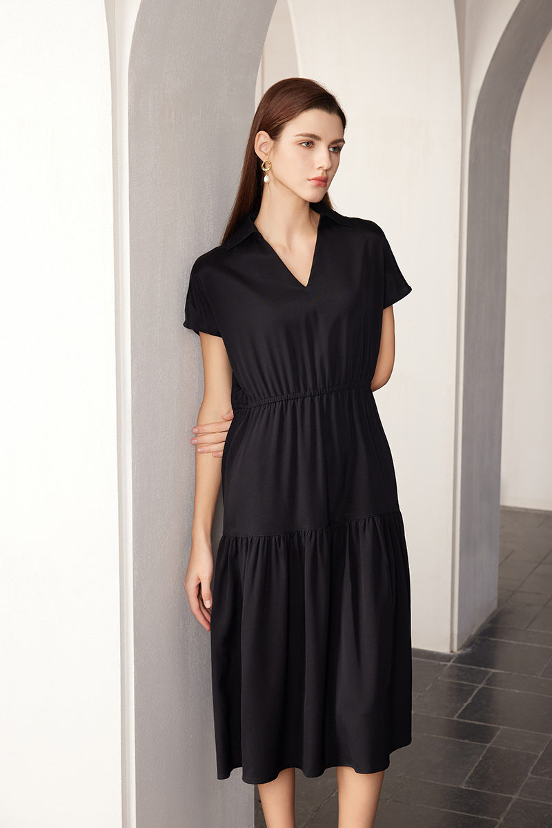 【V领真丝拼接褶皱裙】24年春夏女士新品桑蚕丝连衣裙时尚拼接真丝裙子