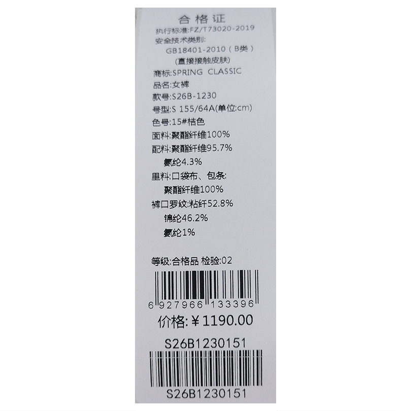 西贝伦长裤S26B1227