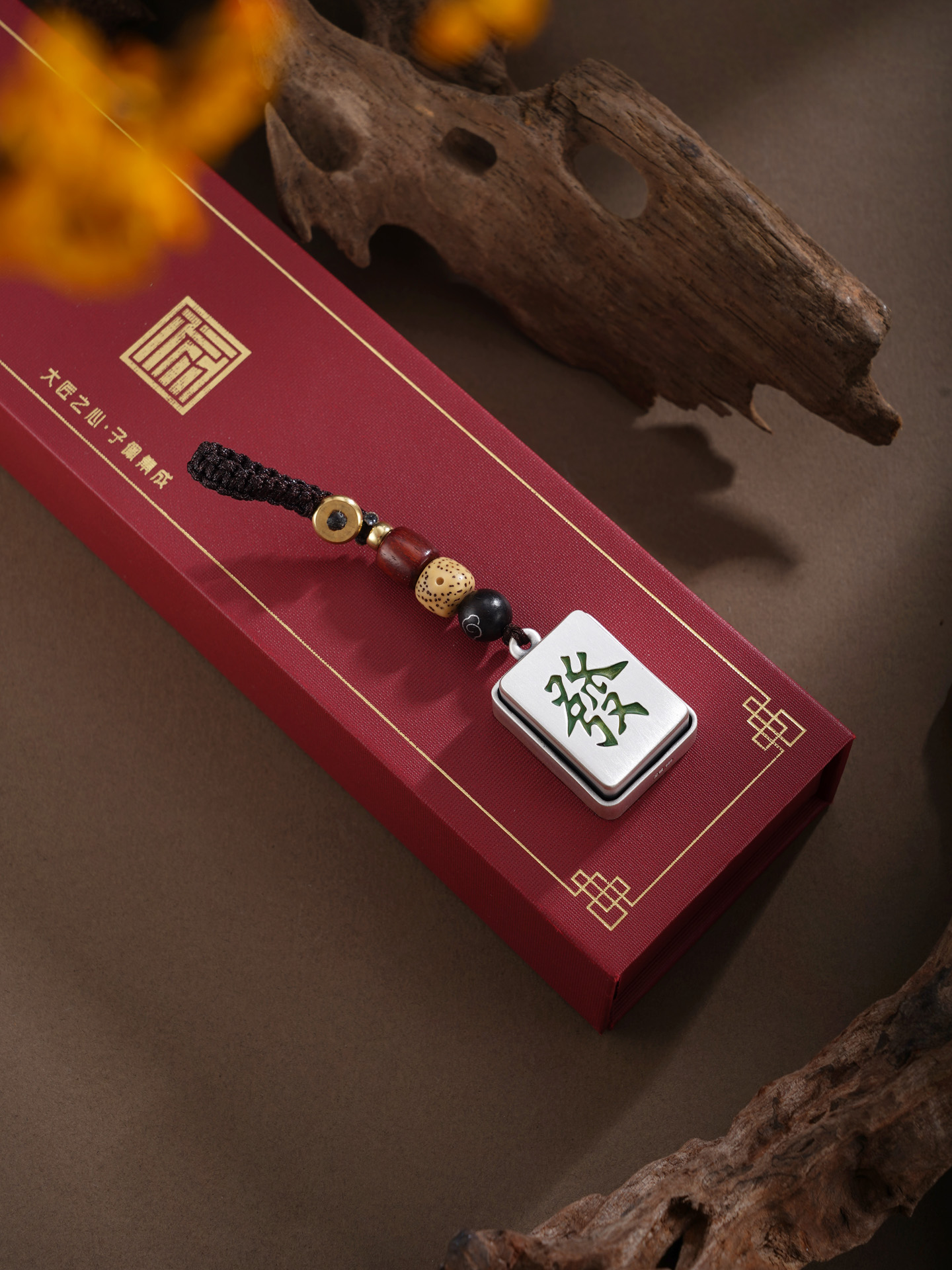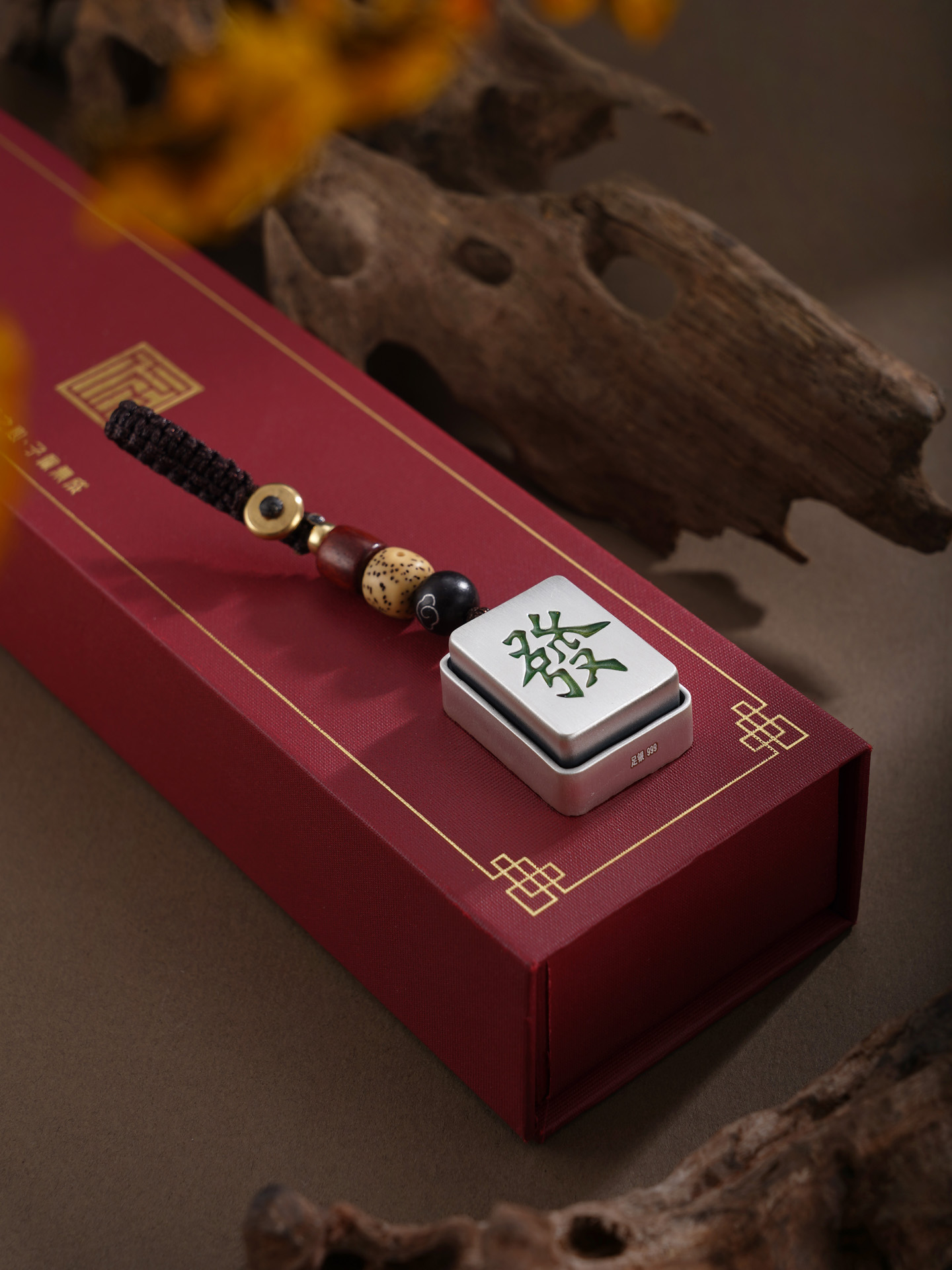 【寓意】:以传统麻将牌为形,纯银精铸,“中”者,居中得正,寓意“守中得发。“发”为财源广进,寓意稳中求胜。掌中藏福,事业通达。