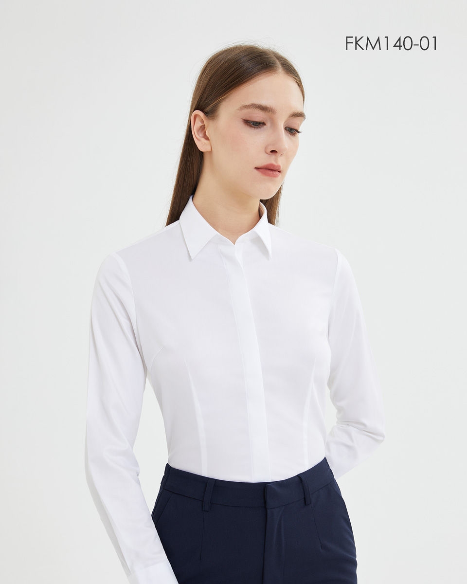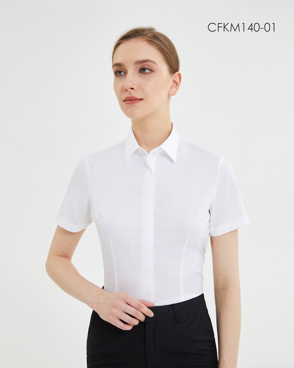 SENDI140支纱全棉成衣免烫女白色长短袖衬衫